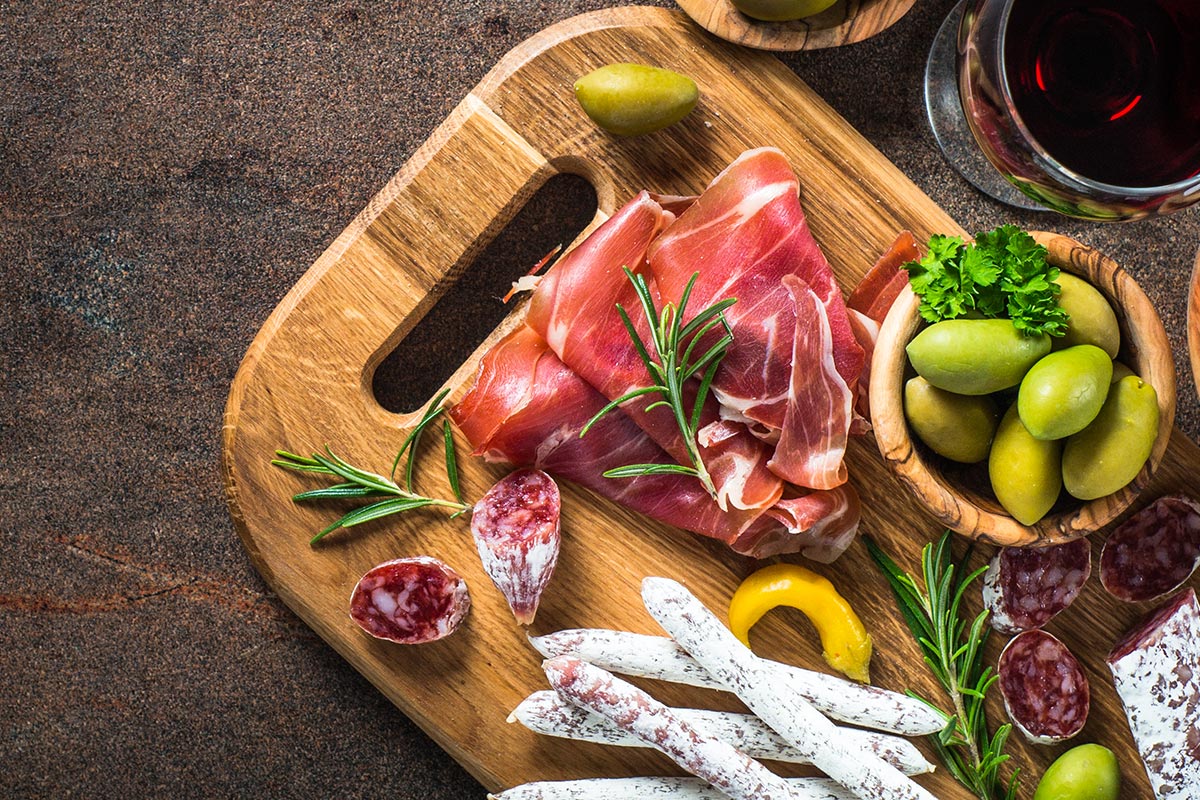 delicious sharing board, full to the brim with regional meats and local cheeses. These bountiful sharing boards are served at one of the many bars in the ambient old town and along the