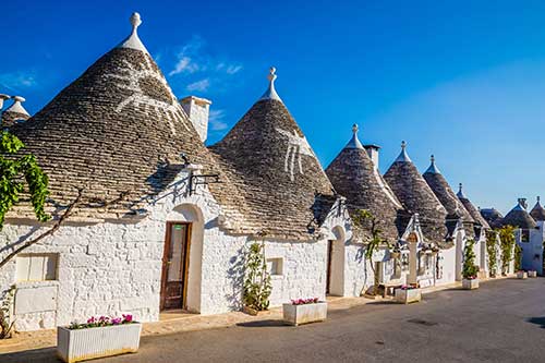 One of the unmissable stops in wonderful Puglia is the "capital" of Trulli in Alberobello. The town owes its worldwide fame to these ancient dwellings, which have been a UNESCO World Heritage Site since 1996.But what is so special about these houses? The answer lies in the past when the landowners forced the peasants who were moving to these areas to build dry dwellings, which were unsafe, though stable. In fact, the trulli are made only of stones, but their round shape and the domed roof made them very resistant, so much so, that they are still quite well-preserved.  Alberobello is a very cosy and welcoming town in Puglia — easily visited in a day, but mostly on foot. So now, let’s see together some points of interest that one should not miss while here!Rione Monti is one of the most characteristic and ancient neighbourhoods. This area is very touristy and preserves more than 1000 trulli; these are just the ones that belong to UNESCO! In addition to admiring the typical stone houses, you can also find several stores where local handicrafts or souvenirs are available. You can even check out the interior of the trulli, with their particular and unique furnishings.  The village Aia Piccola is another very fascinating area of Alberobello. Right here are about 400 trulli — some of these are real, typical hotels — where you can sleep, even just for one night, and have a unique experience. This village, where tourists from all over the world usually stay, owes its name to the act of beating wheat — an ancient activity here. Along with its narrow and characteristic alleys, it is also possible to have a panoramic view of the whole town from the nearby Belvedere di Santa Lucia. Several legends hover around the windowless Siamese trulli, characterised by a stepped structure in rock. They have a very interesting particularity: from the outside, they appear like a single house, but in reality, they are two trulli in one, in fact, they have a double dome. There is a double entrance and, internally, they are two trulli separated from each other and connected by a very old door. Alberobello has very much to offer besides its typical buildings. For those who want to know the traditional products of the area, Museo dell’Olio (Oil Museum) is dedicated to one of the raw materials par excellence of this territory! Also, a stop at a restaurant-Trullo will certainly serve as a unique experience to taste the regional cuisine!