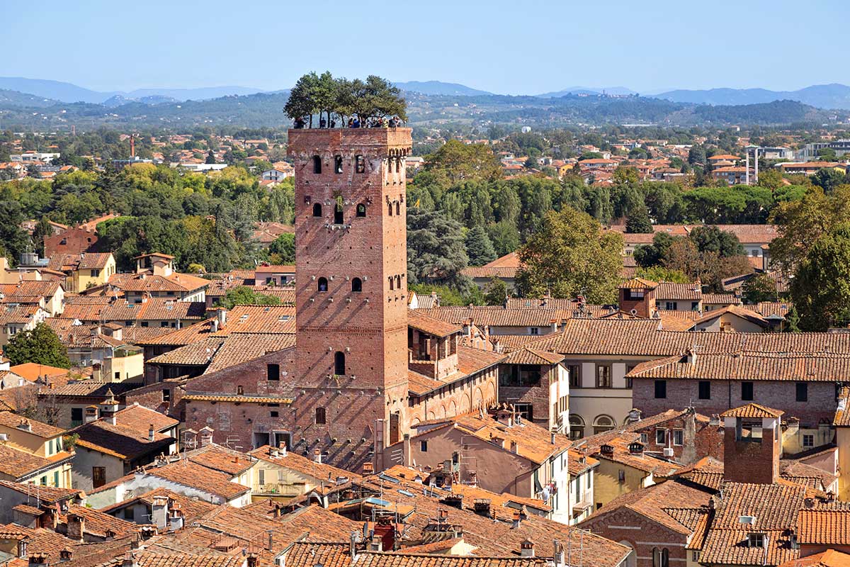 an authentic ‘gelato’ and walk the short 3-minute route from the piazza to Torre Guinigi. You won't miss this 14th century tower, thanks to its recognisable holm oak trees planted on top! It is a popular attraction in