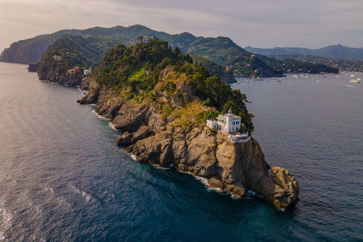 Il faro di Portofino all'estremità della scogliera del promontorio