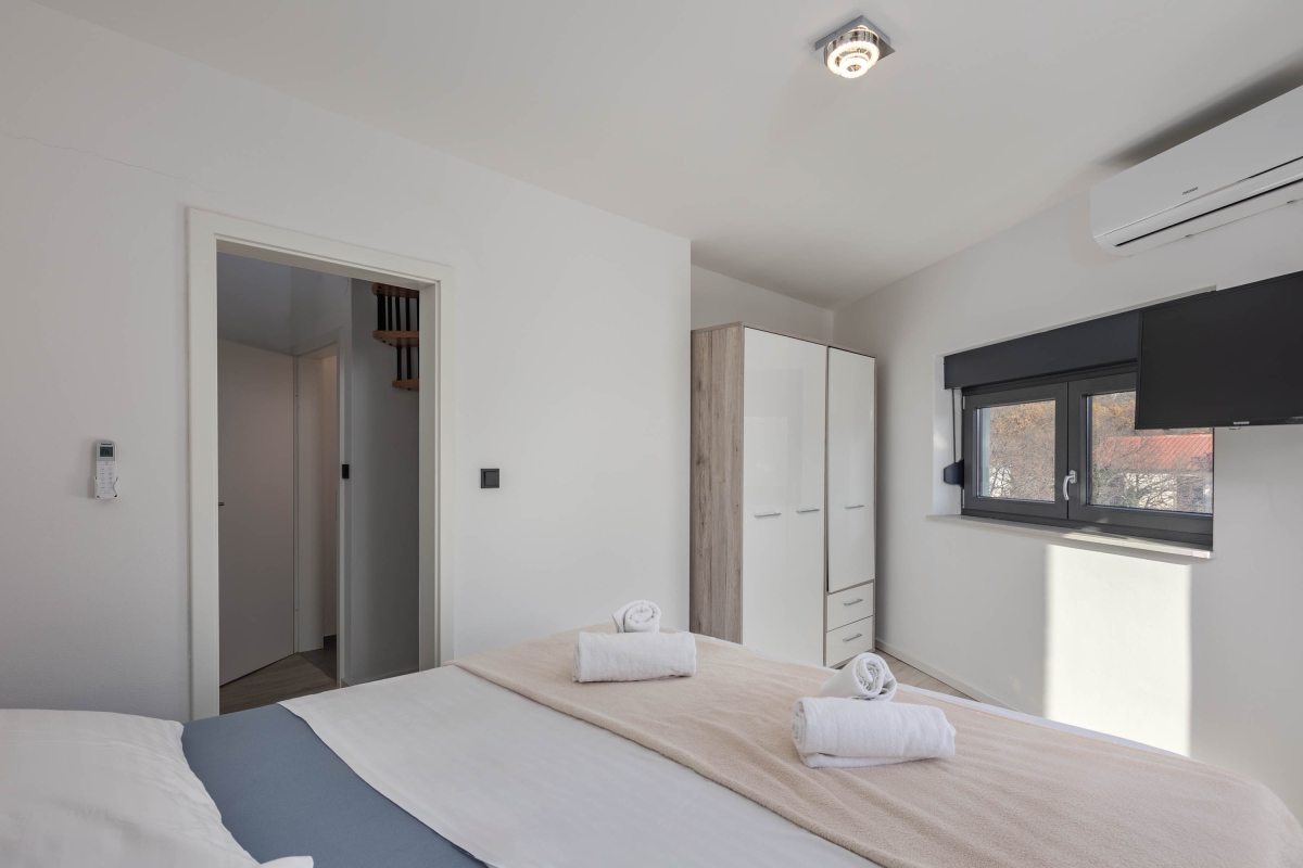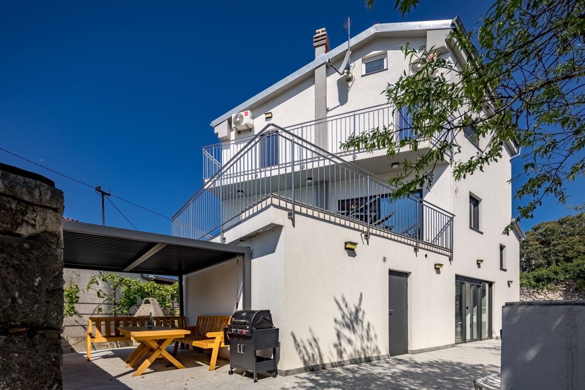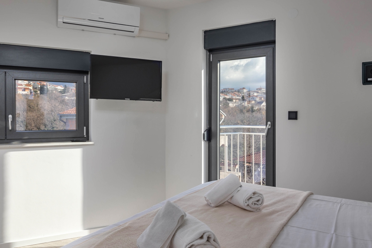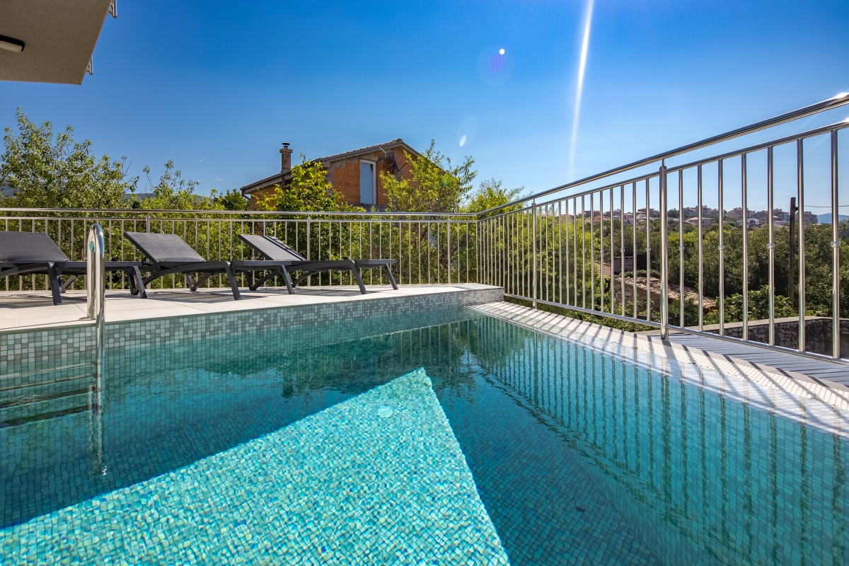 Separate Wohnung im Erdgeschoss, für unseren 21 jährigen Sohn perfekt. Klimaanlagen in allen Zimmern. Toller Pool im 1. Stock. Angenehm warm durch die Mittagssonne. Tiefe ca 1,60 m. 3 komfortable Liegen direkt am Pool 3 Badezimmer.mit Toiletten und Duschen. 1 Badezimmer mit Wanne. Sehr gut durchdacht ist der Teppich vom Pool bis zur Dusche. Sehr bequeme Boxspringbetten. Gute Ausstattung in der Küchenzeile. Ausreichend Besteck, Gläser,Teller, etc. Schöner überdachter Sitzbereich im Hof mit Gasgrill. Elektrisches Tor, 2 Parkplätze. Fernseher in allen Zimmern. Ein Bügeleisen und Bügelbrett sind vorhanden. Wunderschöner Meerblick und auf das Dorf in einem der Schlafzimmer. Das Haus ist ganz neu. Das schöne Zentrum von Novi Vinodolski ist sehr gut fußläufig zu erreichen. Hier gibt es viele Restaurants, Bars, Eisdielen, Konzum, dm, Souvenirläden, etc. Eine kleine Bimmelbahn für eine Stadtrundfahrt fährt direkt im Zentrum los Zum Stadt Strand benötigt man aber ein Auto, 1,5 km sind zu weit zu laufen wenn man die Badesachen schleppen muss. Ausreichend Parkplätze am Strand vorhanden, kosten 2 Euro pro Stunde. Wir haben uns hier sehr wohl gefühlt, und können das tolle Haus wirklich weiter empfehlen! Es wird sehr auf Müllttrennung geachtet, was wir gut finden. Ist alles genau beschrieben in der Willkommensmappe. Sehr gutes W-Lan.