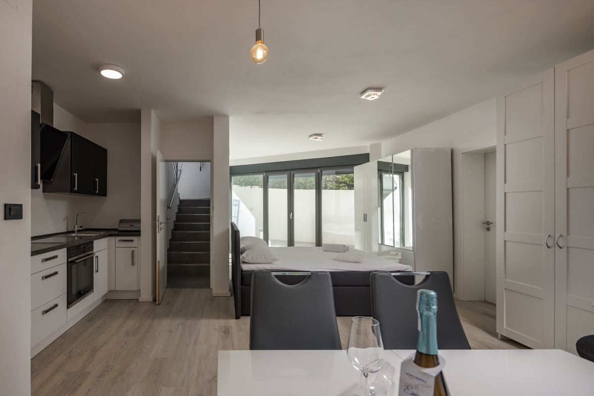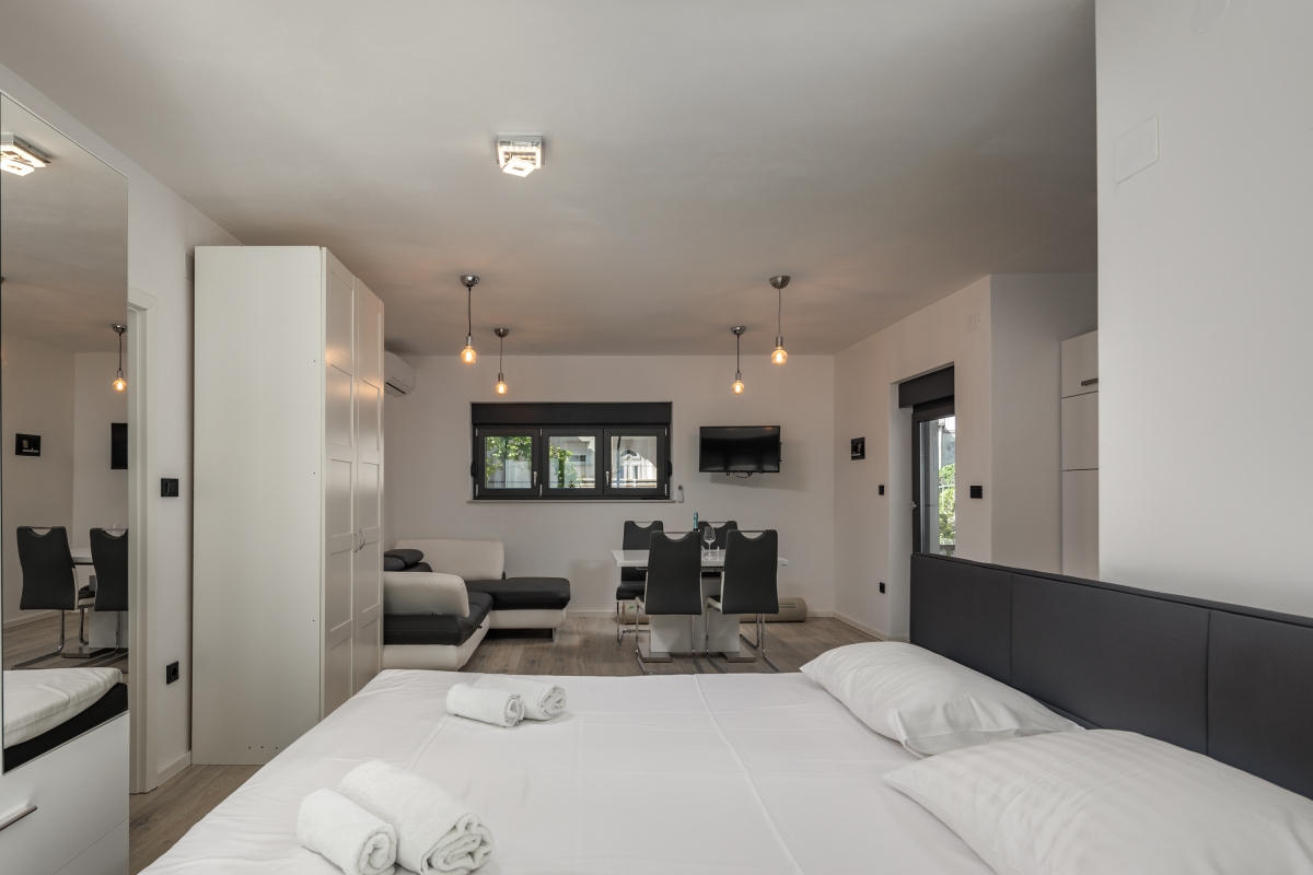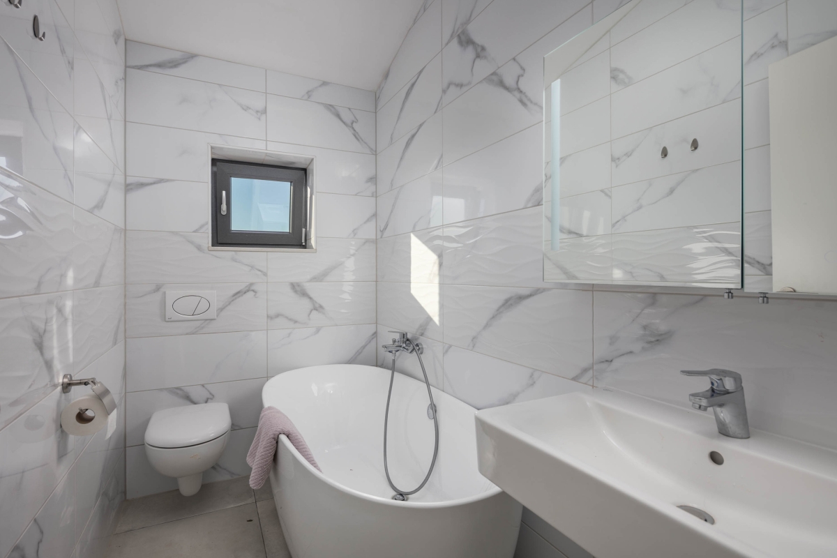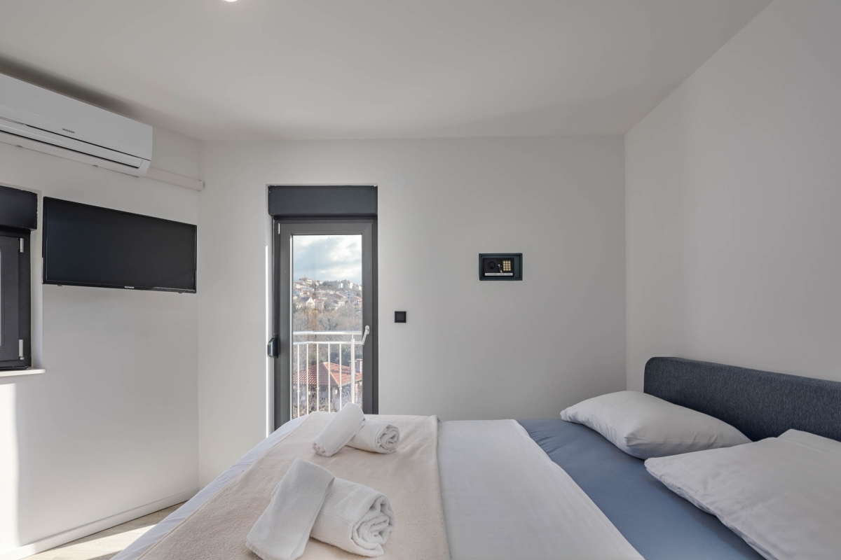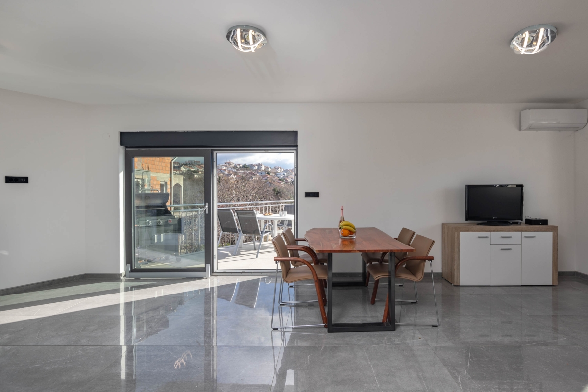 Separate Wohnung im Erdgeschoss, für unseren 21 jährigen Sohn perfekt. Klimaanlagen in allen Zimmern. Toller Pool im 1. Stock. Angenehm warm durch die Mittagssonne. Tiefe ca 1,60 m. 3 komfortable Liegen direkt am Pool 3 Badezimmer.mit Toiletten und Duschen. 1 Badezimmer mit Wanne. Sehr gut durchdacht ist der Teppich vom Pool bis zur Dusche. Sehr bequeme Boxspringbetten. Gute Ausstattung in der Küchenzeile. Ausreichend Besteck, Gläser,Teller, etc. Schöner überdachter Sitzbereich im Hof mit Gasgrill. Elektrisches Tor, 2 Parkplätze. Fernseher in allen Zimmern. Ein Bügeleisen und Bügelbrett sind vorhanden. Wunderschöner Meerblick und auf das Dorf in einem der Schlafzimmer. Das Haus ist ganz neu. Das schöne Zentrum von Novi Vinodolski ist sehr gut fußläufig zu erreichen. Hier gibt es viele Restaurants, Bars, Eisdielen, Konzum, dm, Souvenirläden, etc. Eine kleine Bimmelbahn für eine Stadtrundfahrt fährt direkt im Zentrum los Zum Stadt Strand benötigt man aber ein Auto, 1,5 km sind zu weit zu laufen wenn man die Badesachen schleppen muss. Ausreichend Parkplätze am Strand vorhanden, kosten 2 Euro pro Stunde. Wir haben uns hier sehr wohl gefühlt, und können das tolle Haus wirklich weiter empfehlen! Es wird sehr auf Müllttrennung geachtet, was wir gut finden. Ist alles genau beschrieben in der Willkommensmappe. Sehr gutes W-Lan.