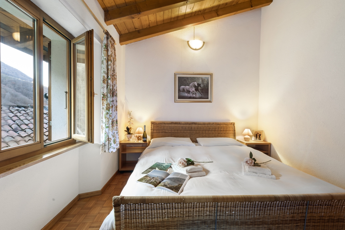 Tucked away in a charming wooded valley, this traditional alpine house makes a wonderful retreat from late March to the end of October. The house is in a small village, surrounded by nature, but just 25 minutes from the centre of Lugano. On the edge of the village, the house, which sleeps 5 people, is reached on foot. The front door opens into the airy living room with cool tiled floors and a wooden staircase leading up to the bedrooms. The room is divided into two halves. On one side the sitting area is furnished with 2 sofas, an open fireplace and a Smart TV. The kitchen/dining area is on the other side of the staircase. The kitchen is well-equipped with a cooker hob, oven, dishwasher, fridge-freezer, toaster, raclette and a Nespresso machine. There is a dining table for cosy meals. There is a private garden with lovely views over the valley. Garden chairs are available so guests can relax and enjoy the picturesque surroundings. Sleeping Bedroom 1: Upstairs, under the wooden eaves, is the delightful master bedroom with a double bed and a wardrobe. Bedroom 2: The second room has a French-sized double bed and a bunk bed, with a wardrobe and dressing table/laptop-friendly workspace. Bathroom The modern bathroom has a shower, basin and WC Additional • Free portable Wifi device • Smart TV • Fireplace • Underfloor heating • Private garden • Balcony • Hair dryer • Medium pets allowed, must be arranged in advance • Public parking, a car is recommended. Location This peaceful village cottage is reached on foot as the streets are too narrow for cars. It is the perfect combination of a quiet location that is within easy reach of the excitement of the city. The area is well-known for its artisanal foods. A hike through the beautiful alpine meadows and forests is often rewarded with spectacular views across the mountains or a farm selling homemade salami or cheese. Local restaurants take pleasure in serving regional dishes such as polenta and seasonal game. For more urban thrills, the house is just 25 minutes from central Lugano and all its attractions. There is so much to see including MASI, The Museum of Art of Italian Switzerland. There are many delicious restaurants and cafés where you can enjoy the best of Italian and Swiss cuisines. The closest international airport is in Italy - Milan Malpensa 1 hour 20 minutes by car.