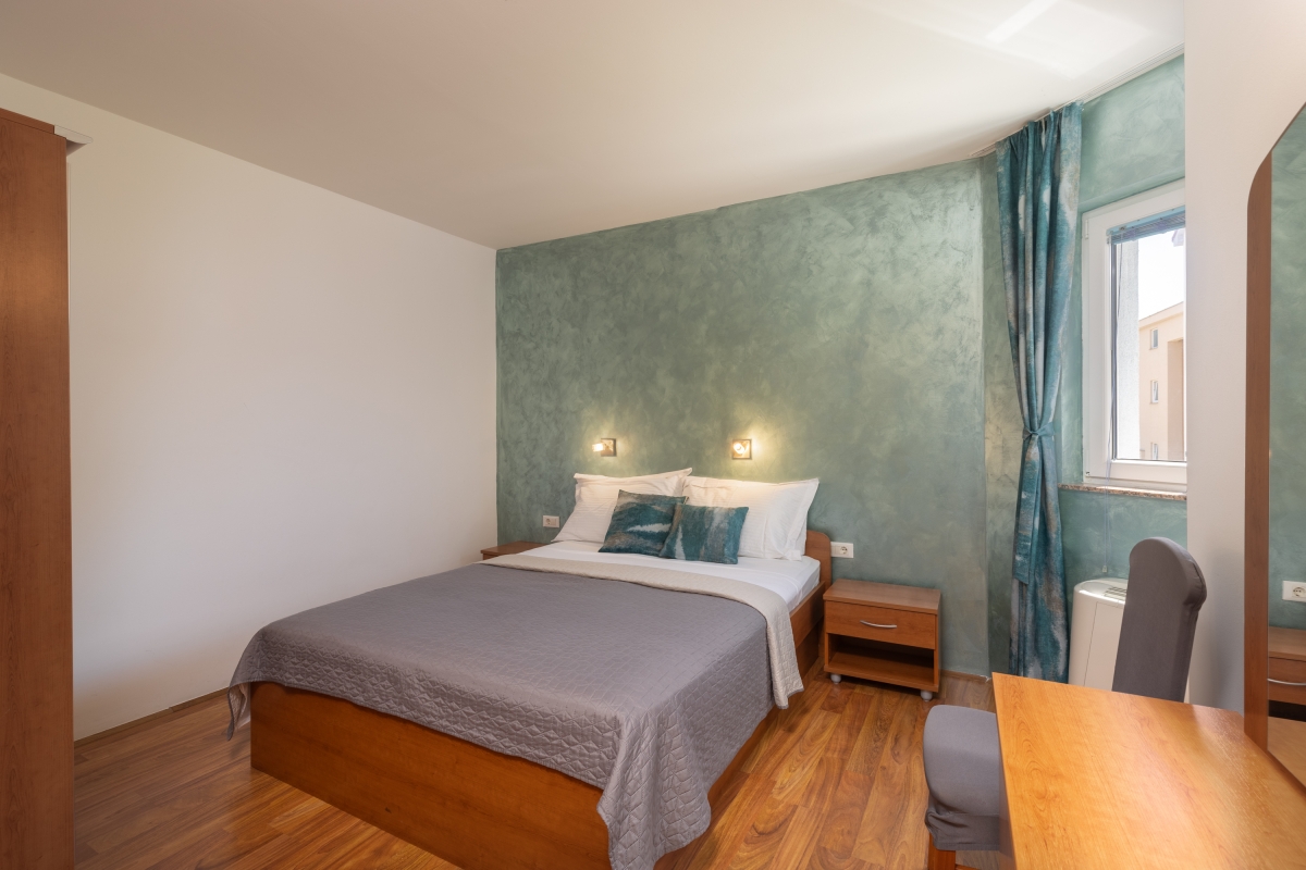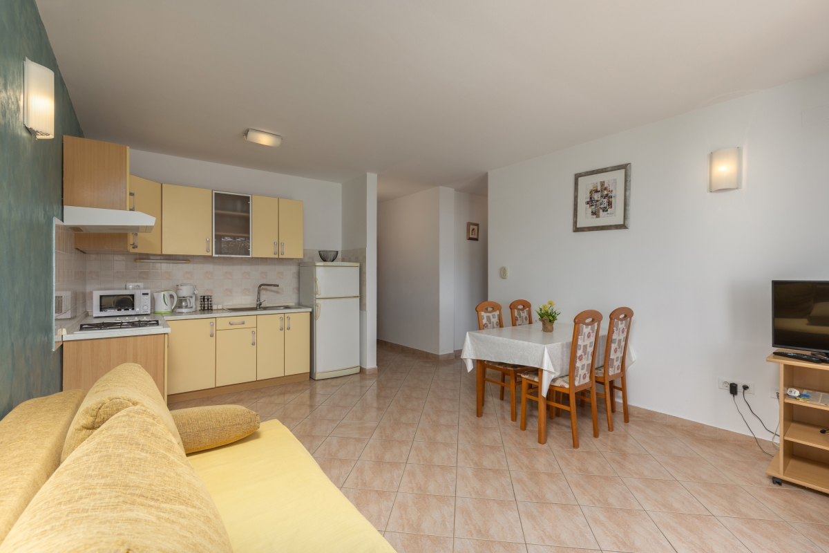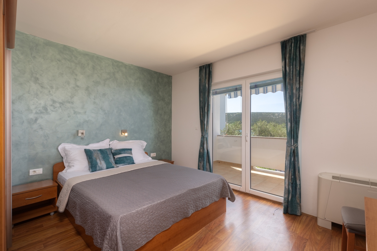 On the first floor of a contemporary beachfront residence, this apartment makes a wonderful base for an exciting holiday on the island of Pag. In a quiet, family-friendly resort, the apartment sleeps 6 people so suits a family or friends looking for relaxation right by the water. The main living area, which has large glass doors out onto the balcony, is furnished with a sofa, flat-screen TV, a dining table and chairs and an open-plan kitchen. The kitchen is equipped with a cooker hob, microwave, fridge, freezer, kettle and american style coffee machine. The private balcony looks out over the swimming pool to the sea just beyond. There is a table and chairs which makes the ideal spot for the perfect sundowner or meals al fresco. The resort has much to offer its guests. In addition to the swimming pool (unheated) and sun loungers, which are exclusively for residents’ use, there is also a waterside restaurant on site. Free mooring for boats is also available on the adjacent quayside. Sleeping Bedroom 1: The master bedroom has a stunning sea view, with sliding glass doors leading directly onto the balcony. The room has a king-sized double bed and a wardrobe. Bedroom 2: An airy bedroom furnished with a king-sized double bed, single bed, chest of drawers and a large wardrobe. Extra: The sofa in the living room converts into a comfortable double bed. Bathrooms Bathroom 1: En suite to the master bedroom, this bathroom has a shower, basin and WC Bathroom 2: This independent bathroom is equipped with a shower, basin and WC. Additional • Free Wifi • Balcony • Outside table & chairs • Shared outdoor pool (unheated) • Shared garden • Boat mooring • Air conditioning • Hair dryer • Security safe • Child friendly • Pets allowed (1 per booking) • Private parking - car recommended Extra charges and information Check-out time: 9:00 AM. Pet Charges: €35 to €49 per pet, per stay. Location The resort is located right on the shores of a beautiful bay, with panoramic views. It is in a quiet spot but not far from many of the activities Pag has to offer. If you can tear yourself away from the pristine beaches and crystal clear sea, there are hiking and cycling routes around the island, as well as climbing. Back by the water, visitors can go scuba diving, snorkeling and kayaking around remote coves. The fishing village of Stara (Old) Novalja (5 minutes) has roots going back 1000’s of years thanks to its sheltered location and temperate climate. There are some interesting archaeological sites as well as a variety of excellent restaurants and cafés. The larger town of Novalja (5 minutes) has an enchanting historic centre, which makes a great spot for an evening stroll before enjoying an aperitif at one of the town’s lovely seafront cafés. The town has farmers and fish markets where you can pick up the best local produce and freshest catch of the day. Zadar International Airport is 1 hour 30 minutes away.