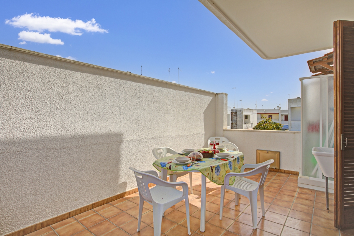 A first-floor, contemporary apartment, set on a quiet street, in the scenic port of San Foca on the Adriatic coast. This apartment sleeps 6 people and is ideal for friends or a family looking for a relaxed beach holiday in beautiful surroundings. The apartment has an extensive wraparound balcony which brings the outside indoors, thanks to several sets of French windows. The balcony has a table and chairs for meals al fresco, as well as a shower, which is particularly useful after a day on the beach. Inside, the open-plan living area, has a dining table, TV and a large stone fireplace. The kitchen is linked to the living room via an attractive bricked archway. It is equipped with a cooker hob, oven,fridge/freezer and coffee machine. A door from the kitchen leads out to the dining area on the terrace. Sleeping Bedroom 1: The airy master bedroom has a contemporary double bed and a wardrobe. Bedroom 2: This second room has two single beds (which can be joined) Bedroom 3: This bedroom also has 2 single beds, a wardrobe and doors that open directly onto the balcony. Bathroom The modern bathroom is equipped with a bathtub, basin, bidet and WC. Additional • Free portable Wifi • Balcony • Outside dining • Air conditioning (in the master bedroom) • Digital TV • Washing machine • Hair dryer • Waste disposal • Public parking- car recommended Child-friendly• Check-in from 3pm and Check-out by 10am. Location The popular port of San Foca has been inhabited for millennia. It has some lovely beaches including Li Marangi, which is just 500m from the apartment. The town centre offers a taste of “La dolce vita” with a range of restaurants, cafés and ice cream parlours. It is a great spot for people-watching during an evening stroll. There is always plenty to see in the busy harbour. The city of Lecce (30 minutes) is famous for its wonderful Baroque architecture as well as its Roman ruins. It is a jewel of a city and well worth a visit. Not only for its long history but also for its excellent food and good shopping. Golfers will enjoy the two courses near the town of Acaya (15 minutes) or for more exercise and a hike through unspoiled Mediterranean countryside, there is the WWF nature reserve of Le Cesine (15 minutes). For a wide range of local produce, San Foca’s weekly market (Tuesday mornings in the summer) is a treasure trove of clothes, shoes and household goods as well as the finest regional produce including vegetables and fruit, olive oil and cheese. The closest airport is at Brindisi - just over an hour away by car.
