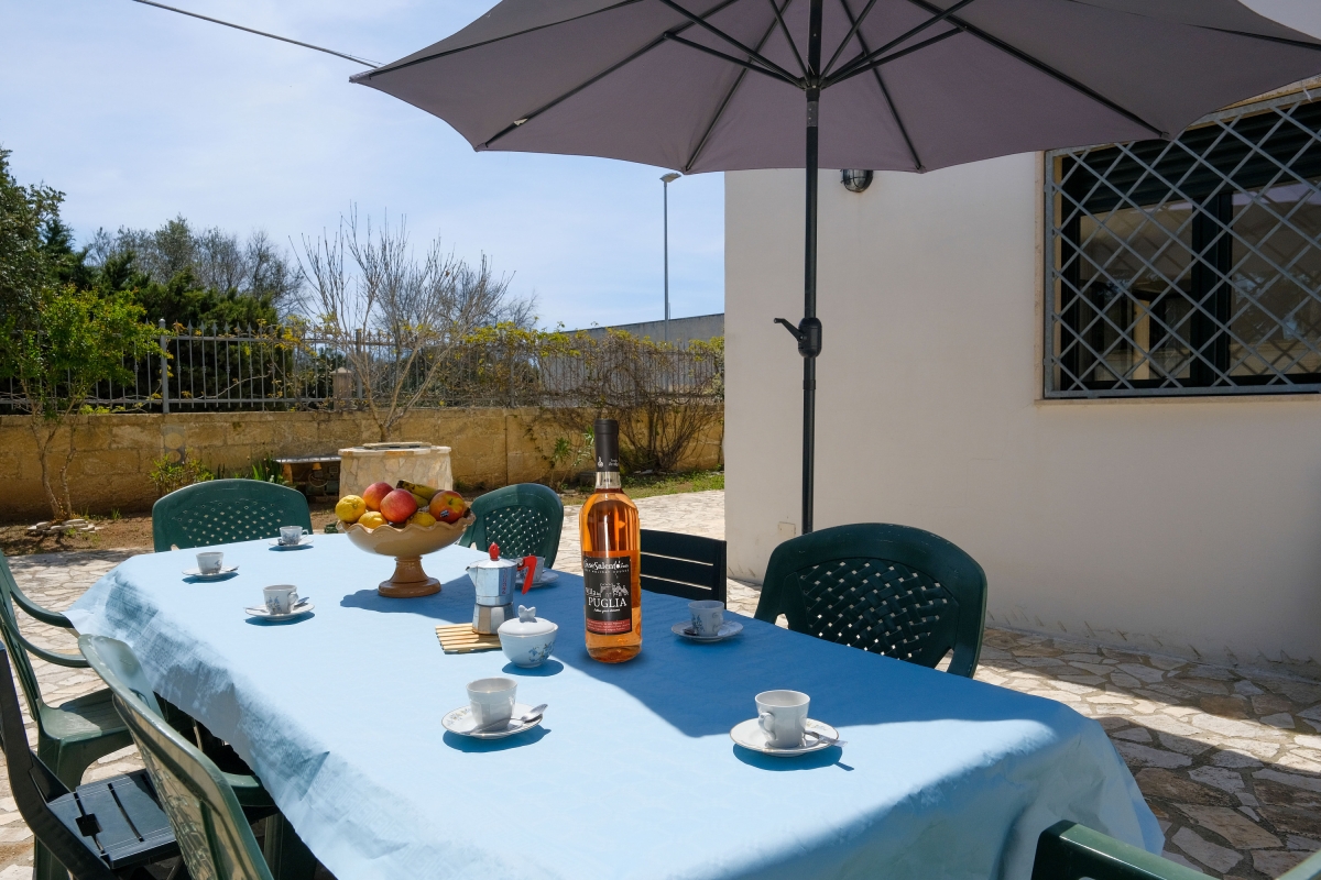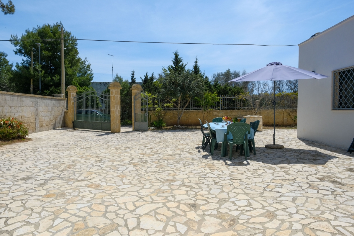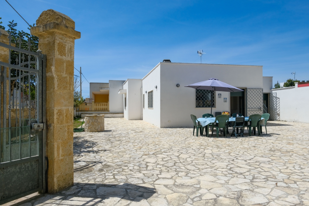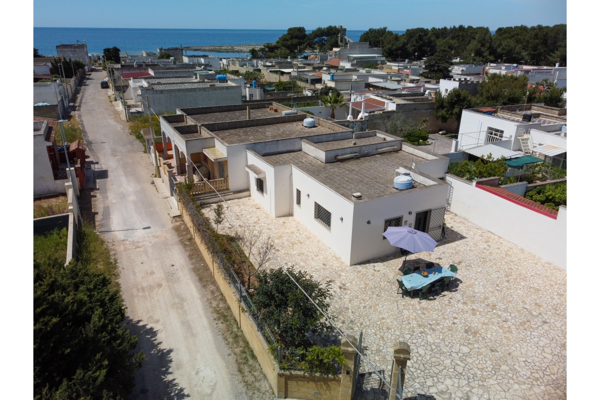 Holiday rental villa very close to the sea, both to the sandy beach of Scianuli and to the rocky coast of lido Torre Squillace. The house has a large outdoor space with various flowerbeds, entirely fenced with high walls, therefore convenient for children and/or pets. In the courtyard the staircase leads to the terrace overlooking the sea, an outdoor shower, a sink and a table with chairs and umbrella. The entrance leads into the very spacious and air-conditioned living room (table, chairs, cabinet with TV, double sofa bed). From the living room you can access the perfectly equipped kitchenette or the sleeping area, consisting of 3 bedrooms (large double bedroom, second double bedroom and a twin bedroom) and a beautiful bathroom with shower cubicle, WC and bidet. Suitable for a maximum of 8 people, it is equipped with new furniture and is located just 250m from the sea, excellent for your holiday stay. Amenities: Washing machine Television Portable WiFi Air conditioning in the living room Fans on request for other rooms Mobile barbecue Outdoor shower with shower next to it Property entirely fenced Pets Allowed Mokka coffee machine Free public parking NEARBY The brand new villa is just 250m from the rocky coast, in the stretch where there is a comfortable equipped beach. The sandy beach is about 250m away, an inlet called "Li Scianuli" next to the Saracen watchtower. The area is truly enchanting, in fact you will have the lively Porto Cesareo to the north where you can walk along the large seafront or visit the numerous bars and restaurants, and the Bay of Sant'Isidoro to the south, where you can taste excellent seafood. You will also be close to Torre Lapillo, Punta Prosciutto, Torre Colimena, Porto Selvaggio, Santa Caterina, Santa Maria al Bagno and Gallipoli, a myriad of beautiful places. The inland also deserves to be experienced, Leverano with its delicious local specialities, Copertino and its large castle, and Nardò and its extensive historic center.