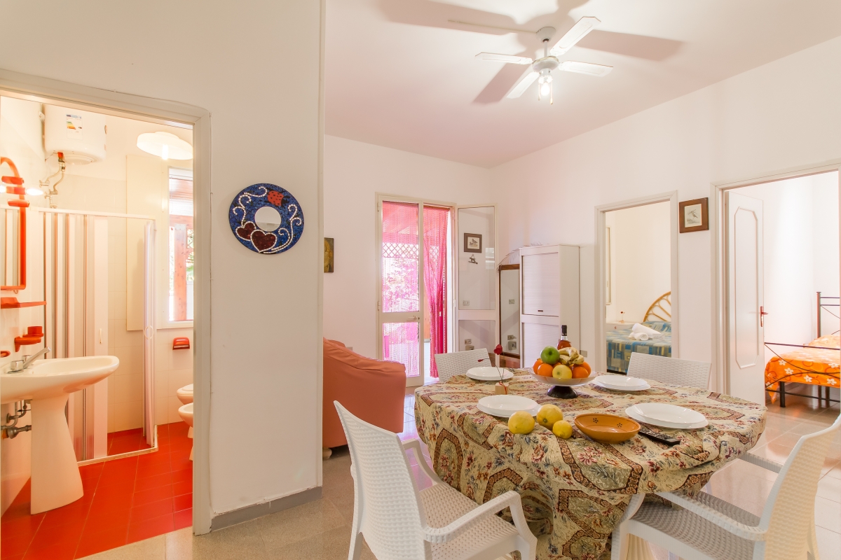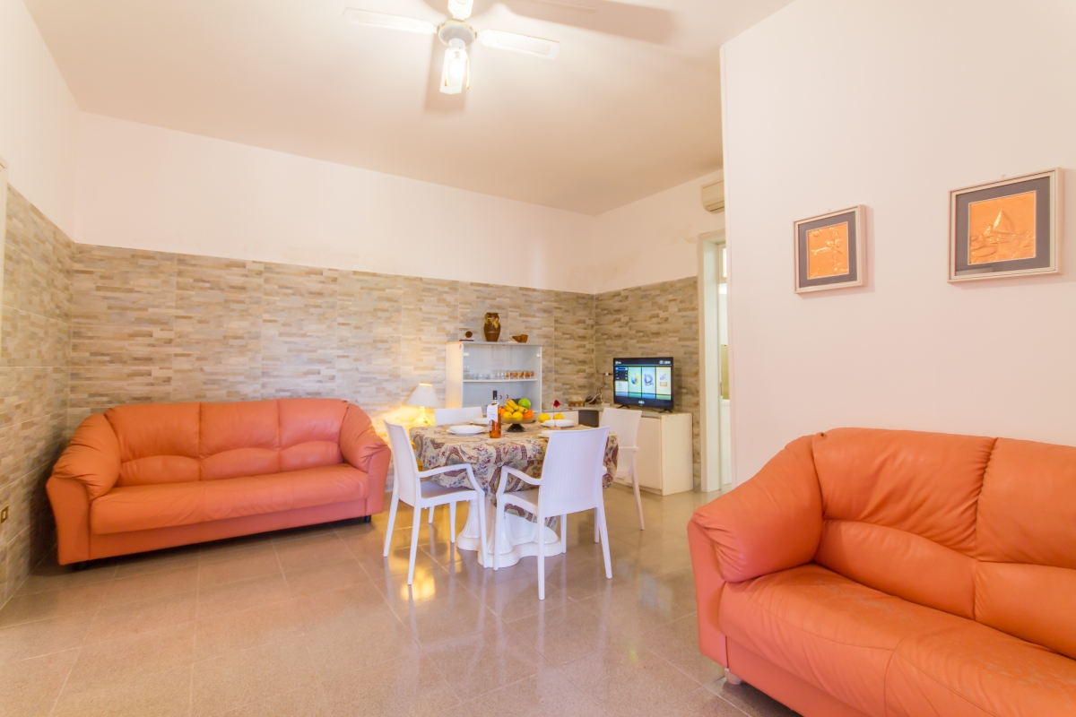 This charming garden apartment for 5 is ideal for a relaxing beach holiday in the popular resort of Torre dell’Orso. Set in a private garden, with a large veranda, the apartment encourages living al fresco, so that guests can enjoy the relaxed environment. On the terrace, there is a seating area, as well as a dining table and chairs and even an adjacent, outdoor kitchen with a cooker hob and oven, sink and a smaller table with chairs. Inside, the spacious living area is furnished with 2 sofas, a large flat-screen TV and another dining table and chairs. Double glass doors lead out onto the veranda. The separate kitchenette is equipped with a cooker hob, oven, fridge/freezer and a coffee machine. Sleeping Bedroom 1: The light-filled master bedroom has a contemporary double bed and a wardrobe Bedroom 2: The second bedroom has 2 single beds which can be joined and a wardrobe. Extra: The sofa in the living room converts into a single bed. Bathrooms Bathroom 1: The stylish, modern bathroom is equipped with a shower, basin, bidet and WC. Bathroom 2: This outdoor bathroom has a shower, sink and WC and is useful after a day at the beach. Additional • Free portable Wifi • Private fenced garden • Outside dining • BBQ • Outside seating • Air conditioning in the living room • Ceiling fans in both bedrooms • Children’s cot €20 and high chair €20 on request, depending on availability • Flat-screen Digital TV • Hairdryer • Washing machine • Smoke & CO detectors • Fire extinguisher • Waste disposal • Private parking & free public parking - car recommended • Pets allowed • Check-in from 4pm and Check-out by 10am. Location The town of Torre dell’Orso is blessed with fine sandy beaches and crystal-clear sea. There are several beach clubs, which suit different ages and interests. The town is a laid-back resort with a few clubs and many excellent restaurants catering to all budgets and tastes. There are shops and supermarkets within walking distance from the villa, and the town centre is also accessible on foot. The house is 2 minutes from the Giardini del Sole sports complex which offers many different sports including mini-golf, tennis, volleyball and five-a-side football. The city of Lecce (25 minutes) is famous for its wonderful Baroque architecture as well as its Roman ruins. It is a jewel of a city and well worth a visit, not only for its long history but also for its excellent food and good shopping. For a wide range of local produce, the twice-weekly market in Lecce is a treasure trove of the finest regional produce from fish, vegetables and fruit to olive oil and cheese. The closest airport is at Brindisi - just over an hour away by car.