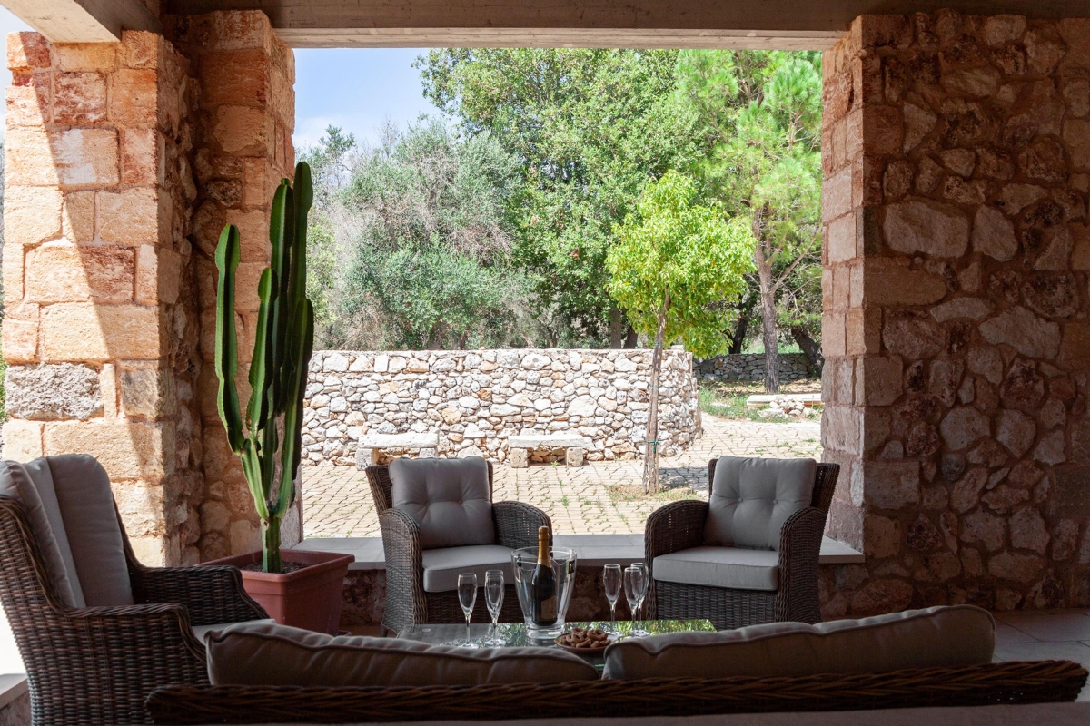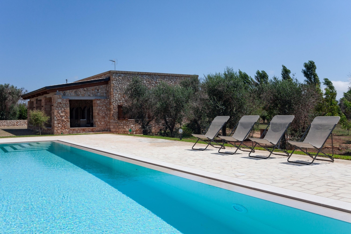 Set in secluded private gardens, just a few minutes drive from the beautiful Adriatic coast, this attractive villa makes a wonderful holiday base for family or friends. The contemporary villa sleeps 8 people and has its own private pool. It is a little piece of heaven in the heel of Italy. The stone-clad villa has a deep veranda where guests can relax, thanks to cane armchairs and a sofa. There is also an outside dining table for delicious meals al fresco. The interiors are equally stunning, with stone vaulted ceilings and a combination of contemporary features with antique furniture. The large hallway, which has a sofa, is the heart of the house, with the other rooms leading off it. The sitting/dining room has a stone fireplace, sofa and dining table. The spacious kitchen, with colourful majolica tiling, is well-equipped with a cooker hob, oven, dishwasher, fridge/freezer and coffee machine. The outdoor space has been created with as much care and attention as the interiors. On the terrace around the swimming pool, there are sun loungers, deckchairs and umbrellas so guests can relax after a refreshing swim. The garden includes extensive lawns and olive trees. Sleeping Bedroom 1: The master bedroom has an attractive wrought-iron double bed, a wardrobe and an en suite bathroom. Bedroom 2: The second bedroom has a double bed and a wardrobe. Extra: The sofas in the living room and hallway both convert into double beds. Bathroom Bathroom 1: The spacious bathroom is equipped with a shower, bidet, basin and WC. Bathroom 2: This en suite bathroom has a shower, bidet, basin, washing machine and WC. Additional • Free portable Wifi • Private outdoor swimming pool (unheated) • Private garden • Outdoor dining • BBQ • Air conditioning • Fireplace • Flat-screen TV • Hairdryer • Washing machine • Waste disposal • Private parking & free public parking - car essential • Pets allowed • Check-in from 3pm and Check-out by 10am. - On main road Location The villa is just 5 minutes from the famous coastal spa resort of Santa Cesarea Terme, with its thermal baths and fascinating caves. There are also some lovely beaches nearby including Porto Miggiano Beach and Archi Marine. The charming town of Castro has an ancient historic centre and stunning granite coastline which you can explore by boat. Further north, on the Otranto coast, there are fine sandy beaches, just 10 to 15 minutes drive from the villa. Not to be missed is the city of Lecce (35 minutes drive), known as the “Florence of the South” and blessed with wonderful Baroque architecture as well as Roman ruins. It is a jewel of a city and well worth a visit. Not only for its long history but also for its excellent food and good shopping. For a wide range of local produce, the twice-weekly market in Lecce is a treasure trove of the finest regional produce from fish, vegetables and fruit to olive oil and cheese. The closest airport is at Brindisi - just over an hour away by car.