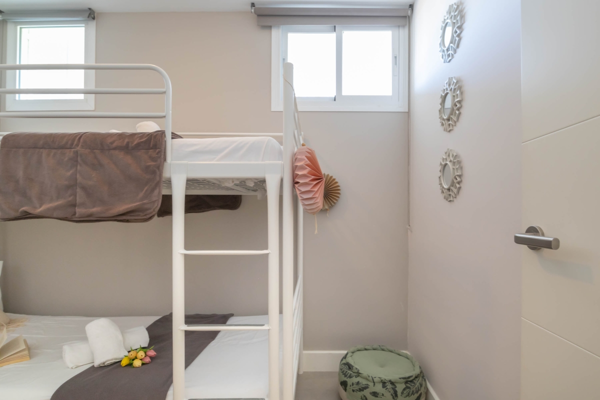 This pool paradise with stunning views is the perfect getaway for couples and families in Marbella! Conveniently located, with the beach and the hottest party scenes in Marbella just a few minutes away, this eleventh-floor apartment easily accommodates up to 6 guests. Two key-operated lifts are available for easy accessibility, making it suitable for guests of all ages. The apartment is located in a large, sun-soaked complex, with a wonderful communal pool with sun loungers, a restaurant at the pool area and delightful gardens. The 3-bedroom apartment also has two private sea view terraces to enjoy open-air dining. Meanwhile, inside, the air-conditioned apartment offers a splendid living room alongside a library, Smart TV, a dining and an open kitchen. For a carefree self-catering holiday, the kitchen is equipped with dishwasher, toaster, oven, fridge with freezer, and cutlery, plates and glasses. The holiday apartment is also an excellent choice for a work and beach vacation with amenities like Free Wi-Fi and a laptop-friendly workplace. Sleeping Bedroom 1: An en-suite, sea-view bedroom with a double bed and wardrobe. Bedroom 2: A double sea-view bedroom with 2 single beds and a wardrobe. Bedroom 3: A double bedroom with bunk beds. Bathroom Bathroom 1: A modern, en-suite bathroom with a shower and WC, open from Bedroom 1. Bathroom 2: A common bathroom with a shower and WC. Additional • Free Wi-Fi • Lift Access • Shared outdoor pool (unheated) • Public Parking (Car recommended) • Laundry and Ironing Facilities • Open-air dining • Wheelchair Access • Bathroom Towels Please note that the pool is open from the 15th of April to the 31st of October. The property is also available for monthly rentals at special prices. Location The holiday rental is in an optimum location from where you can enjoy some of the best beaches, clubs and hikes around Marbella. Playa de Las Cañas is just an 8-minute walk away, where guests can dine in various restaurants and enjoy a sandy beach with the clear waters of the sea. The famous Nikki Beach Club and several world-class golf clubs are less than a 10-minute drive away. The area is also well-serviced with several multi-cuisine restaurants, beachside bars and international supermarkets located in a 10-15 minute walking radius. The La Cañada Shopping Center is about 15 15-minute drive; also nearby is the Amazonia Aventura water park, located a 5-minute drive from here. In a 20-minute drive, guests can reach Marbella’s centre and explore iconic venues like Plaza de la Constitución, Plaza de Los Naranjos, Parque Alameda with lush Mediterranean foliage and fountains, the sculptures of Dalí and more! Moreover, water sports like surfing and kayaking are also possible as the sea is just a few steps away. The nearest international airport is Málaga-Costa del Sol Airport, approximately a 35-minute drive, while the nearest bus stop, Camping Marbella Playa, is a 5-minute walk from here.