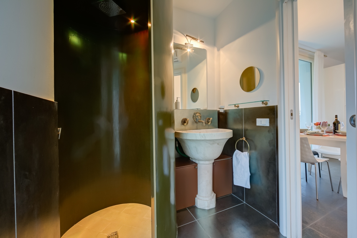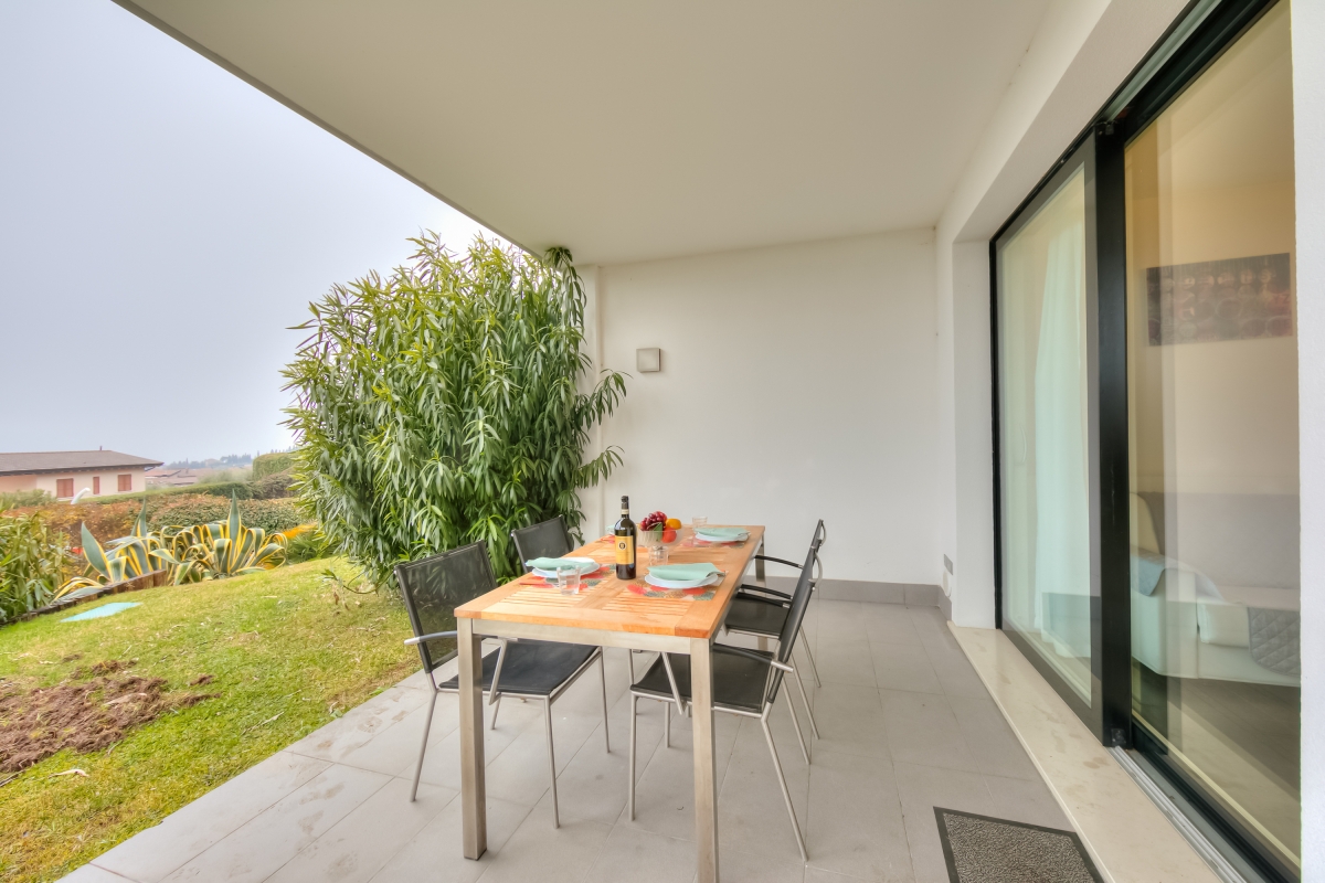 Die Wohnung ist sehr modern gestaltet. Eine kleine Küchenecke ist dabei.Auch ein Geschirrspüler ist dabei,welcher nicht angegeben war in der Beschreibung. Das Bad ist sehr kreativ gestaltet. Aus dem Erdgeschoss sieht man ein bisschen den Gardasee. Die Terrasse ist sehr schön und groß. Der Garten mit Pool ist sehr schön gestaltet und lädt zum Verweilen ein.Das die Pooldusche bei uns nicht da war,hat uns nicht gestört.