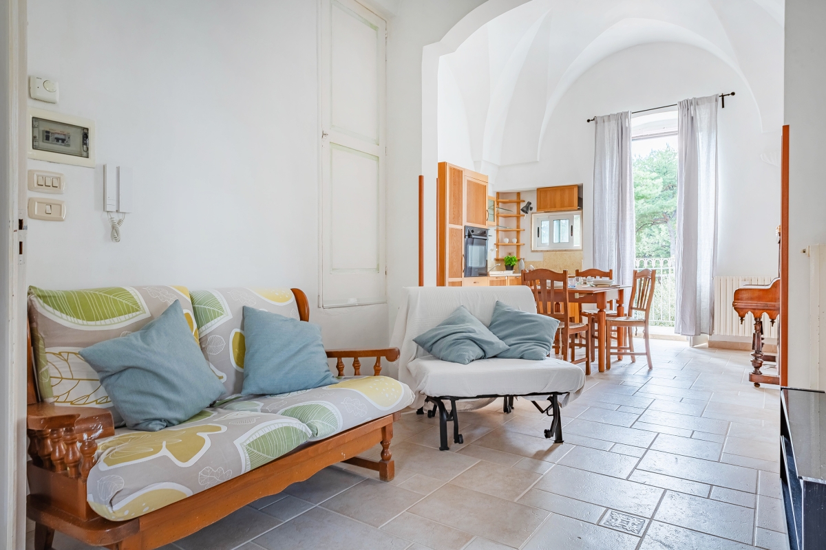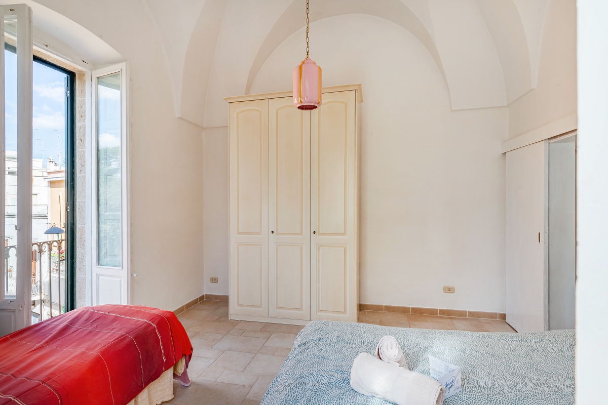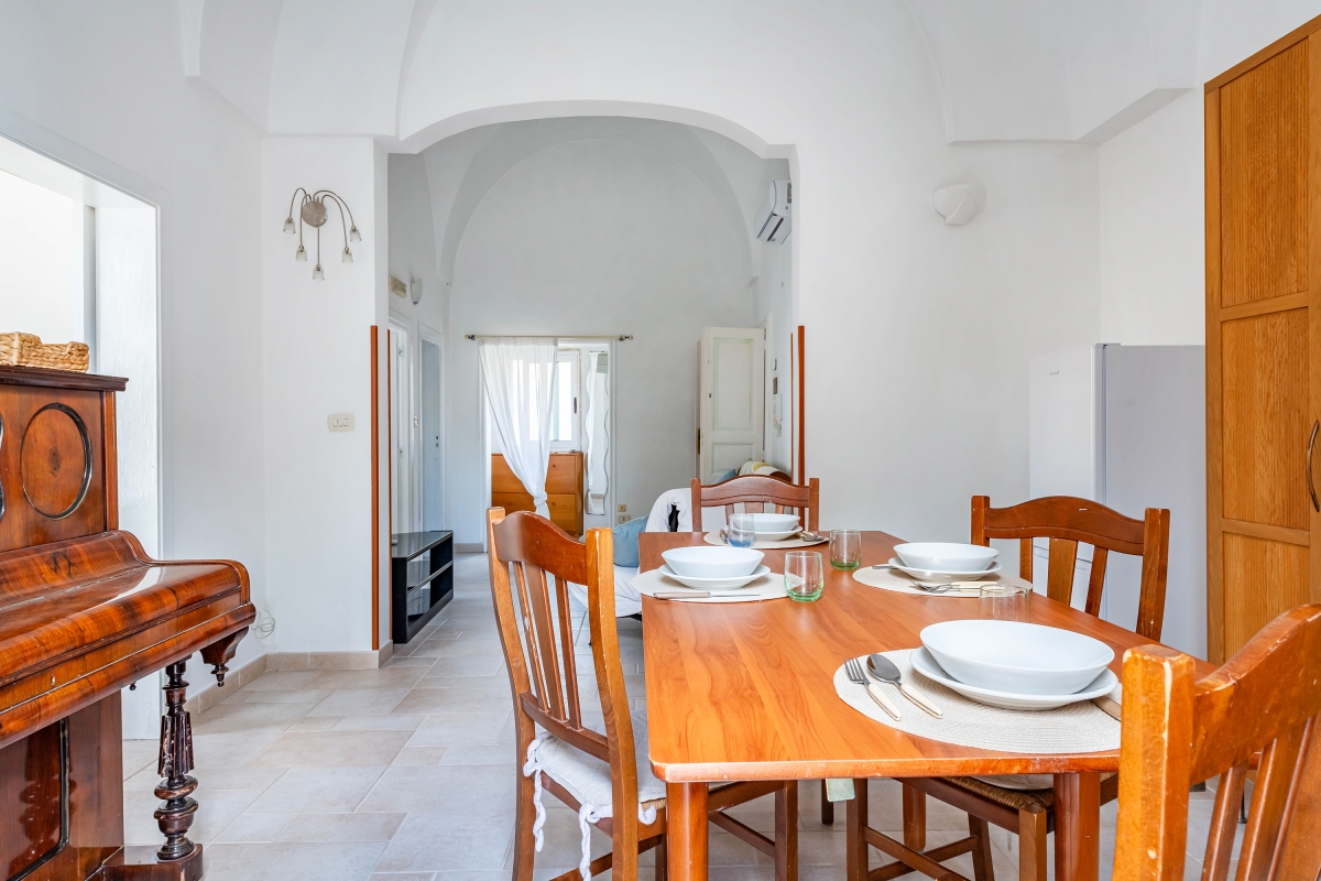 Discover Fasano’s charm at this balcony apartment located in the central square of the town. This typical Apulian apartment features 2 bedrooms and can accommodate up to 5 guests. As you enter, a staircase will lead you to the main living area. Step inside and discover a unique living room with an attached kitchen. This apartment has the characteristic Apulian star vaults and impressive high ceilings, offering a true taste of regional architecture. The living area seamlessly transitions into a well-equipped kitchen. This open-plan space features a two-seater sofa perfect for relaxing in front of the smart TV. The kitchen is equipped with an oven, induction hob, and fridge. Adding a touch of artistic flair, you’ll find a piano on the wall opposite the kitchen area. A balcony overlooking the park completes this area. The two bedrooms are conveniently located off the living and dining areas, each offering a comfortable sleeping space and private balconies. The bathroom located next to the bedrooms features a bathtub, washing machine, and WC. Sleeping Bedroom 1: The bedroom features a double bed, a single bed and a wardrobe. Bedroom 2: The bedroom features a double bed. Bathroom The bathroom is equipped with a bathtub, shower, WC, bidet and washing machine. Additional • Free Wi-Fi • Smart TV • Air conditioning • Washing Machine • Oven • Fridge • Pet allowed on request • Child friendly • Amidst greenery • Car not necessary. - Coffee machine - Paid public parking - Free public parking Self check-in: 16:00 onwards. Self check-out: by 10:00 am. Location This apartment is located in the central square of Fasano, famous for its lush green forests and seaside charm. The location of this apartment makes it a leisure stay with essential stores like grocery stores and restaurants at walking distance. Explore the "U'bracchie" (meaning "the shady one"), Fasano's historic centre with narrow streets and ancient buildings, located a 20-minute drive from the accommodation. Alternatively, unwind on the sandy shores of Torre Canne Beach, a relaxing 14-minute drive away. Grotte di Castellana caves, formed by water erosion over millions of years, offer a captivating glimpse into the geological wonders. These caves are located at a 27-minute drive from the apartment. Guests can also visit the Zoosafari which offers a drive-through safari in the animal park with a sea lion aquarium, plus roller coasters & water rides. The nearest airport is 39 minutes away from the apartment.