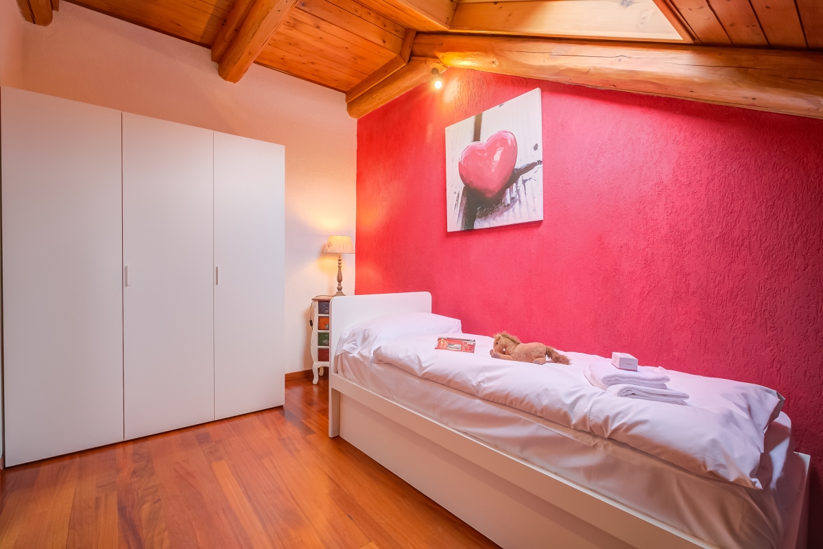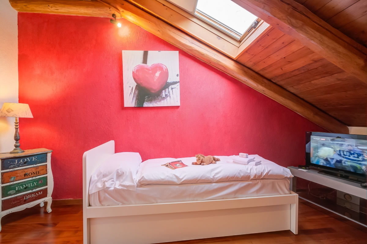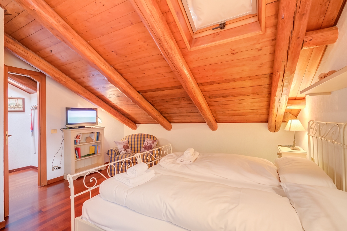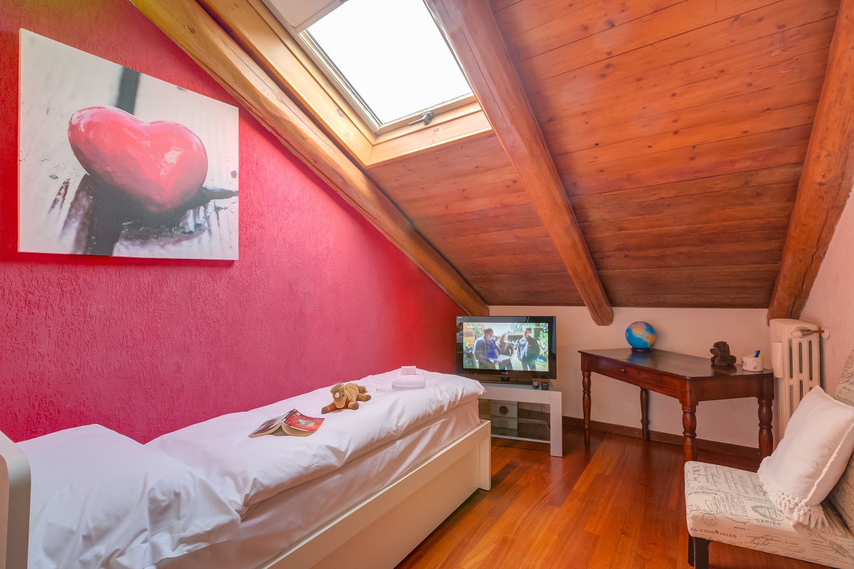 This charming duplex apartment is on the first floor of an attractive condominium in the heart of Sauze d’Oulx. The apartment sleeps 4 people and makes a wonderful holiday destination throughout the year. The airy living area is furnished in a contemporary style, with wooden floors, a comfortable corner sofa, and a flat-screen TV. Glass doors lead out onto the balcony that looks over the town to the mountains beyond. The dining table is next to the open-plan kitchen. This is equipped with a cooker hob, electric kettle, microwave, dishwasher, coffee machine and fridge. An attractive spiral staircase leads from the living area up to the bedrooms which are tucked under the wooden eaves. Sleeping Bedroom 1: The fresh master bedroom has twin joinable beds, a cosy armchair, a flatscreen TV, a writing desk and an antique wooden wardrobe. Bedroom 2: The second bedroom has a single bed, with a 2nd pull-out single bed which can be joined. There is also a large wardrobe and a flat-screen TV. Bathroom The colourful bathroom, which is in between the bedrooms, has a shower, basin, bidet, washing machine and WC Additional • Free Wifi • Smart TV • Balcony • Washing machine • Laptop friendly workspace • Central heating • Hair dryer • Near to ski shuttle bus • Public parking (Free & paid), car not necessary • Child friendly • Pets possible • Suitable for elderly guests The date on which the heating is switched on is November 1st until April 30th Location The resort of Sauze d’Oulx is a popular holiday destination at any time of year. It is surrounded by spectacular mountains, forests and meadows. The apartment is in the centre of town close to all the amenities including a supermarket, bars, cafés and restaurants to suit all ages and budgets. In the winter months, visitors can enjoy multiple skiing and snowboarding options as the resort is part of the famous “Milky Way” network of slopes. The apartment is close to the shuttle bus which links to the extensive network. In the summer, there are numerous hiking trails through the alpine meadows and mountains. The region also hosts many cultural events and festivals through the year. There is always plenty to keep visitors busy. Turin airport is a 1 hour and 20 minutes drive from the apartment.