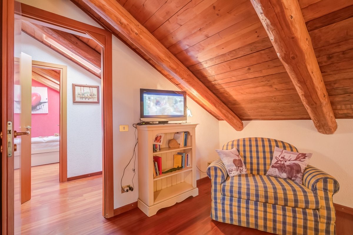 Generous and comfortable seating area. 2nd bedroom isn't great. Two single beds, end to end. Only one working light. Main bedroom is good. Tricky spiral staircase. Ski lift is walkable, as is the centre of town