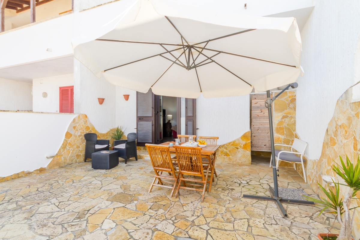 Bell'appartamento, con alcune comodità extra quali il doppio cortile e la doccia esterna. Prezzo sproporzionato però, anche confrontando con altre offerte in zona