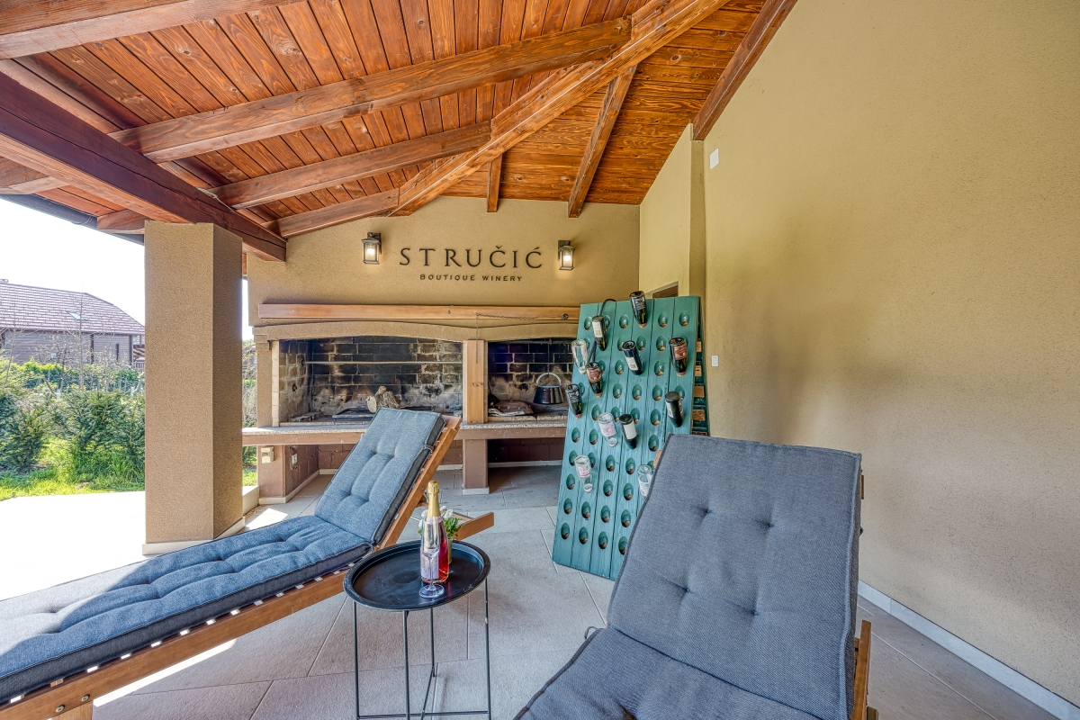 Perched on a hill, within a vast 10-hectare vineyard, this townhouse offers an ideal setting for relaxation and enjoyment. The estate features a spacious living and dining area, a well-equipped kitchen, and a large undercover terrace for al fresco dining. The first floor includes four spacious bedrooms with double beds and two bathrooms. A hot tub adds a touch of indulgence, perfect for unwinding after exploring the estate.
