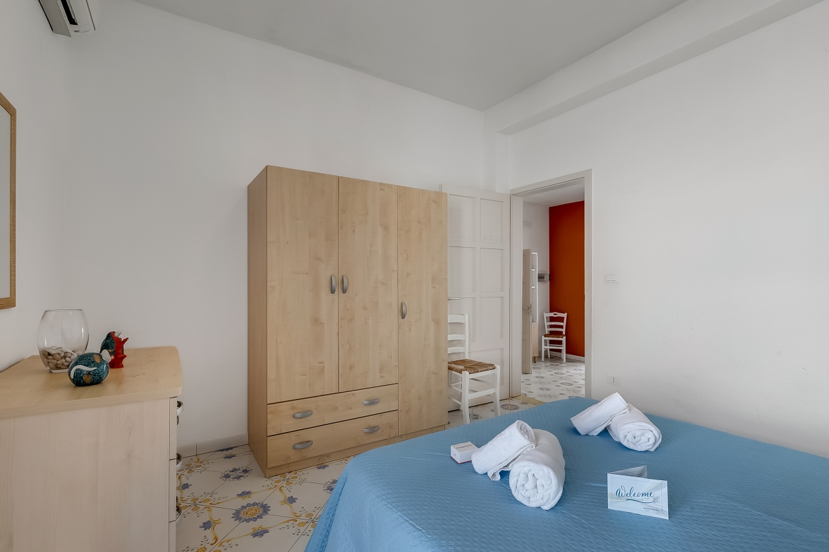 Relax on the sunny beaches of Southern Italy and escape the frenzy of everyday life. Located 6 minutes walk from the local beach, marina and a selection of restaurants. The property can accommodate 6 people and has a small kitchen equipped with a hob, microwave, coffee maker, fridge and freezer and dining table. Beds Bedroom 1: The first bedroom is furnished with a double bed and a wardrobe. Bedroom 2: The second bedroom is furnished with a double bed and a wardrobe. Extras: In the living room there is also a double sofa bed. The bathroom is equipped with shower, bidet, sink and toilet. More - Sea view - Balcony - Outdoor dining - Outdoor table and chairs - Air conditioning - Free Wi-Fi - Public parking - Car recommended - Pets allowed - No smoking Extra Costs: Cot €20.00 Highchair €20.00 Upon request & availability Location The property is situated in the charming seaside resort of Torre Vado on the Ionian coast of Salento, between the towns of Torre Pali (a 9-minute drive) and Santa Maria di Leuca (a 12-minute drive) which lies at the southernmost tip of the Salento Peninsula. The town is renowned for its pristine beaches and crystal-clear waters, the main beach, Spiaggia di Torre Vado is a 6-minute walk away and there is a small marina where visitors can rent a boat (a 7-minute walk). There are also a number of restaurants and grocery stores all within a 5-minute walk. Popular excursions nearby include the beautiful Baroque city of Lecce, known as the "Florence of the South" and the picturesque city of Otranto known for its beaches, charming old town, medieval castle and Byzantine-era cathedral both of which are 55-minute drive away. The closest international airport is Brindisi-Salento Airport (BDS) approximately a one-hour 30-minute drive from the accommodation.
