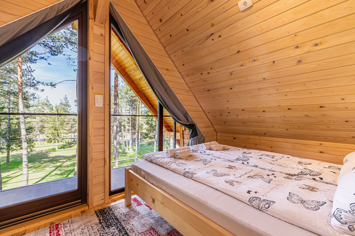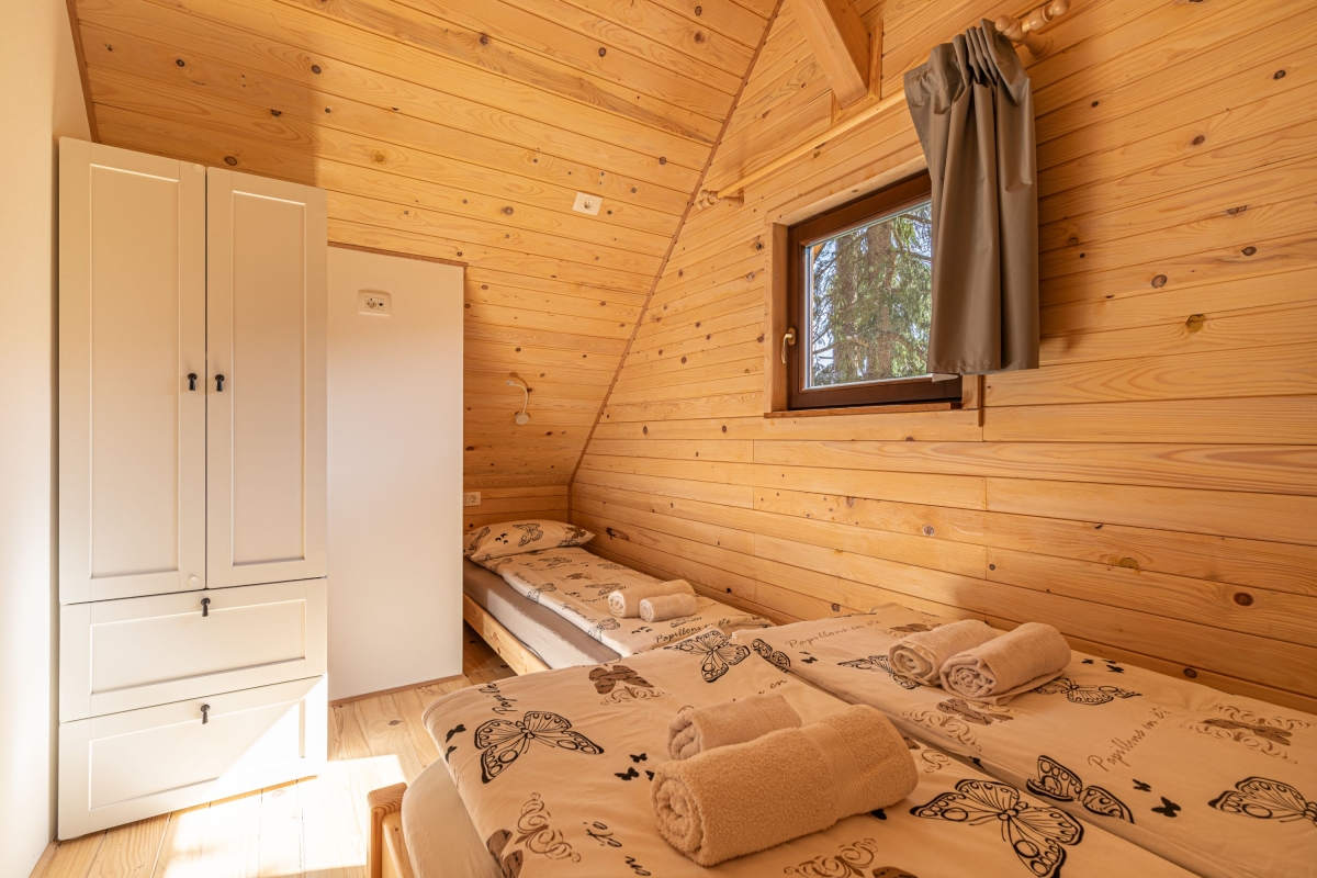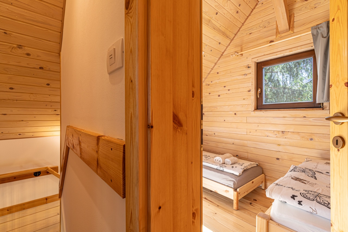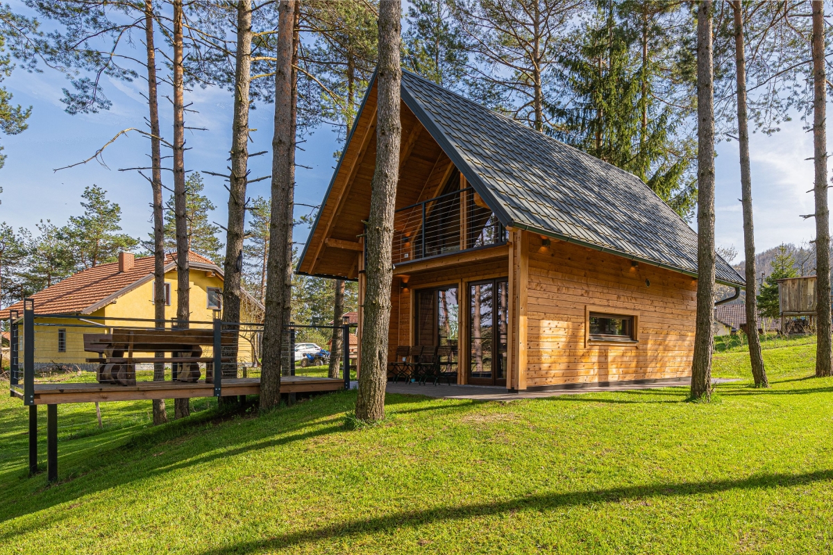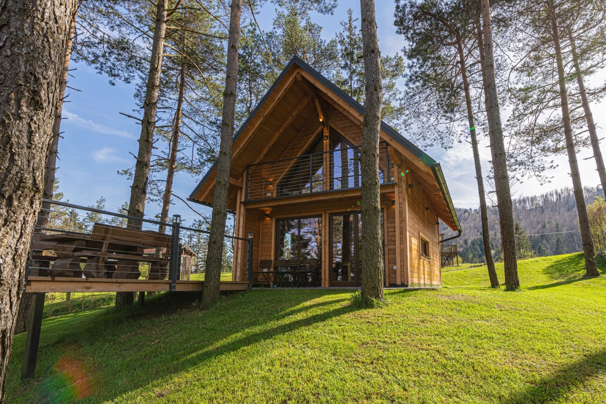 Your very own cottage in the woods, this independent contemporary chalet, which sleeps 6 people, makes an idyllic country retreat for a relaxing holiday in the heart of nature. Guests will enjoy the tranquil surroundings but also the easy access to some of Slovenia’s popular tourist destinations. The front door opens into the spacious, wood-panelled living area. There is a stylish modern staircase up to the 2 bedrooms and straight ahead is the open-plan sitting/dining area. The far wall is made up of a large glass window and doors which lead out to a private deck. The deck is furnished with a table and chairs, for relaxed meals al fresco. Inside, the room is furnished with a contemporary corner sofa, a wood-burning stove, large flat-screen TV and a wooden dining table for 6. The open kitchen is on the far side of the room and is well-equipped with a cooker hob, oven, dishwasher, fridge, freezer and kettle. Sleeping Bedroom 1: On the first floor, this cosy, wood-lined bedroom is furnished with a wooden double bed, a single bed and a wardrobe. A glass door leads out onto a balcony Bedroom 2: Tucked under the eaves, this second bedroom also has a double bed and a single bed, plus a wardrobe. Extra: The sofa in the living area converts into a comfortable double bed. Bathroom The ground-floor bathroom has a shower, basin and WC. Additional • Free Wifi • Outdoor dining & terrace • BBQ • Balcony • Fireplace • Electric radiators • Underfloor heating • Washing machine • Child-friendly • Suitable for elderly guests • Suitable for wheelchair users • Fenced private garden • Private parking – car essential • Tourist tax €1.50/per person/day to be paid on the spot Location Just 1 hour from the charming Slovenian capital, Ljubljana, the chalet is in the heart of the unspoilt Notranjsko-Kraska region. The region is ideal for cycling and there are many mountain bike routes and hiking trails which allow visitors to get out into nature. Not to be missed is the wild Lake Cerknica (27 minutes) and Notranjski Park (20 minutes), with its population of bears, lynx and wolves. Also the Krizna Jama cave complex (12 minutes) with its 22 underground lakes connected by waterways. Visitors explore the caves in kayaks, a magical experience. Ljubljana makes a fascinating day trip. It is a small city packed with history. A tour of its medieval castle is not to be missed. Neither is a visit to the Central Market where you can find fresh local produce and regional delicacies. Ljubljana’s international airport is a 1 hour 5 minute drive.