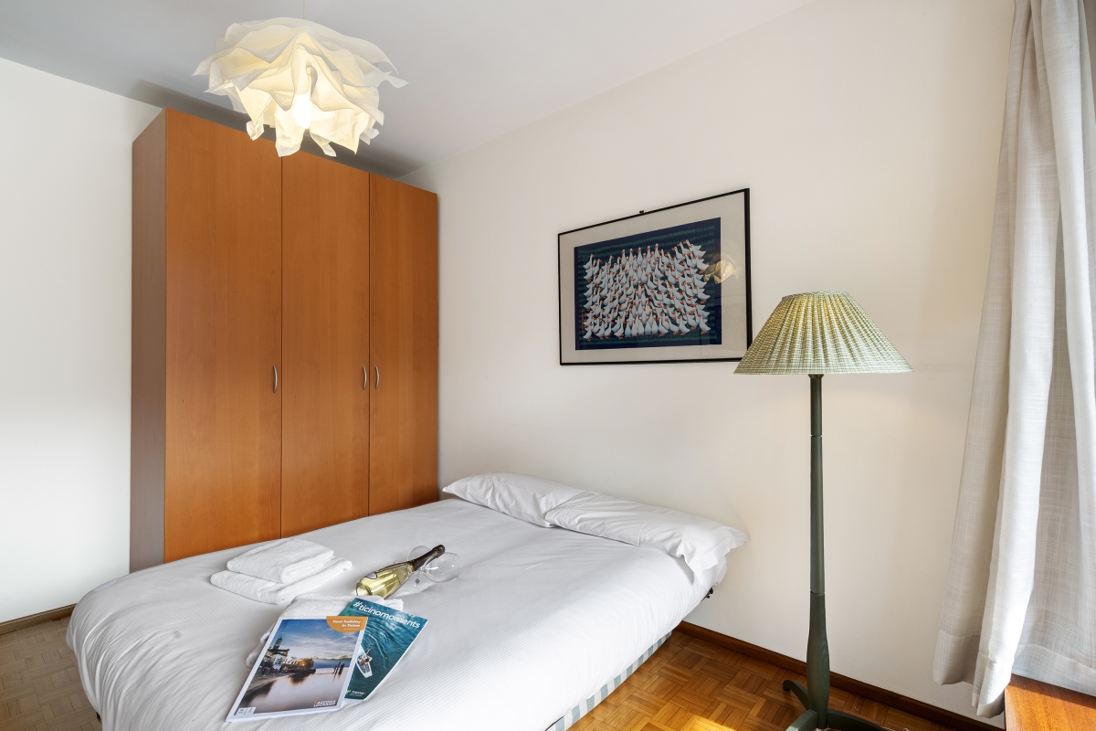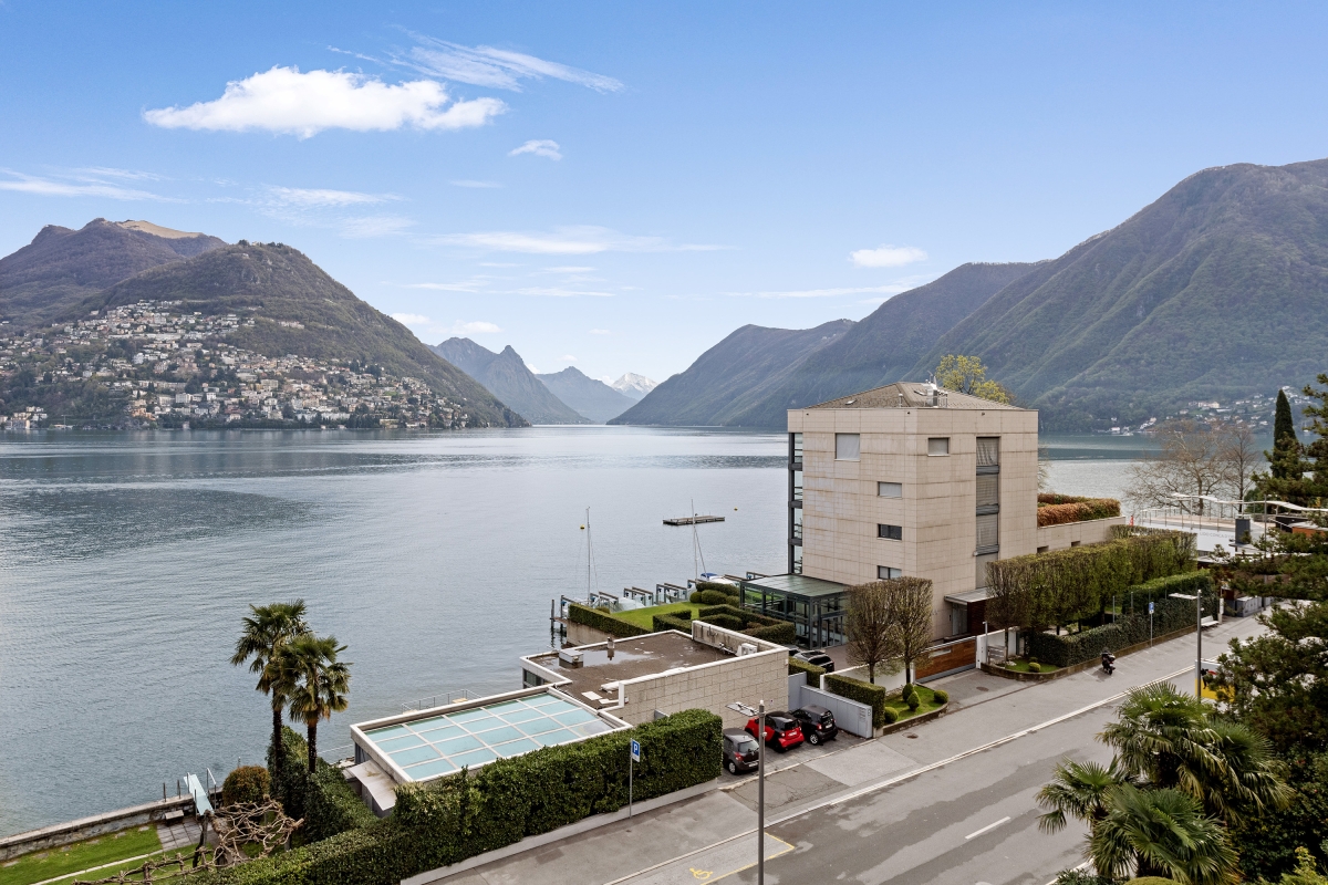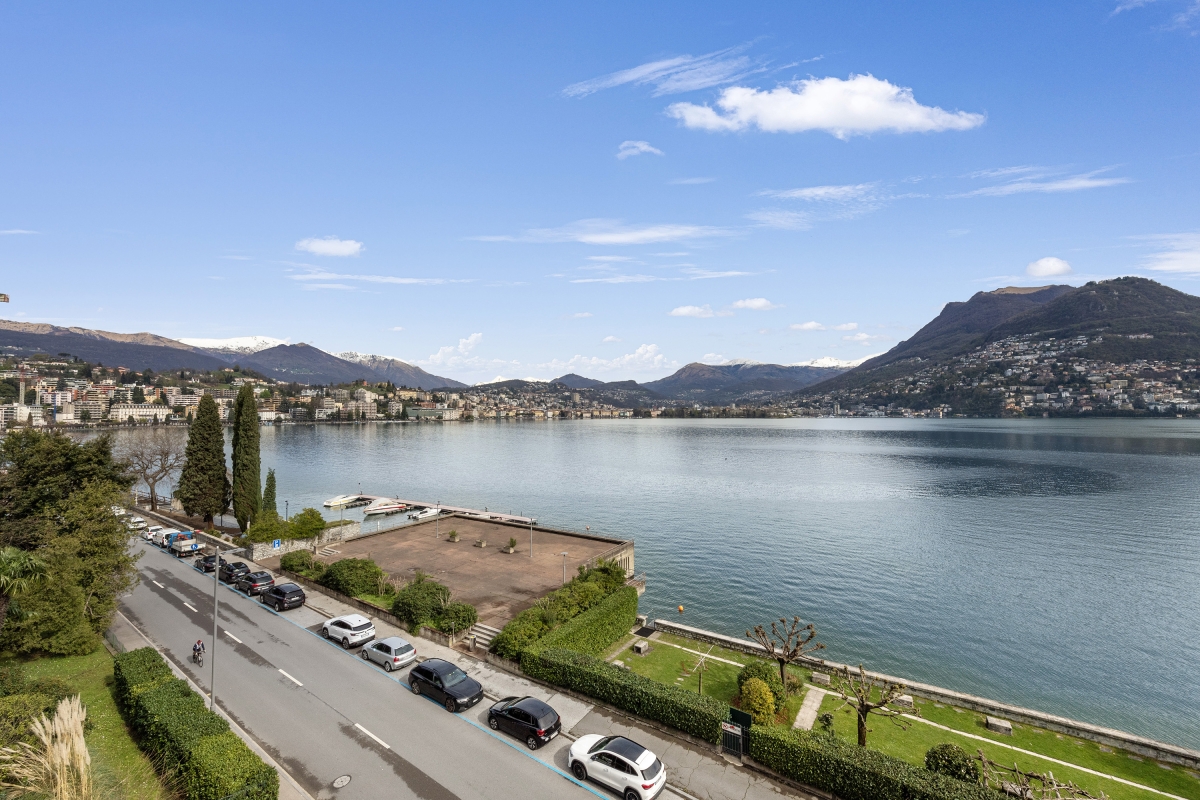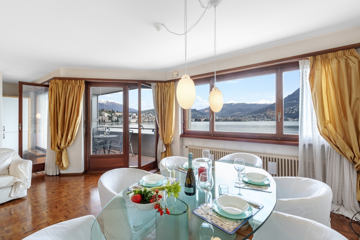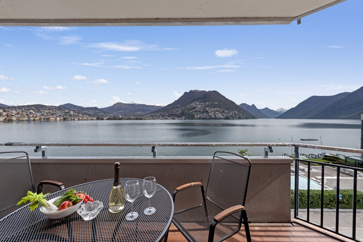 Experience the beauty of Lake Lugano with this panoramic lake-view holiday apartment in Paradiso! With the beautiful lakefront and Lugano’s luxury stores within walking distance, this fourth-floor holiday apartment with 2 bedrooms, a lakefront garden and a private terrace is ideal for carefree travels for up to 4. Unwind on the delightfully sunny terrace with open dining or relax on the private balcony of your room. An induction hob, oven, toaster and fridge are at guests’ disposal in the full kitchen for a hassle-free stay. Inside, the retreat has a bright, airy open living room with 2 sofas set with a coffee table, indoor dining, and a stylish separate kitchen! The room leads out onto the lake-view terrace, where you can dine with lovely alpine scenery in the background. Additionally, there is a lakefront garden at your disposal, perfect for moments of quiet relaxation. Wi-Fi is available for added convenience. Sleeping Both bedrooms have balconies and feature a double bed. Bathroom There are 2 bathrooms in the apartment, both featuring a shower and WC. The bathroom near the entrance also has a bidet. Additional • Free Wi-Fi • Pets not allowed • Central Heating • Paid Public Parking (Car not necessary) • Ironing Facilities • Lift • Shared Garden • Dishwasher Location The holiday apartment enjoys an easy-going and convenient location, where they can cross over the road and enjoy the beauty of Lake Lugano from its shores. In just a 10-15 minute walk, you will reach the lakefront with the Waterjet of Paradiso, Lugano Art and Culture Centre the ferry terminal, the funicular to Mount Salvatore, restaurants, supermarkets, children’s playground and Paradiso’s train transit stop. Plus, guests can reach the centre of Lugano with its beautiful Piazza della Riforma and the luxury shopping street Via Nassa in just 25 minutes on foot/ 5-minute drive. Further afield, guests can visit the amazing Swissminiatur in a 7-minute drive, spread over a stunning 14,000 square metres and houses miniature models of the best attractions in all of Switzerland. For admirers of the Nobel Prize-winning author Herman Hesse, a museum dedicated to the novelist in Montagnola is also about the same distance. The nearest international airport is Milan Malpensa, approximately a 1-hour drive away from this vacation rental in Paradiso.