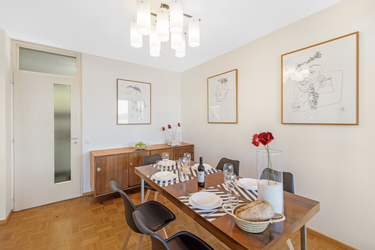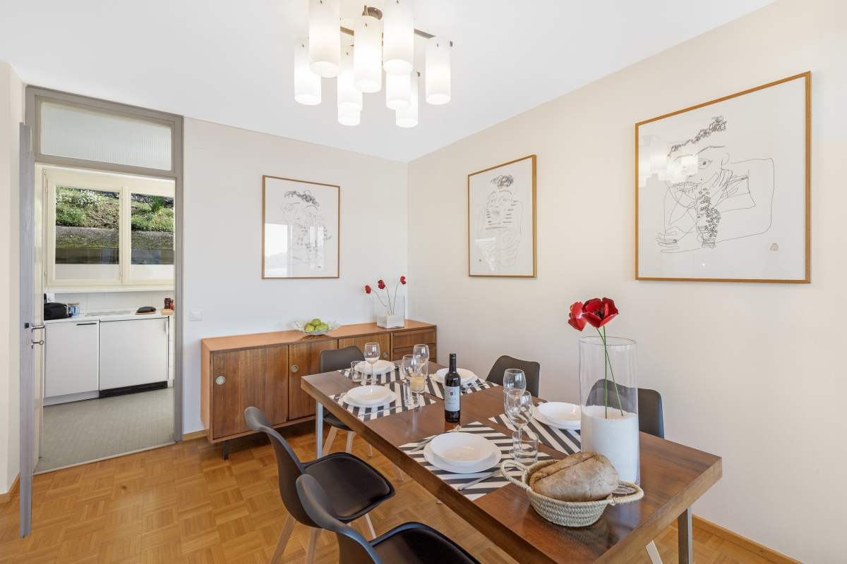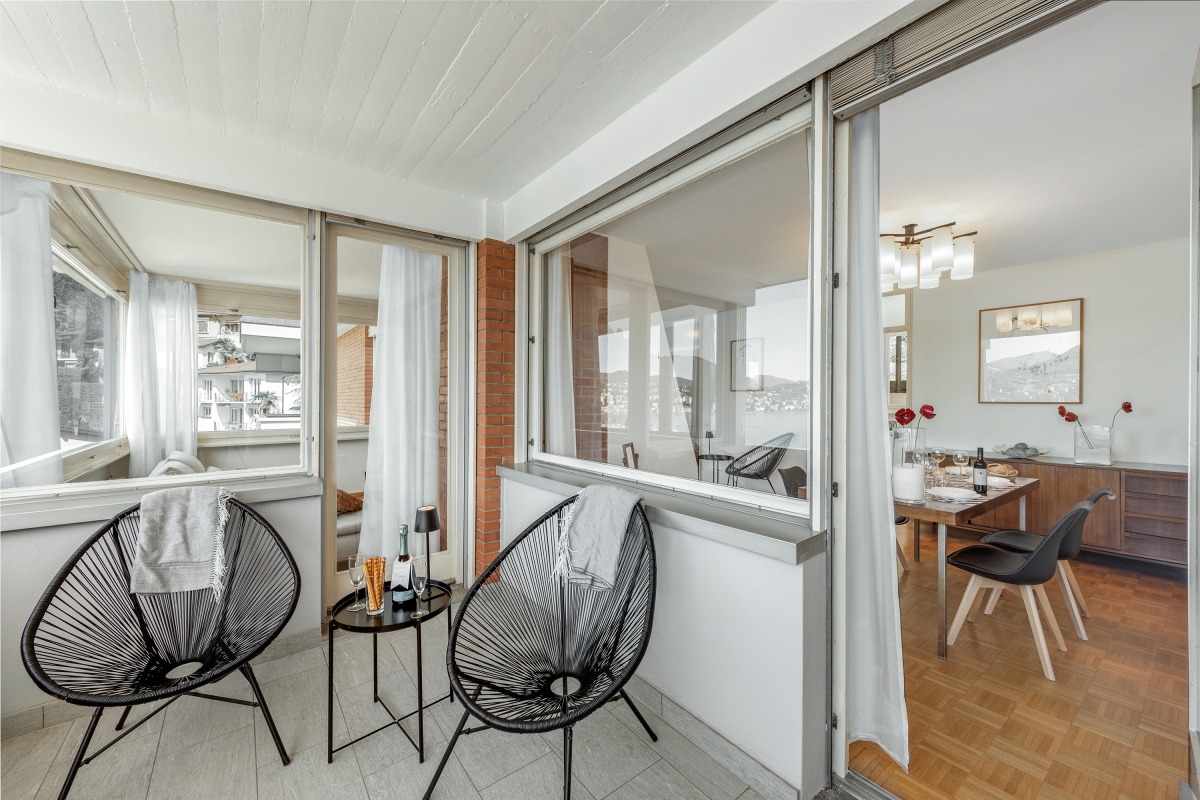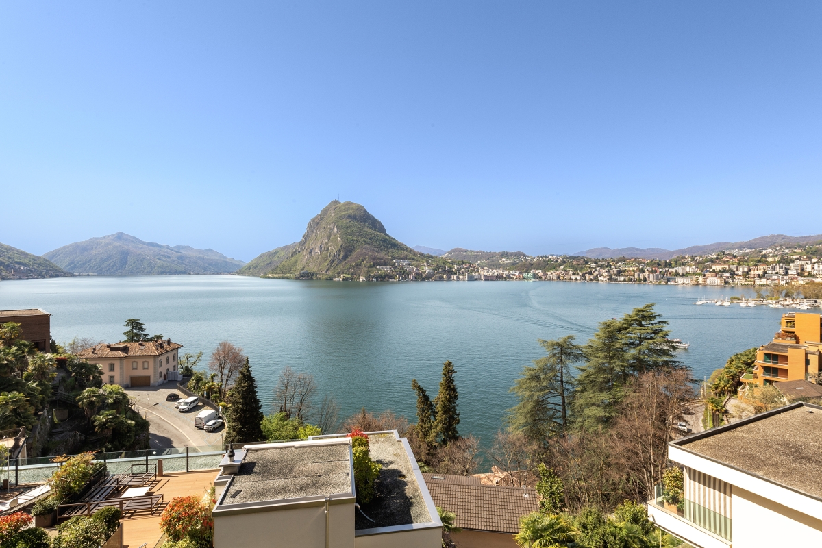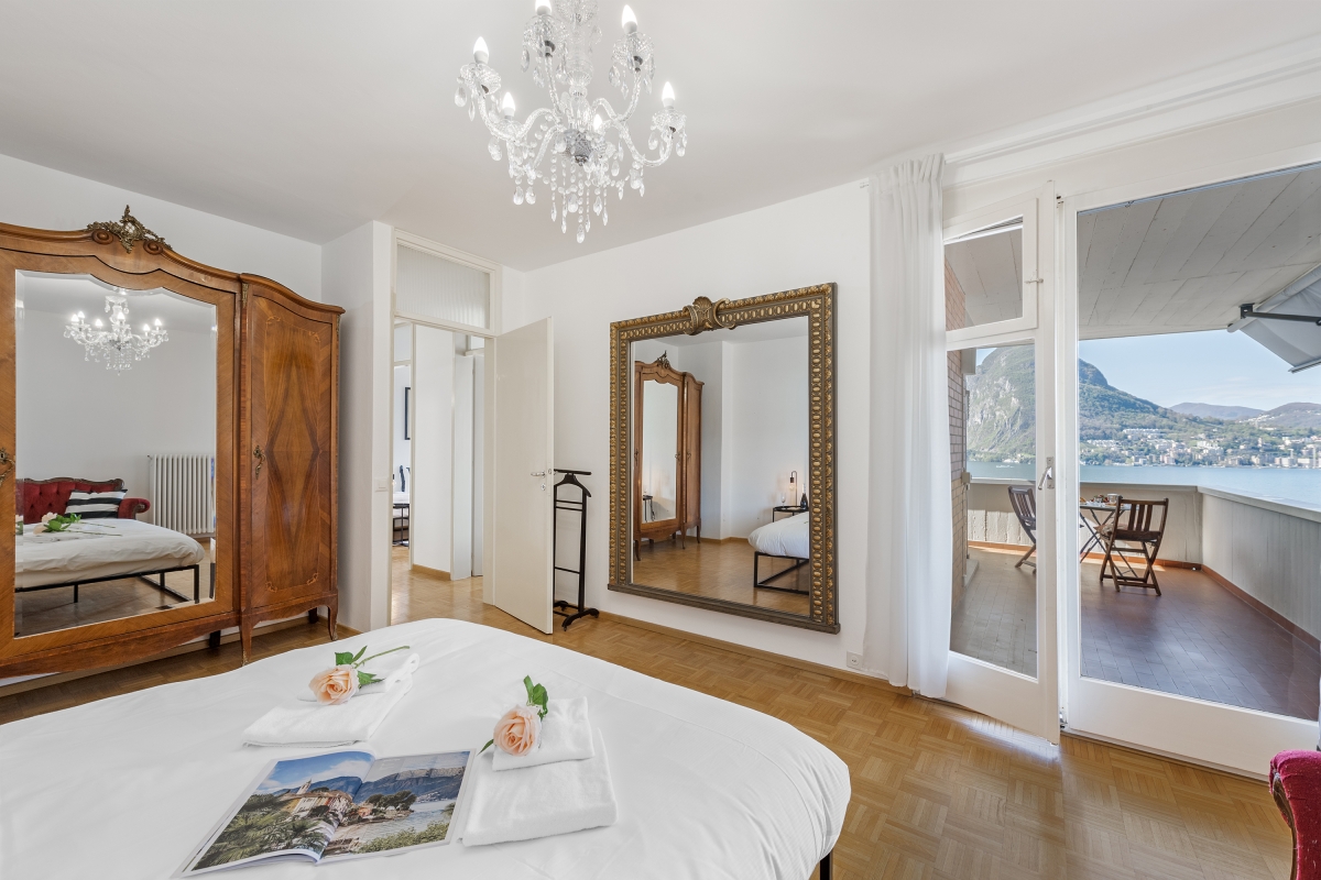 This stylish first-floor apartment with panoramic lake views, sleeps 5 people in comfort. Nestling on the hillside above Lake Lugano, and just 5 minutes from the centre of the city, the apartment is the perfect base for a fabulous holiday in this beautiful region. The spacious contemporary living/dining room has large windows overlooking the lake and the mountains beyond. The décor is chic and modern, with two glass doors leading out onto a private balcony, where guests can enjoy sundowners. Back inside, there is a cosy corner sofa next to a modern brick fireplace and a flat-screen TV. On the other side of the room there is an elegant dining table for 5 people. The separate kitchen is full of light and just off the dining area. is beautifully-equipped with everything you might need. There is a cooker hob, oven, microwave, dishwasher, fridge, freezer and a coffee machine. Sleeping Bedroom 1: The spectacular master bedroom is furnished with a modern double bed, combined with an antique wardrobe, an elegant sofa, a large framed mirror and a balcony shared with the 2nd bedroom which looks out over the lake. Bedroom 2: This airy bedroom has 2 single beds, a wardrobe and a door onto the balcony. Bedroom 3: Another light-filled bedroom with lake views. This room has a single bed and a lap-top friendly workspace. Bathroom Bathroom: The attractive bathroom is equipped with a full bath with a showerhead, separate shower, bidet, basin and WC Extra: There is an additional WC off the living area. Additional • Wifi device • Balconies • Outside dining area • Smart TV • Fireplace • Central heating • Washing machine • Hair dryer • Extra pet friendly • Child-friendly • Private parking, a car is not necessary - Garage Location The apartment is in an excellent location. Just a few hundred metres from the lake shore and a 15 minute walk from the centre of Lugano. On the border of Switzerland and Italy, the city of Lugano is famous for its stunning location, rich cultural heritage and excellent restaurants and cafés. The city hosts many festivals throughout the year, including the “Luganomusica” festival every summer. For self-catering, the Lugano farmers’ market (Tuesdays and Fridays) in Via Carducci (7-minute drive) is the place to go to pick up the best ingredients. Otherwise, there are a wide range of supermarkets nearby. The lovely town of Gandria (4 minute drive) which is towards the Italian border makes a great day out. Visitors can wander through the village’s winding streets or hike along the Sentiero Dell’Olivo. For more beautiful hiking routes, guests can cross over into Italy and enjoy the unspoiled forests and hills of Valsolda (25 minutes). The closest international airports are in Italy - Milan Malpensa 1 hour, 10 minutes by car, or Milan Linate, a 1 hour and 36-minute journey.