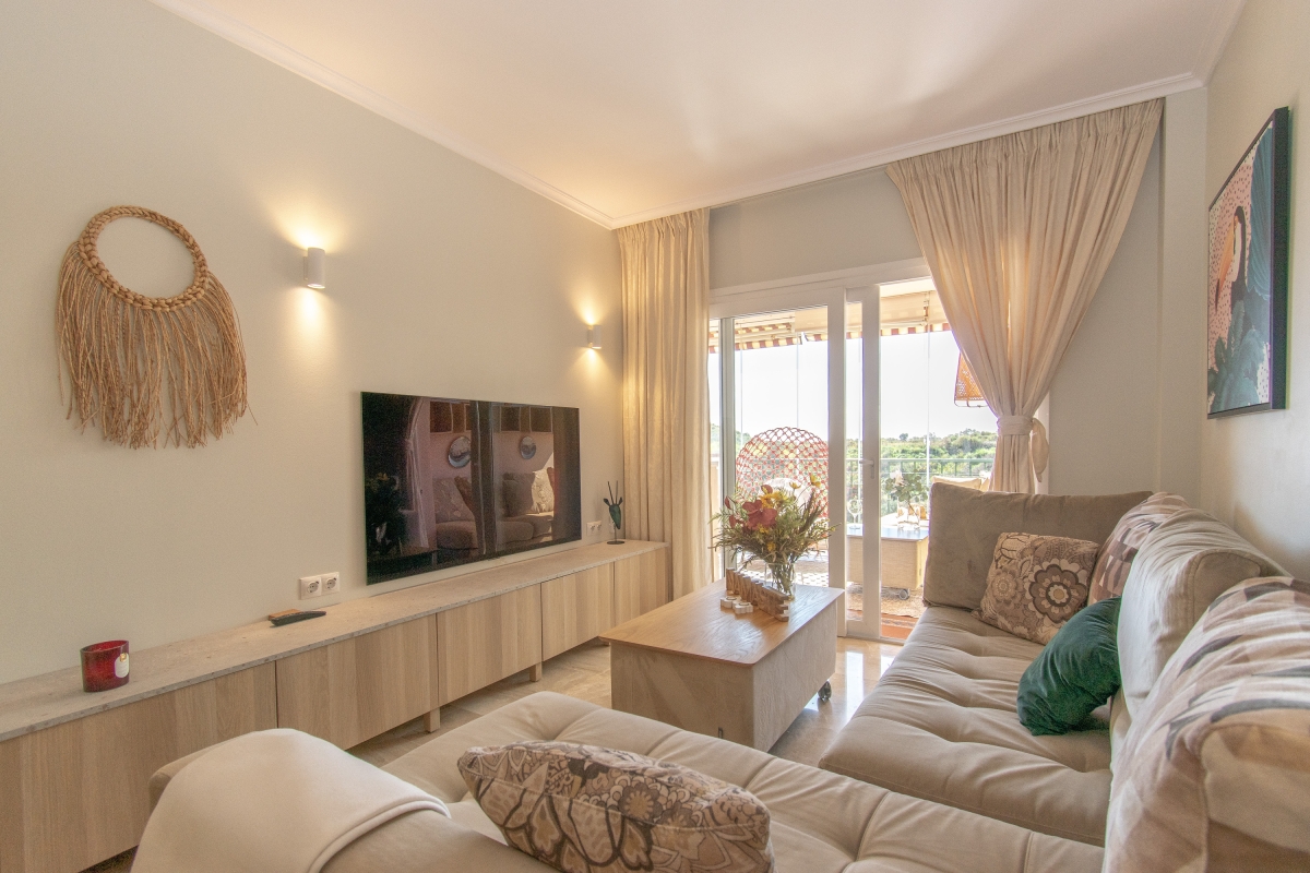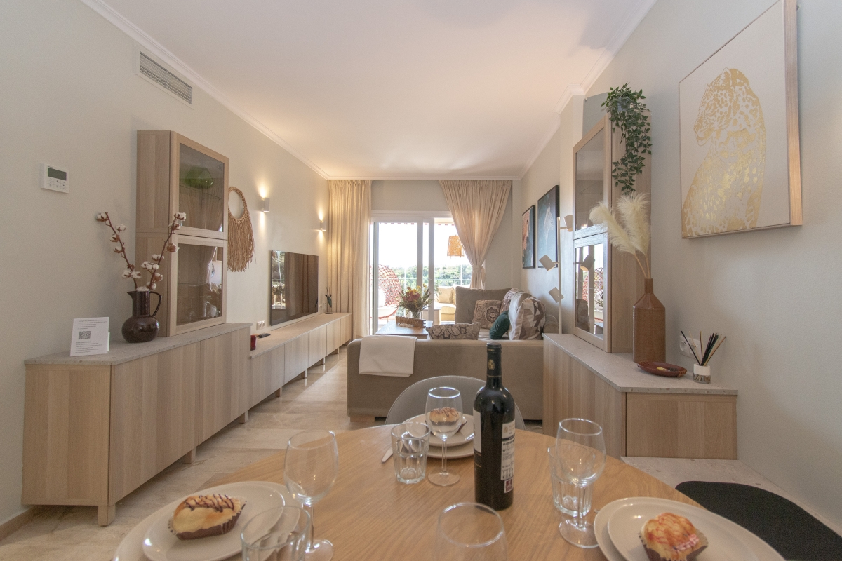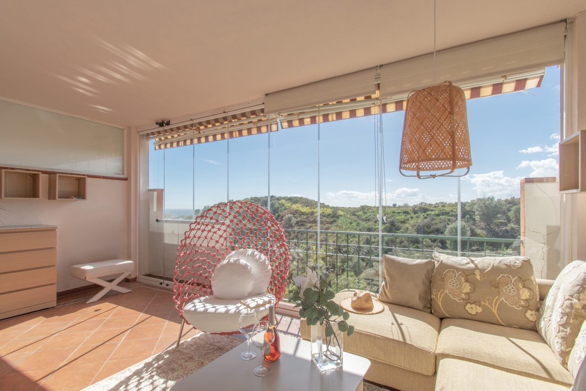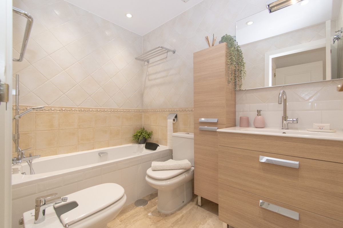 Delight in peaceful relaxation with this sea-view pool apartment for 4! Situated perfectly to enjoy the Mediterranean sun and the sea, this air-conditioned retreat is less than a 5-minute drive from the coast of Mijas. The getaway promises total relaxation with its delightful on-site amenities. There is a sun-washed private terrace with alfresco and 2 shared pools for a cool swim, as well as a communal garden for an evening stroll. For active vacationers, the apartment also offers access to the residence gym. The rental is fully air-conditioned, perfect to unwind indoors on sultry days. Its light interiors feature an elegant living room with direct terrace access, a Smart TV and a stylish wooden dining setup for 4. A separate kitchen with a dishwasher, Nespresso machine, induction hob and fridge with freezer make self-catering a breeze here. Additionally, the availability of laundry and ironing facilities, a laptop-friendly workplace and free Wi-Fi make this holiday rental suitable for remote working and year-round stays on Costa del Sol! Sleeping Bedroom 1: An en-suite master bedroom with a double bed, direct terrace access and wardrobe. Bedroom 2: A splendid double bedroom with 2 single beds and a wardrobe. Bathroom Bathroom 1: A modern, en-suite bathroom with a bath with shower and WC. Bathroom 2: A full bathroom with a shower and WC. Additional • Free Wi-Fi • Private Parking Spaces (no.5 ) • Ironing Facilities • Hairdryer • Lift • Shared Outdoor Pool (unheated) • Shared Garden • Sun Loungers • Private Terrace • Pets allowed on request • Washing Machine • Suitable for Elderly • Gym • EV charger available on request and added charges Location The holiday home away is located less than a 10-minute drive from the best of Mijas Costa: from Senda Litoral of Mijas to golfing adventures at Miraflores Golf, the historic Torre de Calahonda, coastal restaurants and bars and Playa de Calahonda and Butibamba. The closest bus stop, Golf Miraflores, is 15 minutes on foot from here. Apart from this, guests can also visit inland Mijas and soak up peaceful strolls in Mijas's characteristic white-washed historical centre. If you are a history or an art buff, then don’t miss out on the plenty of museums located here and dedicated to miniatures, Picasso, traditional flour mills etc as well as historic buildings like the oval Bullring (13-minute drive) and the parish church of Inmaculada Concepcion. For further exploration, Fuengirola, the typically Andalusian city of Marbella with party clubs and the eye-catching Castillo Colomares are within a 30-minute drive. The nearest international airport is Malaga-Costa del Sol, a 25-minute drive from the holiday rental.