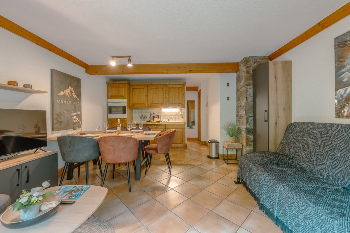 This stylish apartment for 5 people, in the heart of Chamonix, has panoramic mountain views. Surrounded by some of the most beautiful landscapes in Europe, the apartment offers everything you might want for the perfect holiday all year round.
