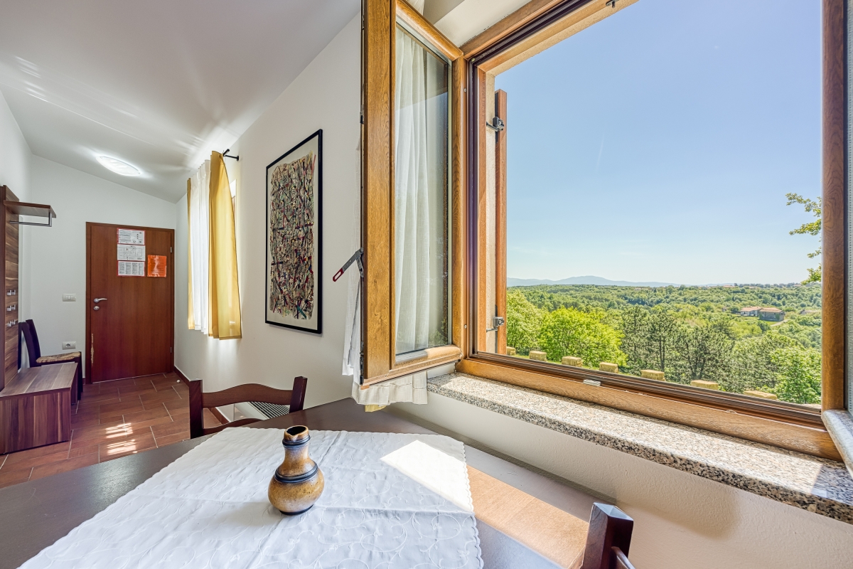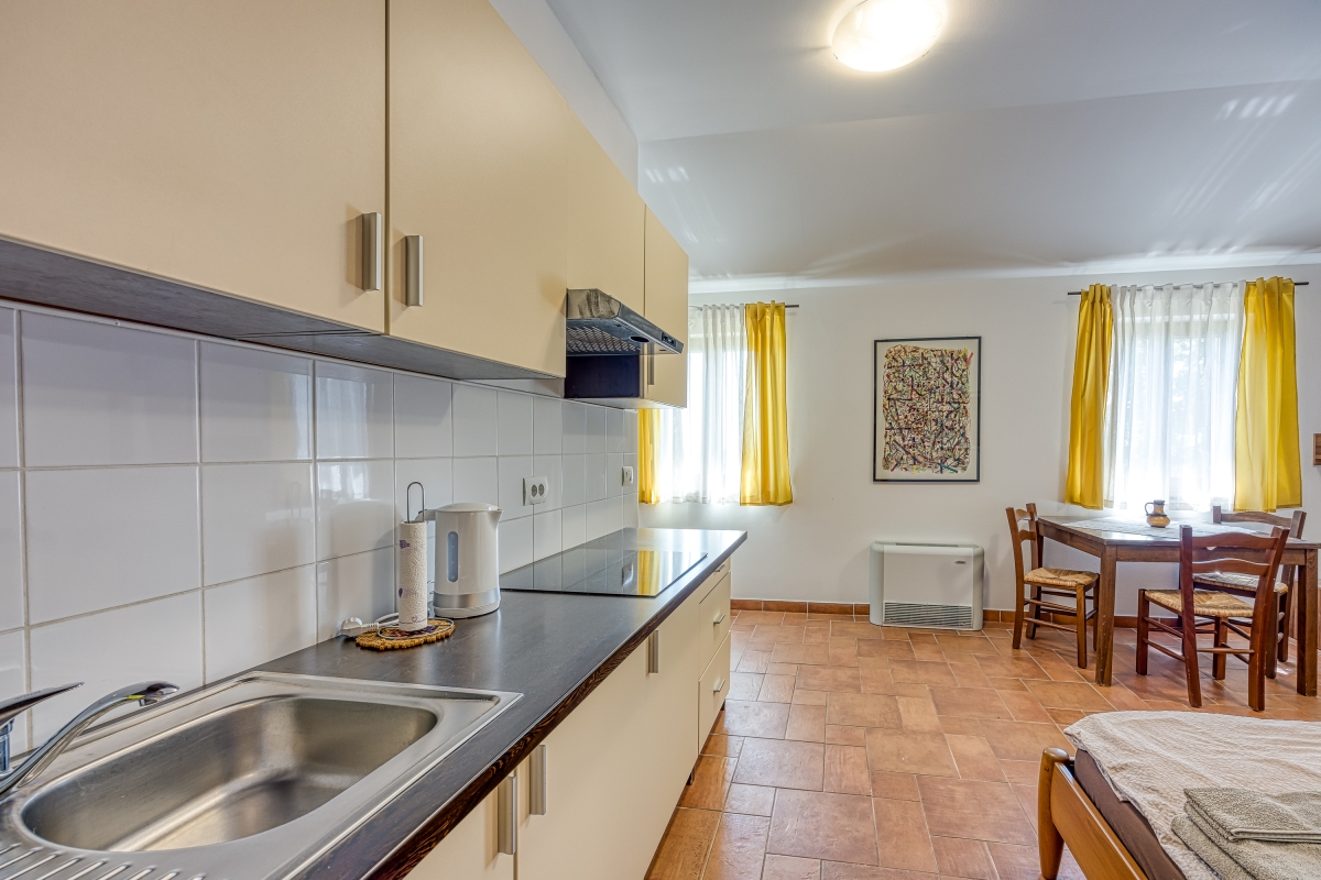 Enjoy days out exploring historic towns and villages or simply relax and unwind by the pool. Quietly nestled amongst the forests and farmland of southeastern Slovenia – this first-floor apartment offers comfortable accommodation for up to four guests. The property is situated within a small resort that offers a swimming pool, a sauna, a restaurant, a 24-hour front desk, a concierge service and bike hire for guests who would like to explore the surrounding area. There’s also a shared garden, a children's playground, a pool table, table tennis and a BBQ for guests’ usage. Inside, the open-plan living space is furnished with a double sofa bed and a flatscreen satellite TV. This area also incorporates a small kitchen equipped with a cooker hob, a fridge freezer and a dining table. Sleeping Bedroom 1: The bedroom is furnished with a double bed and a large wardrobe Extra: There is a double sofa bed in the living room Bathrooms Bathroom 1: The modern bathroom is fitted with a shower, a washbasin and a WC Additional • Shared Outdoor Pool (unheated) • Private Garden • Shared Garden • Terrace • Outside Dining • Outside Table & Chairs • BBQ • Air conditioning • Central heating • Wi-Fi • Private parking • Car Essential • Pets possible • Child friendly • Smoking is prohibited Extra Costs: Breakfast is available upon request. Bicycles are available for hire Location The property is located in the small village of Brezovica pri Gradinu in the southeastern part of Slovenia, close to the border with Croatia. The village is surrounded by rolling hills, forests and farmland providing the ideal location for outdoor activities including hiking, cycling and nature walks. Popular nearby excursions include: a day trip to the historic port of Koper (a 30-minute drive), San Giusto Castle (a 45-minute drive) or a trip to the nearby village of Gradin (a 15-minute walk) where visitors can explore local churches, traditional architecture and learn about the history of the area. For fun in the water, Aquapark Istralandia is a 40-minute drive away. The local area is also a paradise for wine enthusiasts, there is a vineyard a 6-minute drive from the accommodation where guests can enjoy the local wine whilst learning about the centuries-old winemaking traditions that define the area. The closest restaurant is an 8-minute drive away and there is a supermarket is a 2-minute drive from the property. The closest international airport is Trieste Airport (TRS) in Italy, approximately a one-hour drive away.