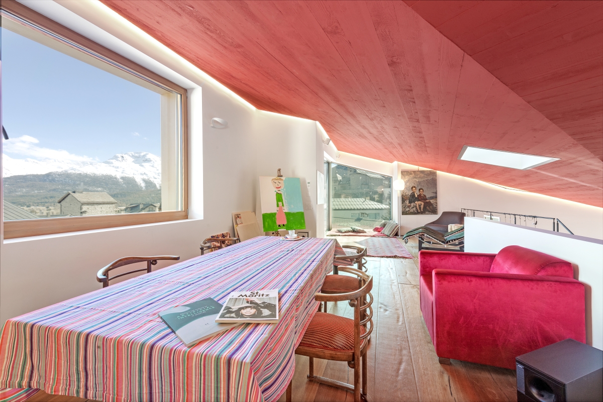 This spectacular villa for 12, is in the charming resort of Samedan, just 10 minutes from glamorous St Moritz. This striking, modern property is spread out over 5 floors with a lift. It is ideal for families and friends looking for a luxurious holiday base in the mountains at any time of year. The house is full of light and finished to the very highest standards, with natural elements; stone, wood and open metal stairs. On the ground floor, there is a spacious games room, with ping pong tables, a pool table, gym equipment, comfortable sofas, armchairs and a flat-screen TV. The main living space is on the first floor, with a stylish double-height sitting room, full of sunlight thanks to huge windows with panoramic mountain views. The room is furnished with a stylish sofa and chairs, plus a wood-burning stove. The mezzanine chill-out area is tucked under the eaves. Here guests can relax and enjoy the mountains thanks to a huge corner window. Back downstairs, the dining area leads off the main sitting room with a large table and chairs. Sliding glass doors open out onto a wide, corner balcony furnished with a coffee table and chairs, looking out over the mountains. The kitchen is adjacent to the dining area and, like the sitting area, has a large window with stunning views. The modern kitchen units are natural wood. There is a central island with a breakfast bar and the kitchen is well-equipped with an induction hob, oven, microwave, dishwasher, fridge, freezer and coffee machine. The spacious garage is ideal for ski and bicycle storage as well as parking! There is a private fenced garden where guests can enjoy the fresh mountain air. Sleeping The house has 6 double bedrooms, 4 of them are furnished with king-size double beds, one bedroom has a double bed and the last bedroom has 2 single beds. All bedrooms feature flat-screen TV’s, wardrobes, private terraces and en suite bathrooms. Bathrooms The stylish stone-tiled ensuite bathrooms all have a large glass shower, basin and WC. Extra: There is a separate, 7th bathroom with a shower, basin and WC. Additional • Free Wifi • Central heating • Fireplace • Air conditioning • Balcony • Private fenced garden • Outside table & chairs • Outside dining • Sauna • Pool table • Table tennis • Books library • Hair dryer • Pets allowed • Child-friendly • Suitable for elderly guests • Private parking (garage), but car not necessary • Ski storage • Close to skiing & ski lift Location The picture-postcard town of Samedan is packed full of activities at any time of year. The winding streets are full of tempting boutiques and cafés and there is even a modern spa and mineral baths (Mineralbad & Spa Samedan, 4-minute walk) which is suitable for families or couples. In the winter season, the ski slopes around the Survih Skilift (6-minute walk) are popular with families. There are also extensive cross-country skiing trails near the town. For more challenging slopes there are regular shuttle buses to Celerina’s gondola station to reach the higher pistes. During the summer, Samedan is a popular destination for hikers, mountain bikers and golfers. The Engadine Golf Club is a 3-minute drive. It is famous for its stunning 18 hole course. The closest airport is in Samedan - Engadin Airport is just 5 minutes away, but flights are limited. Other larger international airports are Zurich Airport (3 hours) or Milan Bergamo Airport (2 hours 55 minutes)