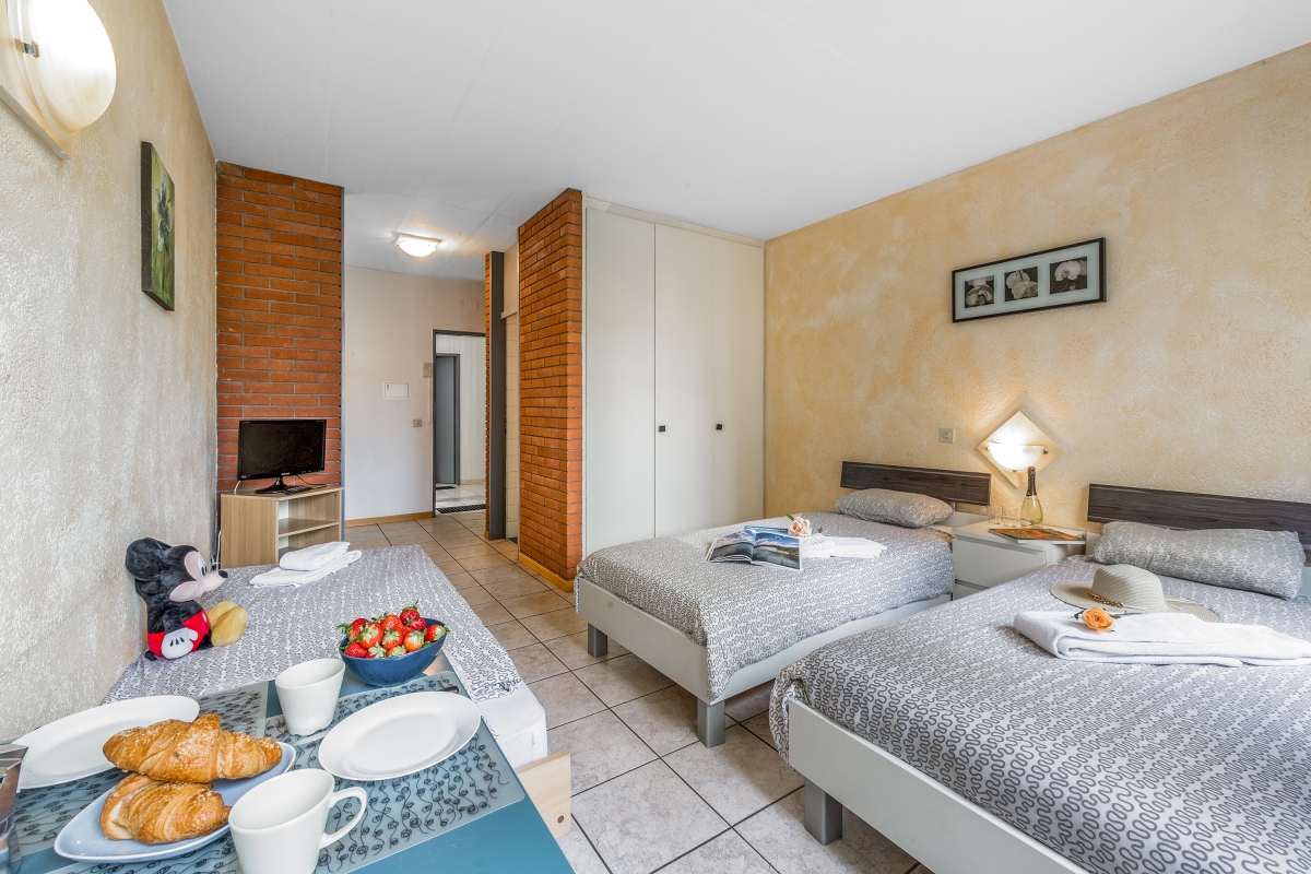 This second-floor (with lift) apartment sleeps 3 people in comfort. In a modern residence on the edge of Chiasso, the apartment makes a convenient base for a business trip or a family holiday on the Swiss/Italian border. The apartment has very good transport connections and is just 15 minutes by train from the centre of Como. The apartment has been carefully appointed with everything guests might need for a relaxed stay. The light-filled main room is furnished 3 single beds, plus a wardrobe and a dining table and chairs. The adjacent kitchenette is equipped with an electric heating plate and fridge-freezer. The residence has a large, shared garden which includes a children’s play area. Bathroom The tiled bathroom has a shower, basin and WC Additional • Free Wifi • Underfloor heating • Fan • Shared garden • Hair dryer • Laundry facilities on site (additional charge) • Paid public parking, a car is not needed • Pets allowed • Lift Location Just 2 minutes’ walk from a bus stop and a 3-minute drive to Chiasso railway station, the apartment makes traveling a breeze. Guests will find everything they need on their doorstep with good local amenities, including restaurants, bars and grocery stores all within 5 minutes. For younger guests, California Acquapark (3 minutes drive) makes an exciting day out. Como is a short train ride from the apartment, so guests have easy access to the lake and all the attractions of the city, including its farmers market, cathedral and lake-front promenade. The beautiful city of Lugano is 20 minutes away and Mendrisio, known as Il Magnifico Borgo (The Magnificent Town) just 10 minutes. Both offer history, culture and delicious food in abundance and are certainly worth a visit. The closest international airport is in Italy - Milan Malpensa is 40 minutes away by car.