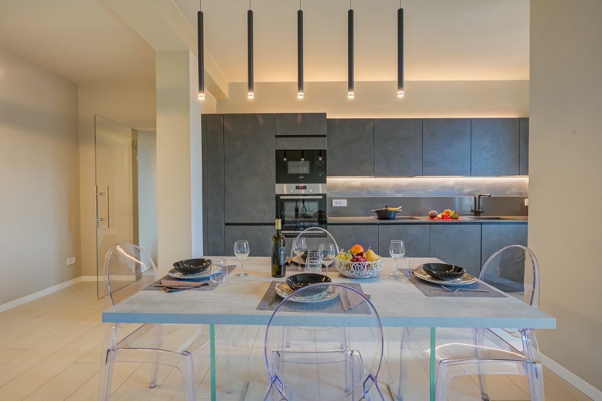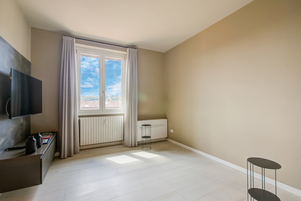 Enjoy alfresco meals in lake shore restaurants, renaissance architecture, Italian culture and days out on the water . Quietly located on the 3rd floor of a historic building (with a lift), this gorgeous apartment in downtown Salo, is a 5-minute walk from the marina. The spacious property comfortably sleeps five guests and enjoys beautiful views over the lake through large picture windows. The apartment's bright and airy living space is furnished with a dining table, a digital flatscreen smart TV and a comfortable sofa bed. This area also incorporates a contemporary kitchen equipped with; an induction hob, a mokka coffee machine, a microwave, a dishwasher and a fridge freezer. Sleeping Bedroom 1: The first bedroom is furnished with a double bed and a wardrobe. Bedroom 2: The second bedroom is furnished with a single bed, a desk and a wardrobe. Extra: There is also a double sofa bed in the living room Bathroom Bathroom 1: The generous-sized, modern bathroom is fitted with a shower, bidet, washbasin and a WC Additional • Lake View • Free Wi-fi • Air conditioning • Fire extinguisher • Washing machine • Paid public parking but car not necessary • Child Friendly • Pets Not Possible • Smoking prohibited • Heating available at an extra charge €10/night Location The property is located in the historic town of Salò, on the western shore of Lake Garda. The town is known for its historic centre, scenic lake views and rich cultural heritage. The marina is less than a 5-minute walk from the apartment and the local beach pavilion Spiaggetta delle Rive, just a further 2 minutes along the shoreline. Guests are also in easy reach of Bau Beach (a 5-minute drive) and Barbarano Beach (a 15-minute drive). The Alto Garda Park is less than a 10-minute drive away and offers beautiful lakefront hiking trails. For an enriching cultural experience "MuSa - Museo di Salò" is a 7-minute walk and the Renaissance-inspired Duomo di Santa Maria Annunziata Cathedral is approximately a 10-minute walk. Guests can plan a visit to Vittoriale degli Italiani, a 15-minute drive, to explore its architecture and drive through the charming streets of Gardone Riviera. For wellness treatments and more culture, the medieval town of Sirmione, famous for its thermal baths is a 40-minute drive. Guests will find a grocery store a 1-minute walk away and there are several restaurants within 4-minutes walk from the property. On Saturday mornings visitors can head to Mercato Di Salò (a 10-minute walk) to buy local produce. The nearest international airports are Verona Villafranca Airport (VRN) and Milan Bergamo Airport (BGY) which are both approximately a one-hour drive from the accommodation.