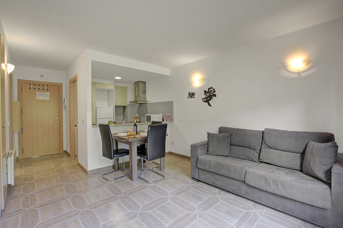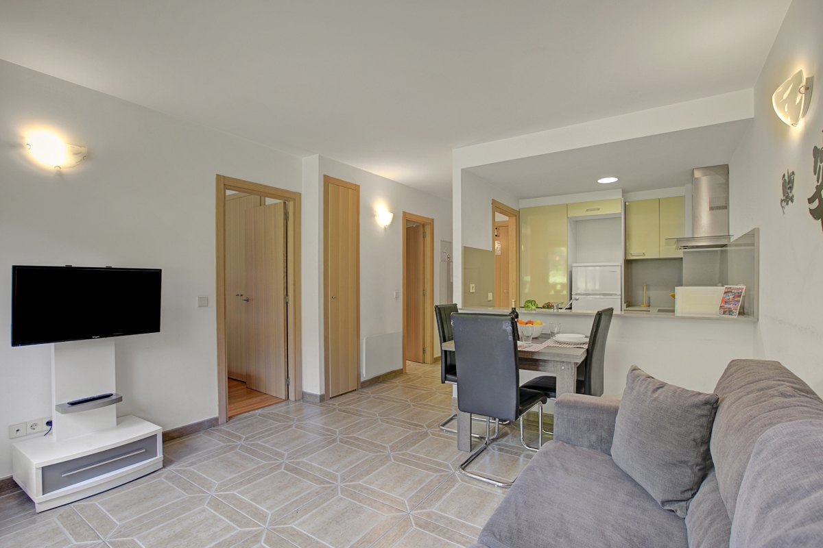 In the heart of Andorra, this contemporary apartment for 4 makes a great base for a holiday in the Pyrenees! El Tarter Ski Vacation Rental offers an action-packed holiday for all ages all year round. It has no view The 3rd-floor (with lift) apartment consists of an open-plan living area, furnished with a sofa, flat-screen TV, dining table and chairs, plus a well-equipped open kitchen. The kitchen is divided from the main area by and half-wall and is well-appointed with modern appliances including a cooker hob, oven, microwave, dishwasher, kettle, fridge/freezer, coffee machine and a washing machine. The owners can also supply fondue and raclette sets on request. Sleeping The bedroom has a comfortable double bed and a wardrobe. Extra: The sofa in the living room converts into a double bed. It is possible to arrange an additional bed (€95/per stay) Bathroom The modern bathroom is equipped with a shower, basin and WC. Additional • Free Wi-Fi • Electric radiators • Child Friendly • High chair €15/per stay, Baby cot €30/per stay • Pets not permitted • Suitable for elderly guests • Extra bed €95/per stay • Washing Machine • Flatscreen TV • Hair Dryer • Private parking space - car recommended • Ski storage • Near ski lift • Ski shuttle bus €10 return/per person • Door to door shuttle bus for Toulouse and Barcelona airports available on request (chargeable) Location The apartment is conveniently located in El Tarter, just a short distance (650 metres) from the Grandvalira Gondola, so it is the perfect base for skiing and snowboarding enthusiasts. The village of El Tarter offers some of the longest pistes in the Pyrenees and hosts many international competitions. For adventure seekers, Andorra offers a wide array of activities, from cross-country skiing and dog sledding in the winter, to hiking, mountain biking and rock climbing when the snows have melted. Don’t miss the chance to build your own igloo in Grandvalira or glide down the Magic Gliss alpine roller coaster (25 minutes). The Palau de Gel ice-skating rink (8 minutes) also makes a fun day out. In the summer, explore scenic hiking trails and discover alpine lakes such as Pessons (18 minutes) and Jucla near by. If relaxation is what you’re after, the Caldea Thermal Spa (23 minutes) awaits with its hot springs and beauty treatments. The nearest international airports are in France and Spain. Toulouse-Blagnac is 2 hours and 35 minutes, whilst Barcelona Airport is 3 hours.