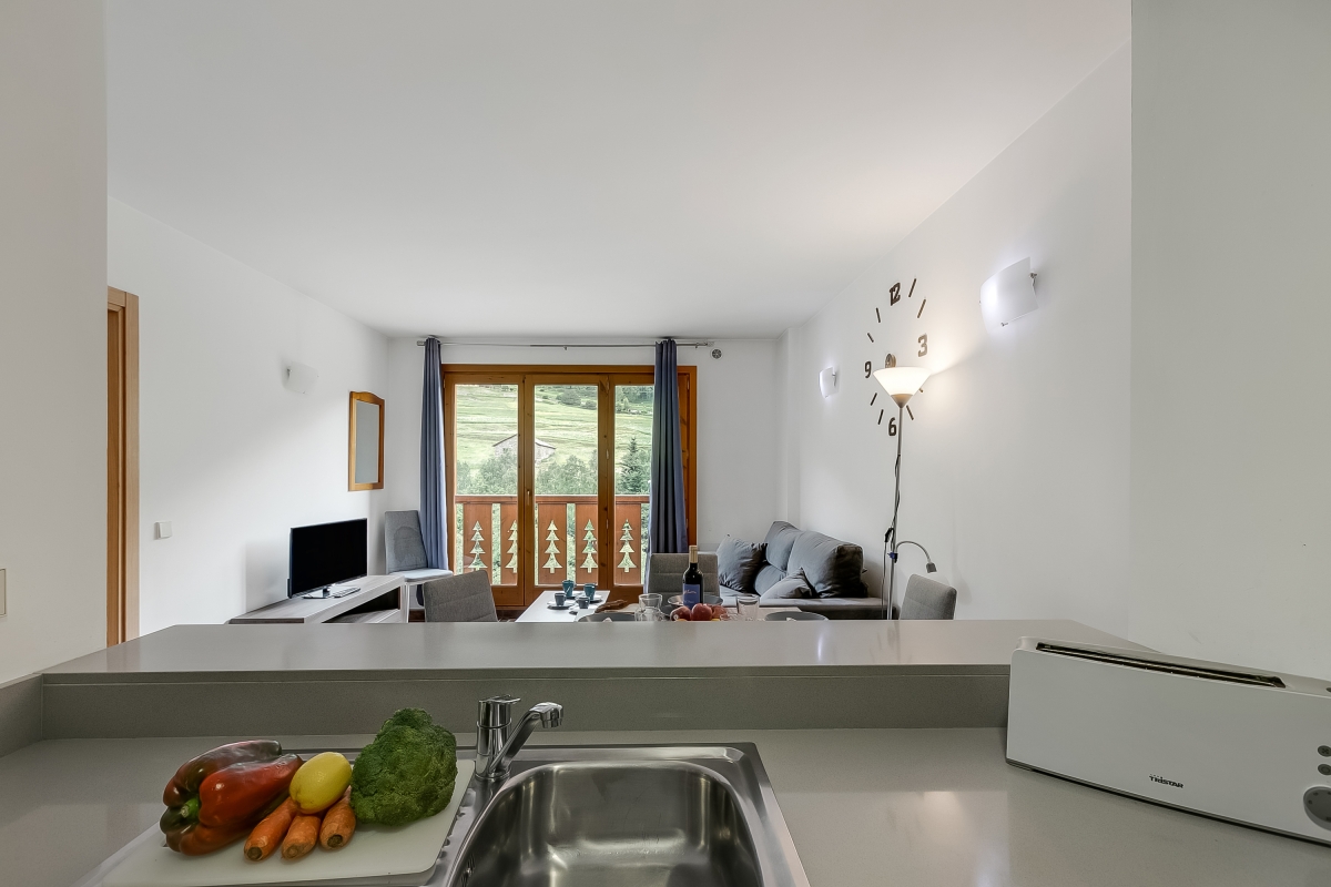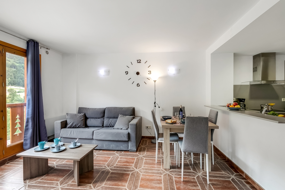 Discover Andorra and the slopes of Grandvalira! This contemporary apartment in Sant Pere del Tarter sleeps 4 people and is ideal for friends or families who are looking for an action-packed holiday all year round. The 3rd-floor (with lift) apartment has wonderful views of the mountain slopes and forests. It consists of an open-plan living area, furnished with a sofa, flat-screen TV, dining table and chairs, plus a well-equipped open kitchen. The kitchen is divided from the main area by and half-wall and is well-appointed with modern appliances including a cooker hob, oven, microwave, dishwasher, kettle, fridge/freezer, coffee machine and a washing machine. The owners can also supply fondue and raclette sets on request. Sleeping The bedroom has a comfortable double bed and a wardrobe. Extra: The sofa in the living room converts into a double bed. It is possible to arrange an additional bed (€95/per stay) Bathroom The modern bathroom is equipped with a shower, basin and WC. Additional • Free Wi-Fi • Electric radiators • Child Friendly • High chair €15/per stay, Baby cot €30/per stay • Suitable for elderly guests • Extra bed €95/per stay • Washing Machine • Flat-screen TV • Hair Dryer • Private parking space - car recommended • Ski storage • Near ski lift • Ski shuttle bus €10 return/per person • Door to door shuttle bus for Toulouse and Barcelona airports available on request (chargeable) Location Escape to this charming mountain apartment, nestled in the heart of the Pyrenees, the ideal spot of outdoor enthusiasts all year round. Located just 600 metres from the Grandvalira ski lifts, it offers a perfect base for skiers and snowboarders. In the winter you can enjoy the longest pistes in the Pyrenees and fun activities like the Magic Gliss alpine roller coaster (25 minutes) or ice skating at the Palau de Gel rink (8 mintues). During the summer months hikers can enjoy stunning lakes and scenic trails close to places like the Estany Primer de Pessons or play a round of golf on Europe’s highest golf course at Soldeu (15 minutes) For shopping, restaurants and cultural activities Andorra la Vella is only 25 minutes by car. In summer there is a weekly market (Saturdays) which is the perfect place to pick up local crafts and souvenirs. The nearest international airports are in France and Spain. Toulouse-Blagnac is 2 hours and 35 minutes, whilst Barcelona Airport is 3 hours.