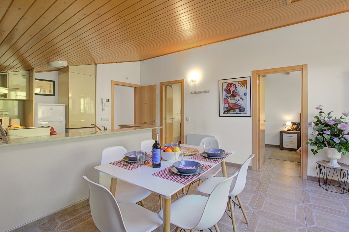 Family Snow Apartment is a contemporary, loft-style apartment for 5 people in the heart of Andorra, near the slopes of Grandvalira. It makes a wonderful base for friends or families who want to explore this beautiful part of the Pyrenees, at any time of year. On the 4th-floor (with lift) apartment enjoys spectacular views of the Grandvalira ski slopes. The open-plan living area, has a sloping wooden ceiling with a skylight and large windows looking over the meadows across the valley. The spacious room is furnished with a sofa, flat-screen TV, dining table and chairs, plus a well-equipped open kitchen. The kitchen is divided from the main area by and half-wall and is well-appointed with modern appliances including a cooker hob, oven, microwave, dishwasher, kettle, fridge/freezer, coffee machine and a washing machine. The owners can also supply fondue and raclette sets on request. Sleeping The master bedroom has a comfortable double bed and extensive storage. Extra: The sofa in the living room converts into a double bed. It is possible to arrange an additional bed (€95/per stay) Bathroom The modern bathroom is equipped with a shower, basin and WC. Additional • Free Wi-Fi • Electric radiators • Child Friendly • High chair €15/per stay, Baby cot €30/per stay • Suitable for elderly guests • Extra bed €95/per stay • Washing Machine • Flatscreen TV • Hair Dryer • Private parking space - car recommended • Ski storage • Near ski lift • Ski shuttle bus €10 return/per person • Door to door shuttle bus for Toulouse and Barcelona airports available on request (chargeable) Location Ideally placed for guests to enjoy Andorra’s winter wonderland, the apartment is located just 300m from the El Tarter Gondola, which takes you directly to the slopes of Grandvalira, the largest skiing area in southern Europe with over 200 km of pistes for all levels. Experience the thrill of skiing and snowboarding, then unwind in the cosy apartment, complete with all the home comforts, or enjoy the vibrant après-ski scene at L’Abarset, just a few steps from your front door. In the summer immerse yourself in Andorra’s magnificent countryside. Hike through the breathtaking Incles Valley (8 minutes), a hikers’ paradise, or discover the excitement of the Canillo Bike Park (7 minutes). Cool off in the crystal-clear waters of lakes Pessons (10 minutes) and Jucla. Challenge yourself with climbing or the via Ferrada at Racons. Golf enthusiasts will enjoy Europe’s highest golf course at Soldeu (15 minutes). The capital, Andorra la Vella (20 minutes), will surprise you with its variety of shops and restaurants. Andorra has it all - nature, sports, adventure and great cuisine. The nearest international airports are in France and Spain. Toulouse-Blagnac is 2 hours and 35 minutes, whilst Barcelona Airport is 3 hours.