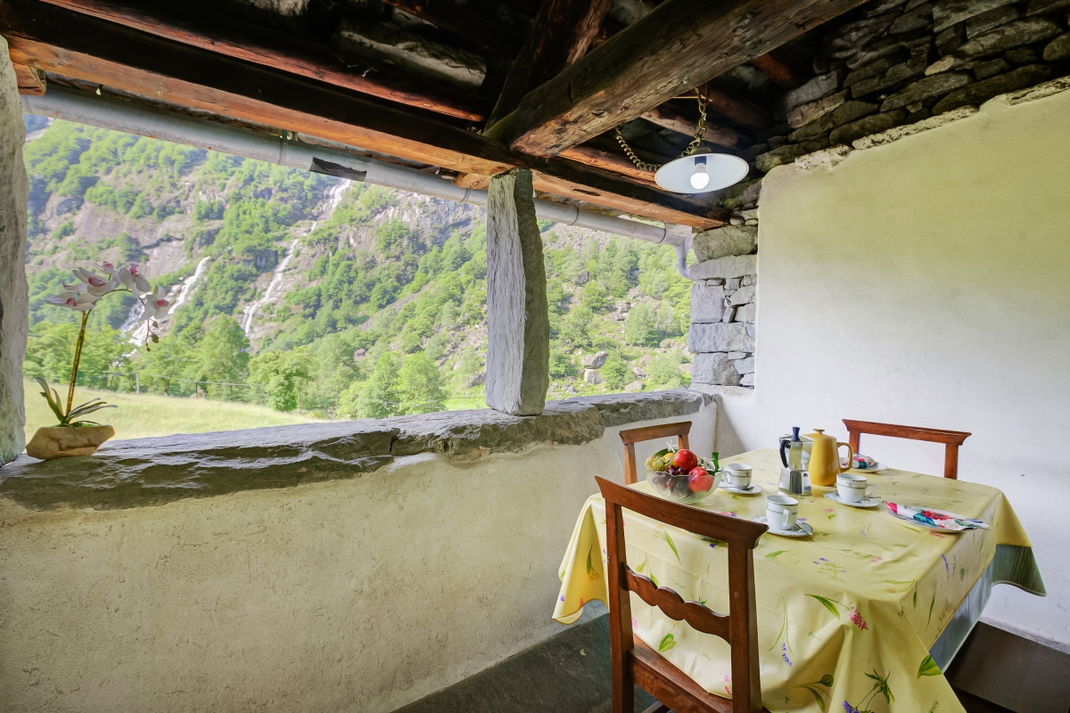 Set in a glorious alpine landscape, looking out at waterfalls, meadows and mountains, this authentic converted village cottage offers the ultimate escape for people to get away from the hustle and bustle of modern life. This stone house, in the heart of a well-preserved 16th-century village, offers an idyllic retreat for 4. It is recommended for people who want to get out into unspoiled nature. The ground floor has an open-plan kitchen/dining room with a traditional stone fireplace. There is a dining table and chairs and a modern kitchen. The kitchen is equipped with a cooker hob, oven and a fridge. There are 3 different terraces, all with panoramic views of the countryside. From the kitchen guests can go directly into a covered loggia which serves as an outside dining space, as it is furnished with a table and chairs. Through the main door there is a charming paved terrace which is raised from the village pathway. Here too there is a dining table and benches, where guests can enjoy meals al fresco. A third loggia style terrace is reached through the ground floor bedroom. This is furnished with a sofa, so guests can relax and take in the incredible surroundings. A modern staircase leads up to a bedroom. Sleeping Bedroom 1: The master bedroom is on the ground-floor and has a double bed, wardrobe and door out onto a private terrace. Bedroom 2: The 1st-floor bedroom is tucked under the wooden eaves and is furnished with two single beds and a wardrobe. Bathroom The tiled bathroom has a shower, basin and WC. Additional • Outside dining • Fireplace • Central heating • Outside table and chairs • Hair dryer • Private garden • Child-friendly • Pets possible • Free public parking in the village square - car recommended. Location In the heart of the Cristallina region, the cottage is in a quiet village set in breathtaking countryside, with a river and waterfalls nearby. It is an ideal base for climbing, hiking, mountain biking or simply relaxing in some of Europe’s most beautiful landscapes. The small town of Cavergno is a 5-minute drive. Here guests will find grocery stores and a few restaurants. Further afield is Cevio (10 minutes) which is the capital of the Vallemaggia. There is a wider choice of amenities here, including banks and supermarkets. The area is famous for its cheeses which are available in the local grocery stores and not to be missed. Locarno on Lake Maggiore is 35 minutes away. Here guests can enjoy La Dolce Vita, with a Swiss touch. The town’s weekly market (Thursday) in Piazza Grande is the best place to find local crafts and souvenirs, as well as the freshest local produce. Alternatively, you can swim in Lake Maggiore, from the Lido Locarno. The closest international airport is Milan Malpensa 2 hours 5 minutes away by car.