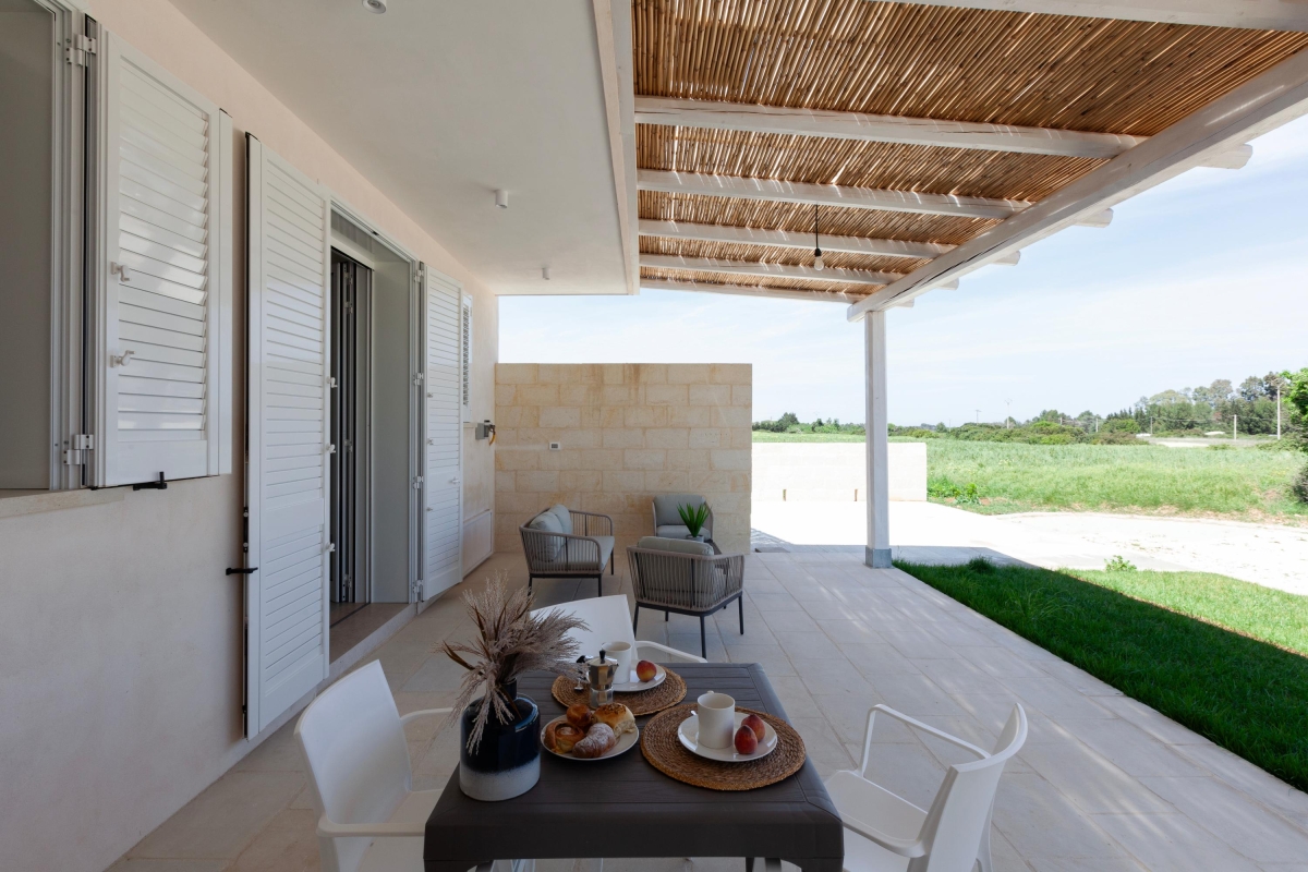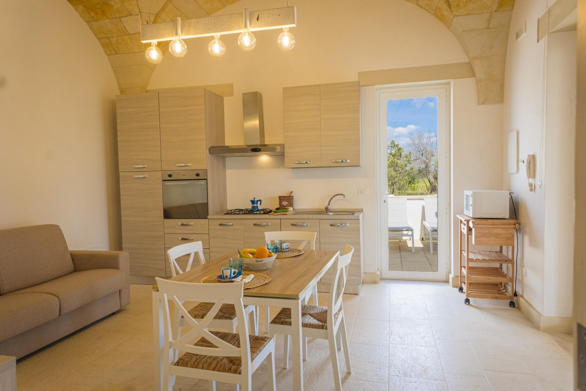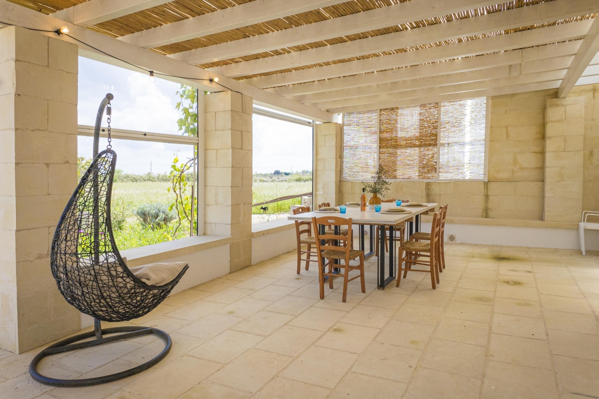 Spot flamingos by the lake, relax on dreamy beaches with crystal-clear waters or simply unwind on a sun lounger by the pool. This rural retreat comfortably sleeps 16 guests and has been designed to allow space for both socialising and quiet reflection. The property is situated in the countryside between Otranto and the Alimini Lakes and combines two separate villas, which can be rented individually (ID 11385 & ID 11384) or together. The larger of the two properties sleeps 12 guests with the smaller accommodates 4. The villas are separated by a swimming pool at your disposal from 8am to 8pm and the entire development is set up for outdoor living with four separate verandas, two outside kitchens, a sun terrace and a covered patio. The two largest verandas provide modern open-plan living spaces furnished with dining tables, comfortable seating and outdoor kitchens. Both kitchens are equipped with; a cooker hob, an oven, a microwave, a coffee machine and a fridge freezer. Two further verandas are furnished with comfortable seating providing peaceful spaces for relaxing with a good book or cooling down after a day at the beach. The smaller villa retains the stone walls and beautiful vaulted ceilings of an original historic building. Inside, this villa enjoys an open-plan living space furnished with a double sofa bed, a dining table and a small kitchen fitted with; a cooker hob, an oven, a microwave, a coffee machine and a fridge freezer. Sleeping Villa 1 All bedroom's rooms enjoy air-conditioning & TVs Bedrooms 1 & 2: Both ensuite bedrooms enjoy air conditioning and are furnished with a double bed, a single bed and a wardrobe Bedrooms 3 - 5: All three ensuite bedrooms enjoy air conditioning and are furnished with a double bed and a wardrobe Villa 2 Bedroom 1: The bedroom is air conditioned and is furnished with a double bed and a wardrobe. This room also enjoys access to the patio. Extra: There is a double sofa bed in the living room Bathrooms Villa 1 Bathrooms 1 - 5: All five ensuite bathrooms are fitted with a shower, a bidet, a washbasin and a WC Villa 2 Bathroom: The bathroom is fitted with a shower, a bidet, a washbasin and a WC Additional • Private Garden • Swimming Pool • Outside Dining • Outside Table & Chairs • Free Wi-Fi • Air conditioning • Washing machine • Private parking • Car Essential • Pets Allowed • Smoking is prohibited •The water Is not drinkable. Water Is supplire from the well Extra Costs: Cot €20.00 Highchair €20.00 - on request & upon availability Location The property is located in the countryside to the north of the city of Otranto (a 5-minute drive), close to some of the most beautiful beaches in Italy and the incredible conservation area of the Alimini Lakes (a 10-minute drive). Whether you're interested in birdwatching, swimming, or nature walks the Alimini Lakes (Alimini Grande & Piccolo) provide a memorable experience for nature lovers with a unique blend of freshwater and saline environments. There are various car parks in the pine forests surrounding the lakes, one with a visitor centre on the western side of Alimini Grande. The crystal-clear waters and exceptional sandy shores of Baia dei Turchi (Bay of Turks) and Alimini Beach (a 7-minute drive) are situated to the east of the lakes. To reach the beaches and the main lidos, you must cross the pine forest. Visitors can leave their car in one of the car parks on the coast road and catch one of the free trains and shuttles to the beach. In Oranto, (a 5-minute drive) visitors can enjoy the charming old town, medieval castle and Byzantine-era cathedral. The ideal choice for a day trip the city also enjoys several beaches including the central Spiaggia dei Gradoni and Spiaggia della Riviera degli Haethey. Swimming and snorkelling are popular here and visitors will find sunbeds and umbrellas to hire as well as a selection of bars and restaurants nearby. The beautiful Baroque city of Lecce, known as the "Florence of the South" is a 30-minute drive. The closest international airport is Brindisi-Salento Airport (BDS) approximately a one-hour drive from the accommodation.