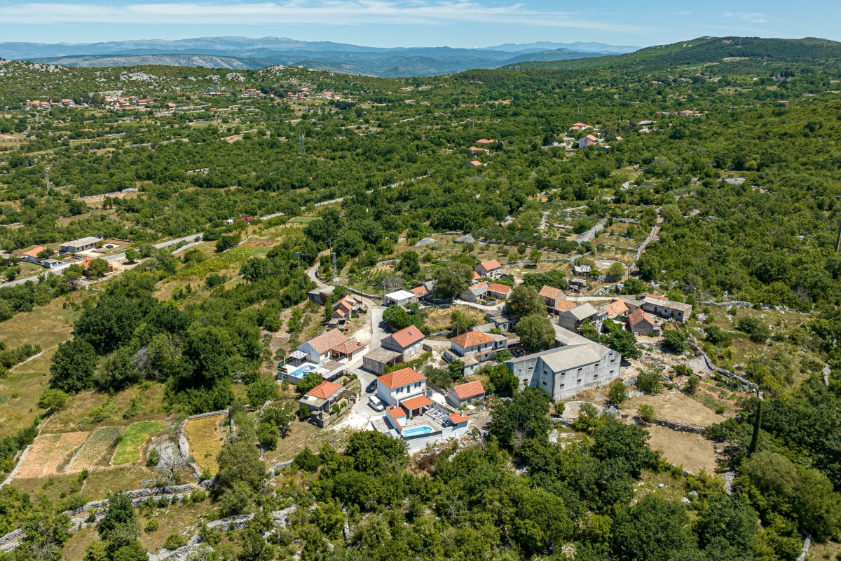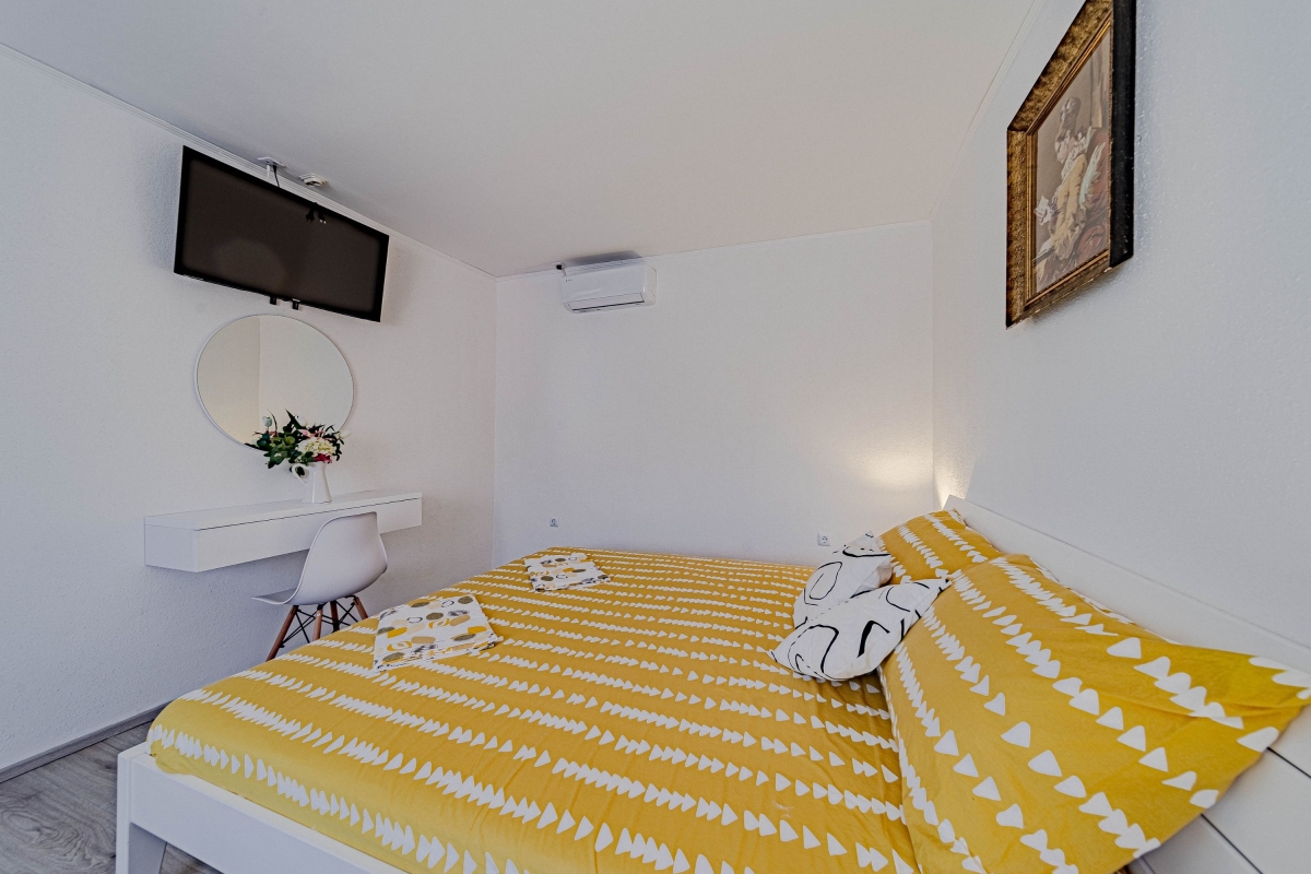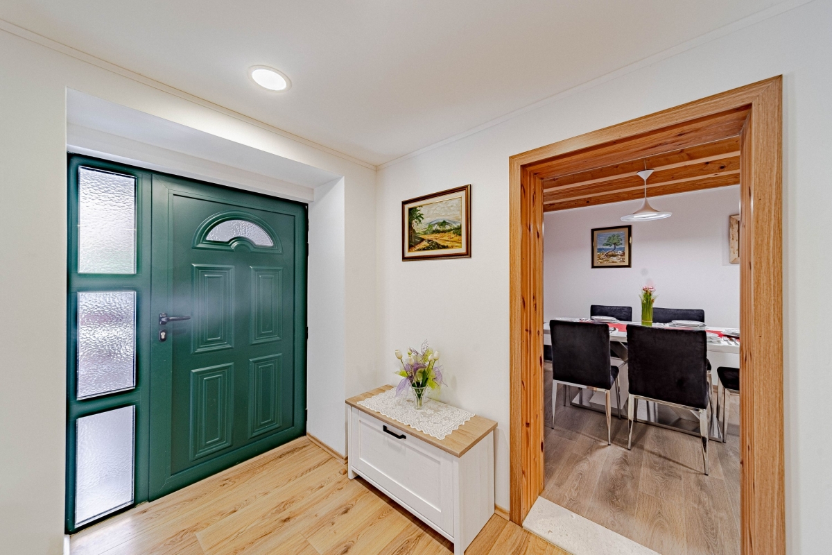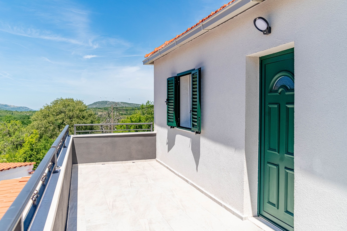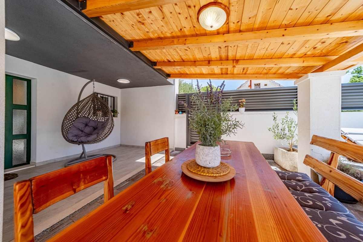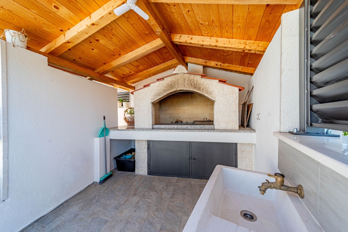 Wake up to the stunning mountain views at this magnificent apartment with a private pool and garden. Experience tranquility in this exquisite detached apartment, nestled in a lush green setting with breathtaking mountain views in Dalmatia. This air-conditioned modern villa has two bedrooms and a spacious living area across two elegantly designed floors, ideal for a group of 6. The contemporary architecture of this striking rental features warm wooden roofs that seamlessly blend with natural surroundings. As you enter, the well-arranged living room offers relaxation with its comfortable sofa, a table, a credenza and a flat-screen TV. A corridor leads you to the dining area with an open kitchen equipped with all the essentials, like a cooker hob, a coffee machine, an electric kettle, a dishwasher, a toaster, an oven, and a fridge with a freezer. Outside, guests can unwind on the sun loungers by the poolside or dip in the pool with sparkling water. The retreat also offers outside dining with a barbeque in the garden, making it perfect for a peaceful family holiday. Sleeping Bedroom 1: This bedroom enjoys outside views from the windows. It has a double bed and a single bed, a table, a chair, and a wardrobe. Bedroom 2: This bedroom is furnished with a double bed, single bed, and a wardrobe. Bathrooms Bathroom 1: The bathroom has modern fixtures and is equipped with a shower, a basin and a WC. Bathroom 2: This modern bathroom has a shower, a basin and a WC. Additional • Free WiFi • Private Parking (Car recommended) • Washing Machine • Pets not Allowed • Hair Dryer • Child-Friendly • Smoking not Allowed Please Note: Parking is in open space. Location Situated in the picturesque region of Dalmatia, Holiday Home Luce is surrounded by stunning natural beauty and rich cultural heritage. For local delicacies, restaurants are just a 5-minute drive away. Nature lovers will enjoy the Labrinska Draga hiking area, a short 12-minute drive from the apartment. For those keen to explore local attractions, Vilaja-Crni Vrh, Lokve na Blizni, Mujina Pecina, the natural history museum and Trogir Old Town are all within a 15-20-minute drive, offering a range of sights. If you’re in the mood for seaside fun, the marina and various beachside restaurants and bars are just 20 minutes away by car. The supermarket is a 20-minute drive from here, providing options for self-catering. You can also explore the local Belvedere Market, a 30-minute drive. Split International Airport is the closest, approximately 30 minutes away by car.