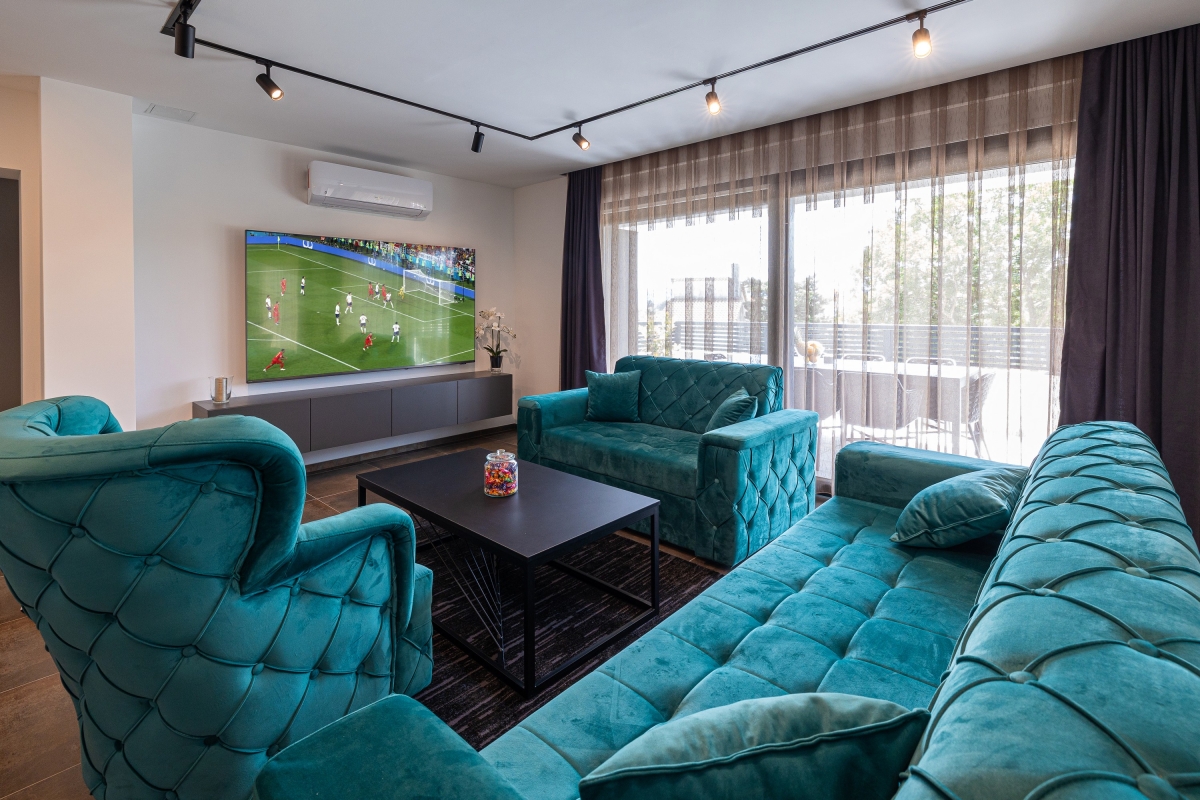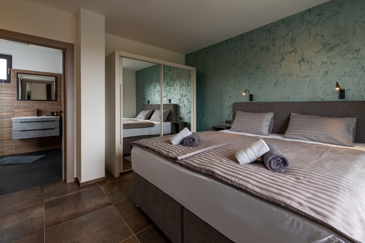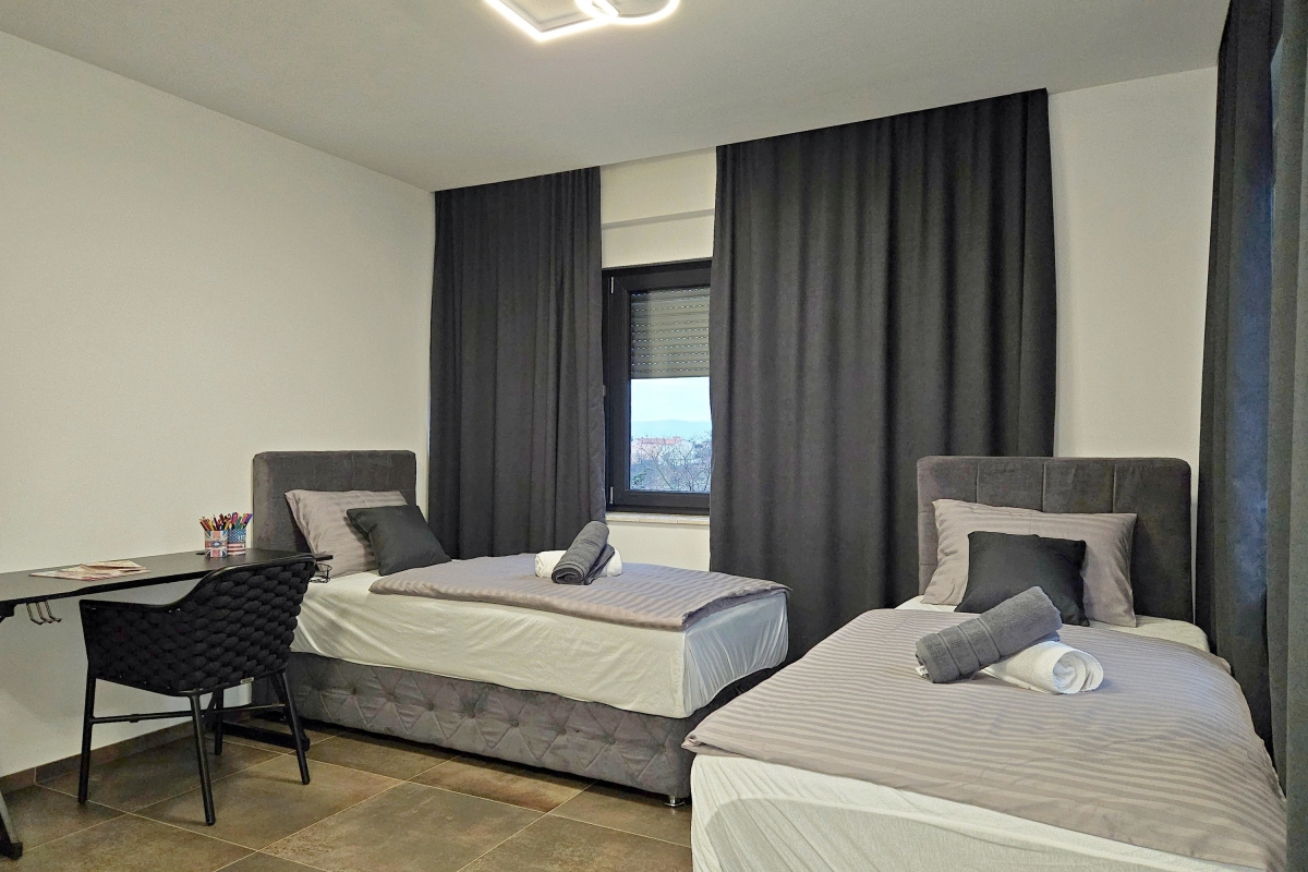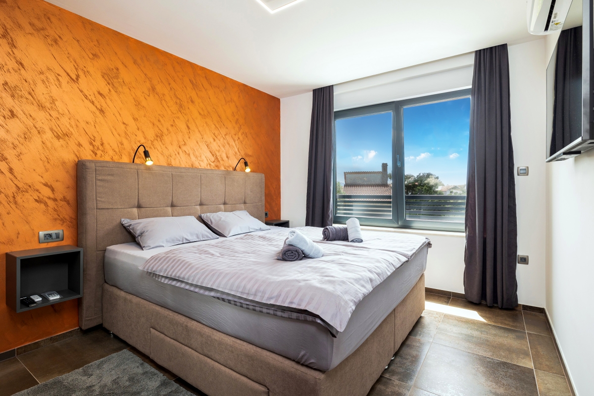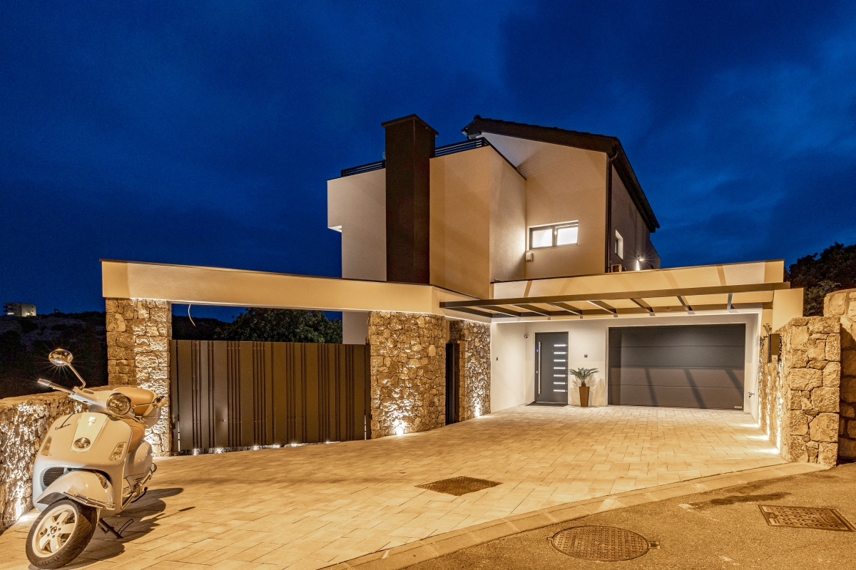 Discover unparalleled luxury just 5 minutes from the Adriatic coast at this 4-bedroom villa in Novi Vinodolski. Designed for relaxation and entertainment, this villa has it all. Relax in the private swimming pool, sauna, or jacuzzi. Enjoy the traditional konoba, a cosy spot to savour local wines and delicacies. Soak in the beautiful sea views from the private garden or terrace while sipping your morning coffee or watching the sunset. Step inside to find a seamless blend of comfort and elegance. The living area has a sofa, TV, and dining space. The kitchen features modern appliances to make meal preparation a breeze. Four bathrooms ensure privacy for all guests, while the second-floor playroom doubles as a fourth bedroom. Additionally, a gym and a children’s playground add to the luxury. With three dedicated parking spots and proximity to restaurants, shops, and beaches, this villa offers the perfect blend of luxury and convenience for a memorable vacation. Sleeping Bedroom 1: A bedroom with a king-size double bed and wardrobe. Bedroom 2: A bedroom with a king-size double bed, balcony, and wardrobe. Bedroom 3: A bedroom with a king-size double bed and wardrobe. Bedroom 4: A bedroom with 2 single beds Bathroom All 4 bathrooms feature a shower and WC. Additional• Private pool (open from 1st May to 15th October) • Jacuzzi • Gym • Private garden • Balcony • Terrace • Outside dining area • BBQ • Free Wi-Fi • Air conditioning • Fireplace • Private parking space • Garage • Smart TV • Washing machine • Full kitchen • Sea view • Pets allowed on request • Child-friendly Self-check-in: from 16:00 onwards Self-checkout: by 10:00 a.m. Please note that only one pet is allowed per booking, and an additional fee of €90 applies. Location This villa offers a prime location for exploring the stunning Adriatic coast. Guests can enjoy sunbathing and swimming in crystal-clear waters at the nearby beaches like Lopar Beach, Strand am Yachthafen, Island of St. Mark, and Cave Beach, just a 5-minute drive away. Dining out is a breeze, with several restaurants, bars, and cafes within a 5-minute drive. The lively city centre is just a 10-minute walk, where guests can explore shops, boutiques, and other local attractions. For an adventurous day out, guests can head to Adrenalin Park, just a 17-minute drive away. Head to Crikvenica Eye (a 16-minute drive) in the evening to spectate a picturesque view of Crikvenica Riveria. Nehaj Fortress, built in 1558, now converted into a museum and hosts an annual mediaeval festival, is just a 30-minute drive. The nearest airport is Rijeka International Airport, a 30-minute drive away.