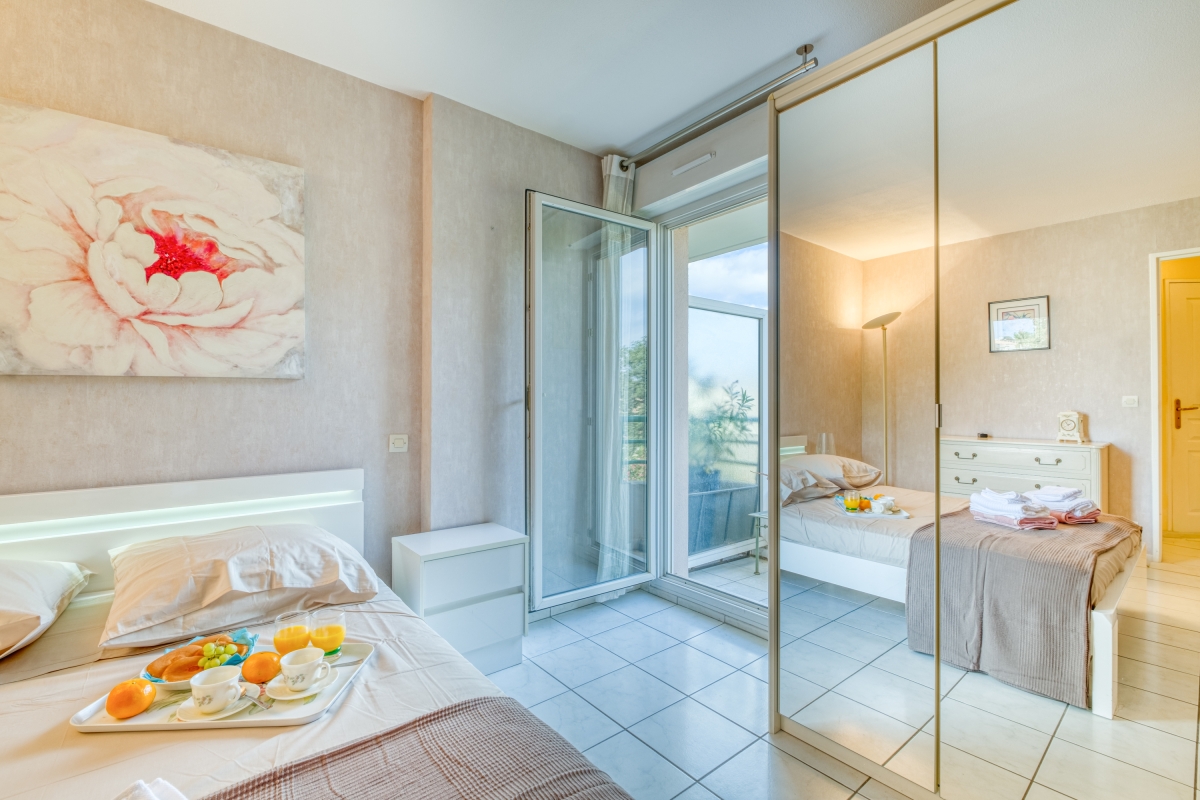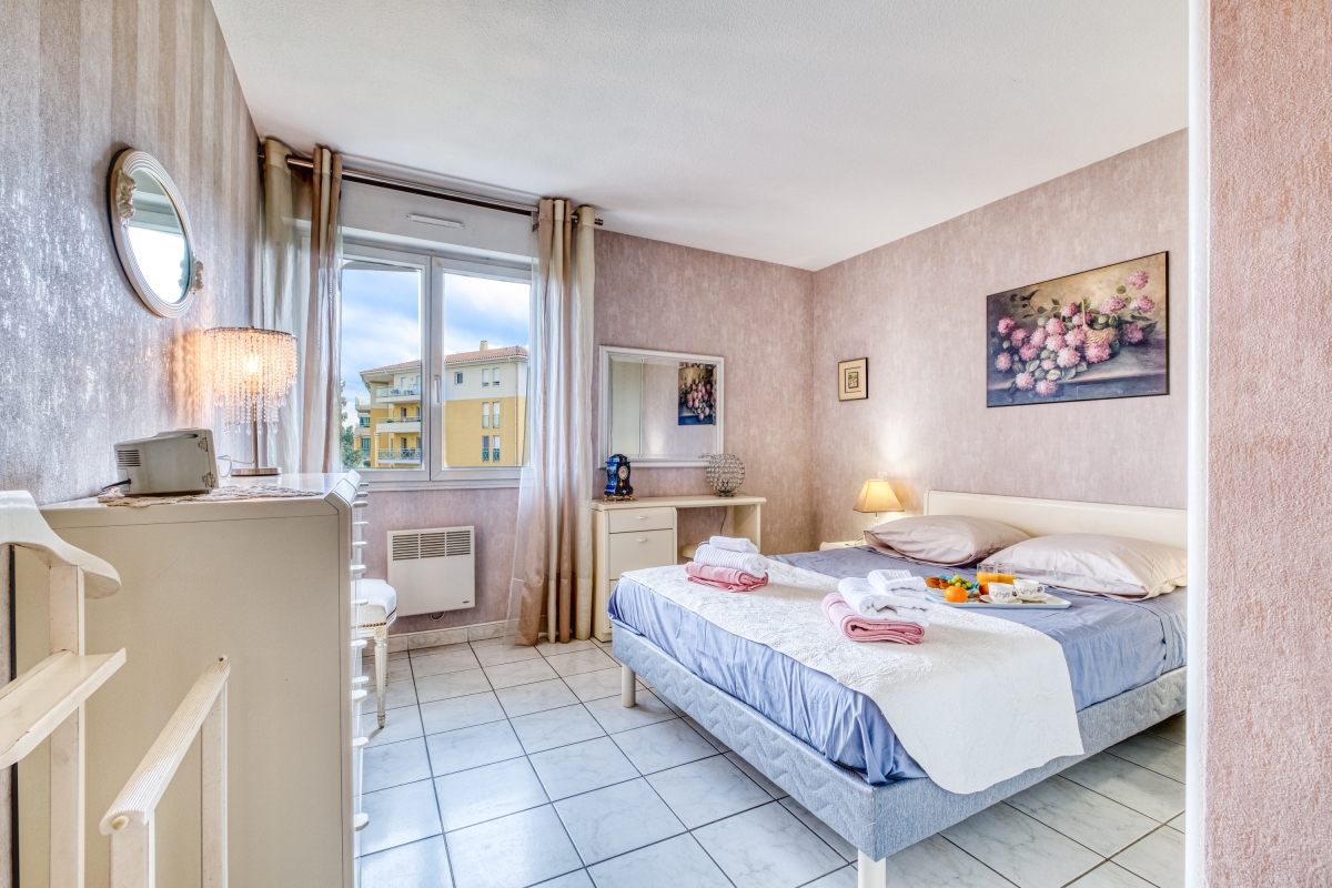 Soak up the glamour of the Côte d’Azur in this stylish, contemporary apartment just 5 minutes from the beach! On the 2nd floor (with lift) of a modern residence, the apartment sleeps 4 people and makes an ideal base for exploring the coast from St Tropez to Cannes and beyond. The spacious apartment is in a quiet area of St Raphael and has a private balcony, with a BBQ, table and chairs so guests can dine al fresco and enjoy their sunny surroundings. Inside, the owners have taken every care that their guests will have a comfortable stay. The airy, open-plan sitting room has 2 sofas, a large flat-screen TV and a separate dining area. All tastefully decorated with a combination of modern and antique furniture. The immaculate fitted kitchen is well-equipped with an induction hob, microwave, oven, dishwasher, Nespresso machine and fridge/freezer. There is also another dining table and chairs for quick snacks. A glass door leads out onto the balcony. Sleeping Bedroom 1: The master bedroom has a double bed, a large wardrobe and a dressing table. It has an en suite bathroom. Bedroom 2: The second bedroom is furnished with a double bed and a wardrobe Crib available on request (to avoid choking risks we do not provide sheets or pillows for the crib). Bathrooms Bathroom 1: En suite to the master bedroom this bathroom is equipped with a bath and basin. Bathroom 2: This attractive bathroom has a glass shower, basin and WC. Additional • Free wifi • Fans • Outdoor dining • BBQ • Digital TV • Hair dryer • Washing machine/tumble dryer • Smoke detector • Private parking space but car not necessary Location Just 15 minutes from the coast, in a quiet area, this apartment enjoys a sunny position and good access to everything St Raphael has to offer. The town centre is just a 5-minute drive. It is best known for its famous port and cultural events. There are regular ferries from the port to the exclusive town of St Tropez (1 hour voyage) or you can explore the islands off the coast including Ile de Porquerolles and Ile Sainte-Marguerite which make great day trips. Les Bateaux Bleus depart from the Quai Amiral Nomy (7 minutes). Back on land, there is plenty for visitors to enjoy in the town. It is known for its beaches, which vary from rocky coves such as the Plage du Fournas (10 minutes) to Fréjus Plage (5 minutes), a long stretch of sandy beach with umbrellas and loungers for rent. The seafront promenade is packed with cafés and restaurants and it is a short walk to the Vieux Port. Self-catering in St Raphael is a pleasure as there are 2 daily markets (mornings only) where you can find the best local ingredients. Marché Victor Hugo (5 minutes) and the market in Place de la République (4 minutes). There is also a fish market in the Old Port every morning. Alternatively, there are several supermarkets within 5 minutes of the apartment. Nice airport is 45 minutes to the east and Marseilles airport is 1 hour 35 minutes to the west. If you are arriving by train Saint-Raphael station is a 5-minute taxi ride from the property.