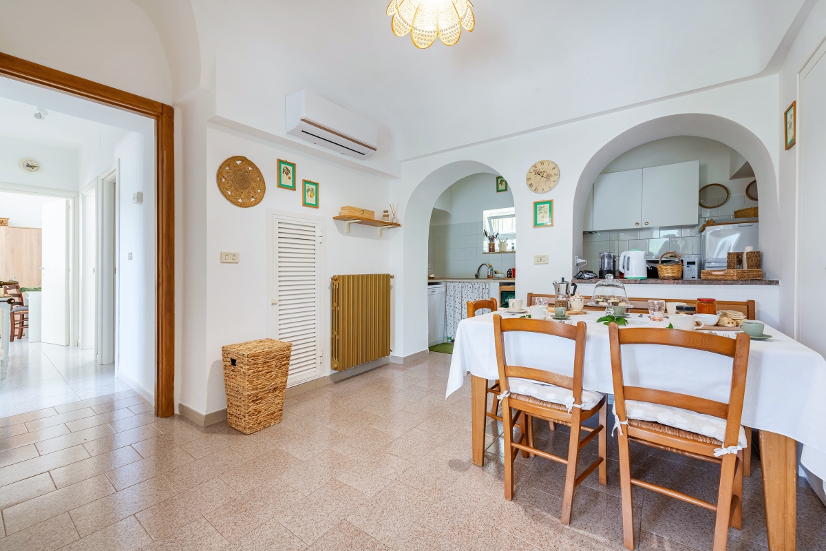 Casa Minarè is a villa complex set in one of the most beautiful landscapes in Apulia: Selva di Fasano. Ideal at any time, thanks to the warm climate and the multitude of events and festivals that take place throughout the year. Casa Minarè is divided into two parts: the first part is reserved for guests and the second for the owners. The house sleeps 5 people and would suit family or friends who want to explore this stunning region. The owners have invested as much care and attention in the outdoor space as they have in the interiors. Outside there is a shaded wooden loggia with a dining table and chairs, as well as a stone BBQ. This is perfect for meals al fresco and has gorgeous views of the neighbouring wooded hills. The extensive terrace is furnished with deck chairs where guests can relax and enjoy the well-tended garden. The house has been carefully refurbished with everything guests might need for a comfortable holiday. The spacious living area combines the seating area with a sofa opposite the open fireplace and a flat-screen TV. The dining table for 6 is next to the semi-open kitchen, which is separated from the main space by attractive arches. The kitchen is well-equipped with a cooker hob, oven, microwave, dishwasher, fridge/freezer and both Nespresso and Moka coffee machines. Sleeping Bedroom 1: The sunny master bedroom has a double bed, an antique mirrored wardrobe, drawers, a desk and a Smart TV. Bedroom 2: This bright second bedroom, has a single bed and a pull-out single bed with a hanging rail and desk. Bedroom 3: The third bedroom is furnished with a double sofa bed and a wardrobe. Bathroom The spacious bathroom has a shower, stylish basin, bidet and WC. Additional • Free Wifi • Outside dining area • BBQ • Outside seating & terrace • Air conditioning • Electric radiators • Fireplace • Very child friendly • Private, fenced garden • CO detector • Hair dryer • Private parking space, car recommended • Very pet friendly • Outside kennel available • Check in from 4pm to 10pm. Check out by 10am • Bicycles & beach boards available for rental Location Although this property is set in quiet countryside, there is plenty to do and see close by. It is just 20 minutes from the beautiful beaches of Marina di Fasano, Savelletri. This stretch of coast is known for its fine white sand and clear seas. The town of Monopoli (30 minutes drive) is packed with things to see and do. Founded around 500 BC, Monopoli’s long history is there to see in its winding streets and medieval harbour. Tuesday is market day (closes 1pm), so head to Piazza Falcone e Borsellino to enjoy the freshest local produce and get inspired to cook at home. Inland is the stunning town of Alberobello (20 minutes) which is a UNESCO World Heritage Site. The town is famous for its Trulli as well as some of the finest food in Puglia. Alberobello’s vibrant, weekly market (Thursday morning from 7.30 am) is another excellent place to pick up the best local ingredients. For children (and adults) in search of excitement, there is the Aquapark Egnazia (25 minutes) with a variety of rides. For golfers, San Domenico Golf Club is just next door (23 minutes). Also close by, the excavations of the Roman city of Egnazia (25 minutes) make a fascinating day out for all ages. The museum on site includes finds from the Bronze Age to ancient Rome. The closest airports are at Bari, a 1-hour drive, and Aeroporto del Salento, Brindisi, which is just 50 minutes from the house.