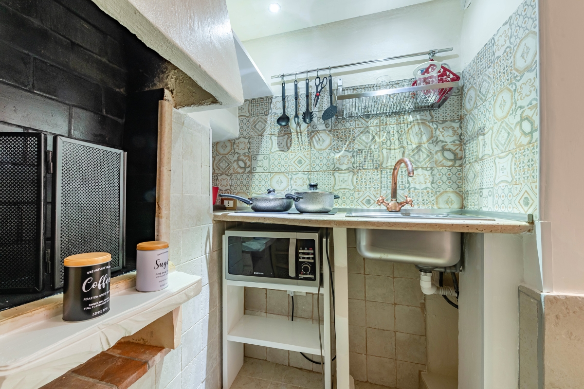 Escape to the white-washed streets of Ostuni at Casa Di Eli. Casa Di Eli is a charming apartment located in the picturesque town of Ostuni. Accommodating up to 4 guests with its inviting layout, this apartment features 1 bedroom and 1 bathroom, making it perfect for couples or small families seeking a peaceful getaway. The entrance opens to a quaint dining area and leads to the living room with a double sofa bed, wardrobe, and air conditioning. The kitchenette has essential appliances such as a coffee machine, electric kettle, microwave, fridge, and induction hob. Additional amenities include free Wi-Fi and a Smart TV for entertainment. Sleeping Bedroom 1: The bedroom features a cosy double bed. Extra: The living room includes a double sofa bed. Bathroom The bathroom is equipped with a bidet, shower, and WC. Additional • Child Friendly • Fireplace • In Town • Modern • Smart TV • Washing Machine • Hair Dryer • Free Wi-Fi • Pets allowed on request - Public parking Location Ostuni is known for its whitewashed houses and historical attractions. This apartment offers easy access to attractions like Ostuni Cathedral and the historic old town only a 10-minute stroll from the apartment. Other noteworthy sites, such as the Museum of Preclassic Civilizations and Chiesa di San Francesco d’Assisi are located at a 12-minute walk. The Adriatic shore can be reached within a 15-minute drive, perfect for exploring beaches like Torre Pozzelle Beach, Monticelli Beach and Costa Merlata Beach. The nearest airport is Brindisi Airport, approximately a 30-minute drive from the property.