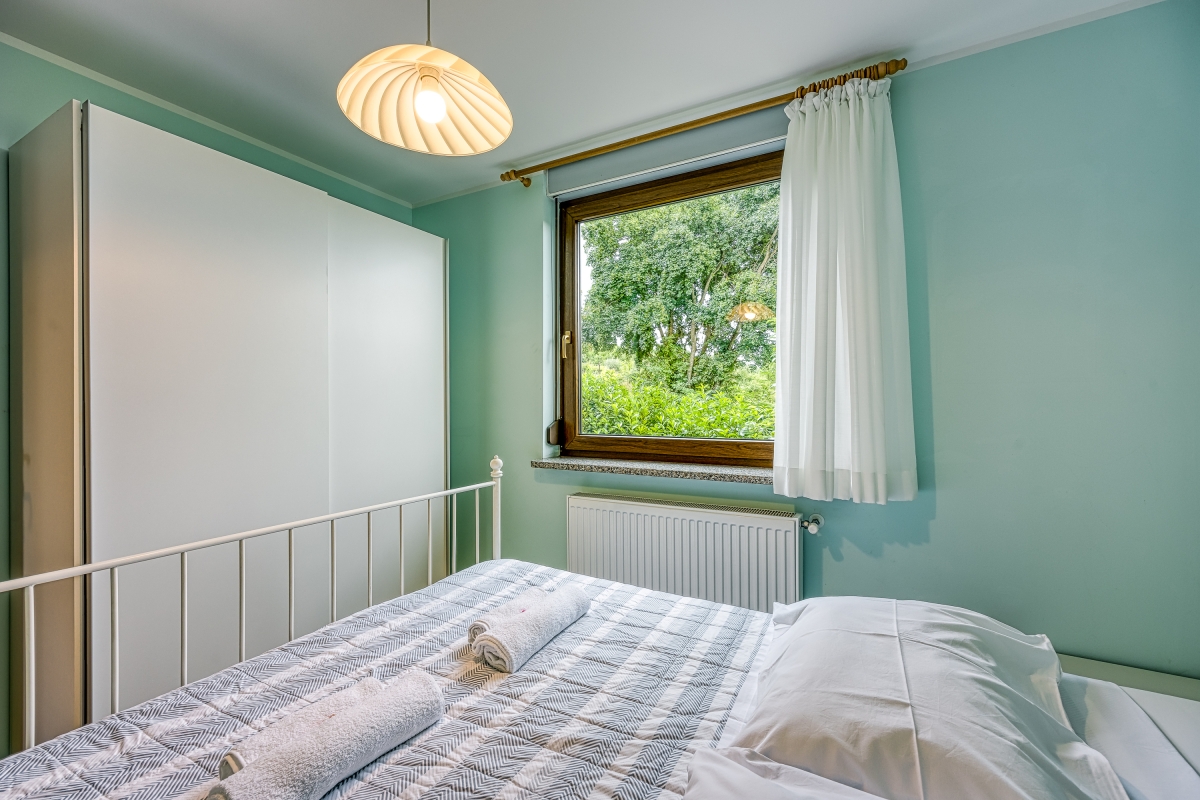Situated on the first floor of a three-level building, the apartment provides a cosy and inviting atmosphere, ideal for a relaxing getaway. The open-plan living area includes a sofa , a dining area for 4 and a kitchen. The well-equipped kitchen includes a cooker hob, electric kettle, oven, toaster, and fridge. Modern amenities such as Wi-Fi, a TV, and air conditioning ensure a comfortable stay. Both bedrooms are bright and spacious making comfortable sleeping quarters.