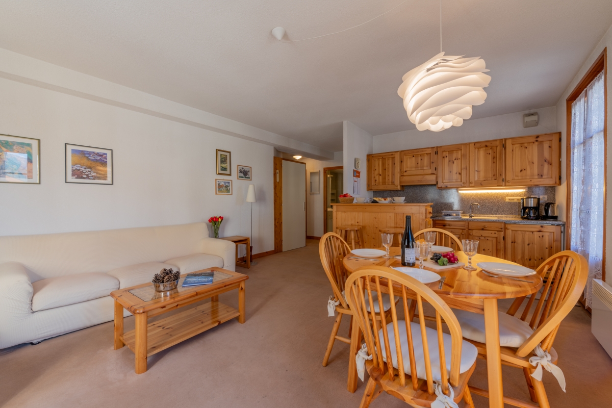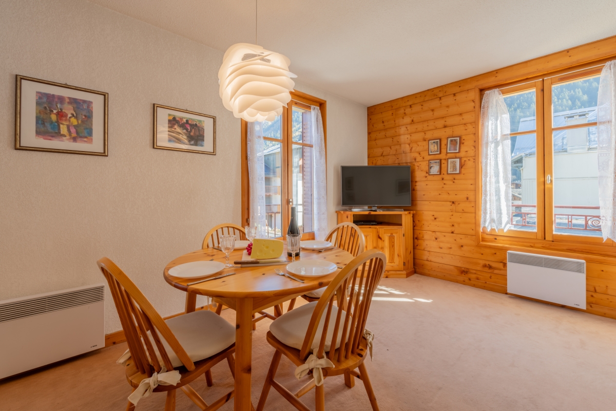 Enjoy everything that Chamonix has to offer in the Apartement de l’Aiguille du Midi! On the 2nd floor of a traditional residence, in the heart of Chamonix, this apartment makes a great base at any time of year. The apartment, which sleeps 4 people is full of light thanks large windows and glass doors opening onto small balconies. The decor has local Savoyard touches, with an open-plan living area, furnished with an attractive sofa and armchair, plus a flat screen TV. There is pine dining table and chairs next to the kitchenette, which is well equipped with an induction hob, microwave, fridge and an american style coffee machine. Sleeping Bedroom 1: The charming master bedroom has a small balcony overlooking the street. There is a comfortable double bed and a wardrobe. Bedroom 2: The second bedroom has a bunk bed with a table and chairs. Bathroom The tiled bathroom has a full bath with a bidet, basin and WC. Additional • Balcony • Flat-screen TV & DVD player • Hair dryer • Electric radiators • Smoke detector • Washing machine • Ski storage • Near ski shuttle bus & ski lift • Close to skiing • Free public parking - car not necessary Location The apartment is in the heart of Chamonix, on the Rue de l’Aiguille du Midi, with many bistrots, bars and clubs within easy reach. In the winter season there is good access to the slopes, as l’Aiguille du Midi Cable Car station is less than a 1 minute walk from the building. The slopes are suitable for skiers and snowboarders of all levels. In the summer months, the high mountain meadows and hiking trails are easy to reach for hiking or mountain biking. There is also white water rafting, rock climbing, golf and horse riding nearby. For self-catering, try Chamonix’s weekly market (Saturday mornings) in Place du Mont-Blanc, a 10 minute walk away. Here you will find the best local ingredients and famous Savoyard cheeses to enjoy at home. Geneva airport is a 1 hour, 20 minutes drive from the apartment. Whilst Chamonix Aiguille du Midi railway station is just a 3 minute walk.