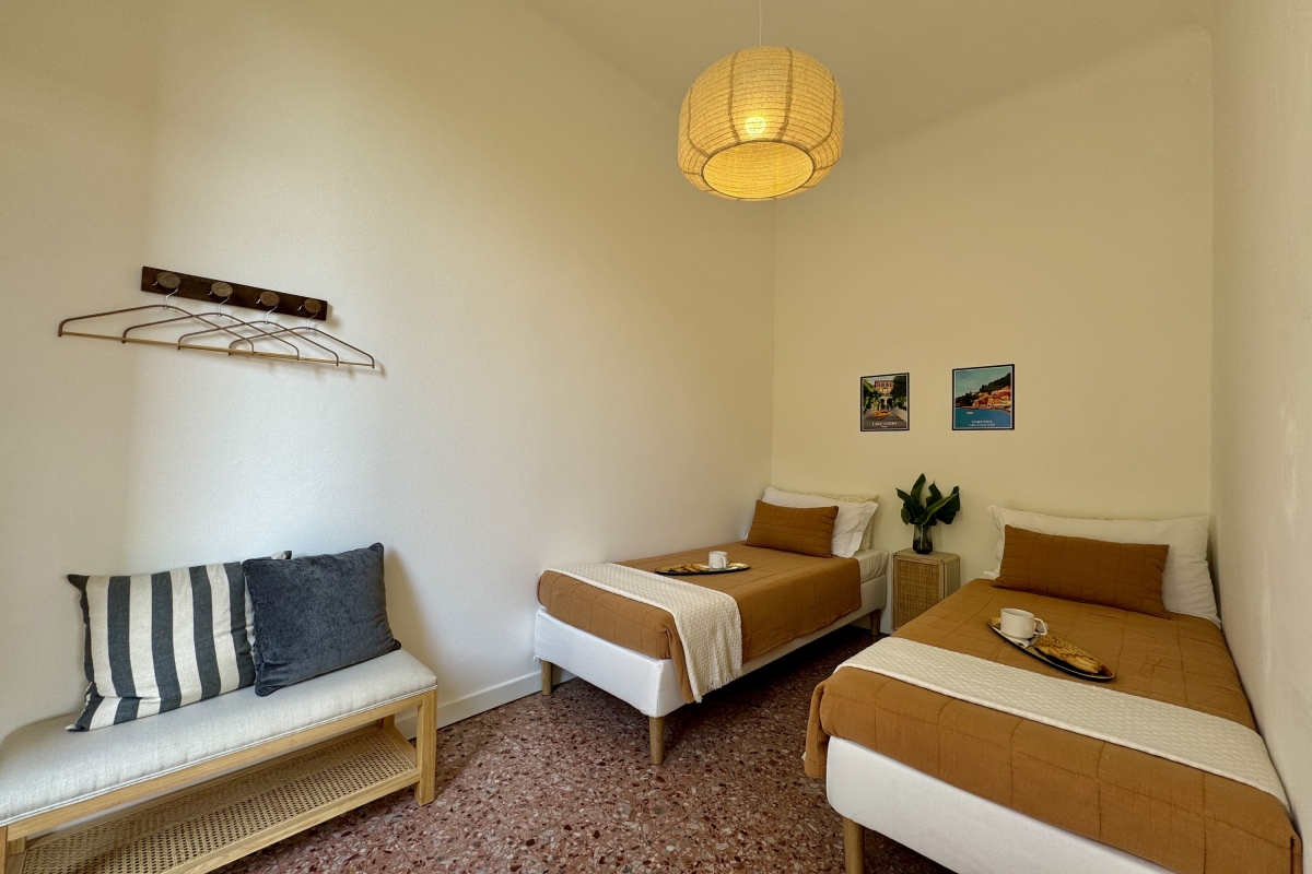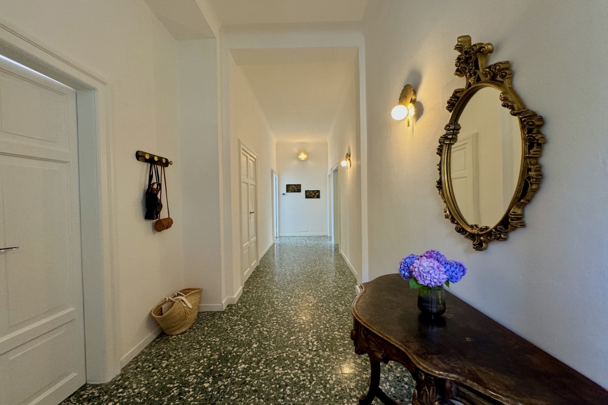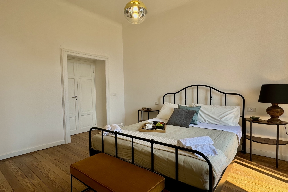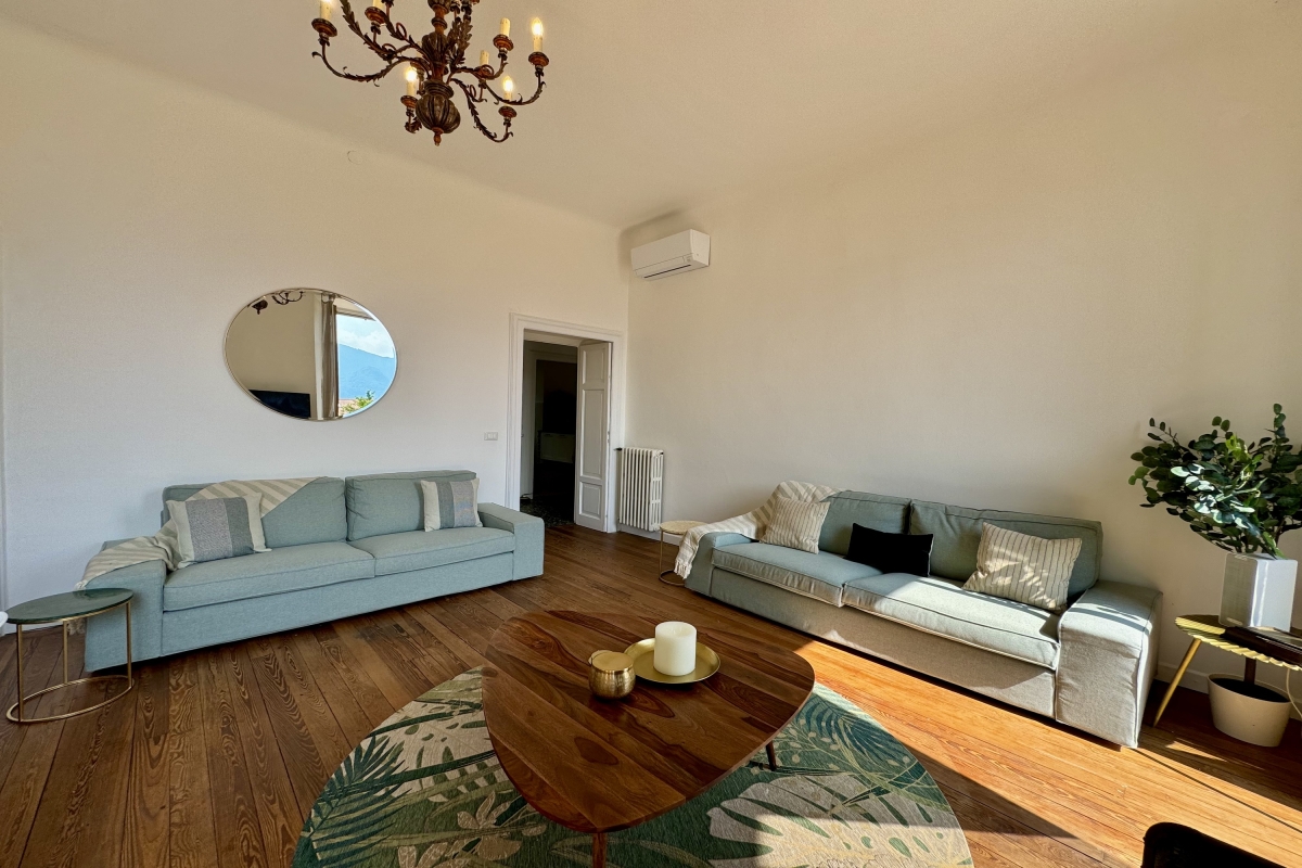 Enjoy “la dolce vita” in this stunning apartment just 3 minutes from the shores of Lake Como. On the ground floor of a charming condominium, with wonderful lake views, this is an apartment for 8 and makes the perfect holiday home from home for families or friends. The interiors are elegantly contemporary, with stylish furniture throughout. The living/dining room has beautiful high ceilings and two French windows that open directly onto the large terrace. The room is furnished with 2 sofas, a flat-screen TV and a dining table and chairs. The spacious modern kitchen, which is across the hallway from the dining area, is very well-equipped with a cooker hob, oven, microwave, dishwasher, fridge, freezer and coffee machine. There is also a small table and stools for quick snacks on the go. Outside the living room is the private terrace with the original stone balustrade and stunning across Lake Como to the mountains beyond. The terrace is furnished with a café-style table and chairs shaded by a large parasol. An elegant flight of stone stairs leads from the terrace down to the well-tended shared garden. Sleeping The villa has 4 stylish bedrooms in total. Two of these are furnished with double beds and have storage for guests’ clothes and belongings. These rooms both overlook the lake. The other 2 bedrooms have 2 single beds in each. Bathrooms The spacious modern bathroom has a full bath with shower, basin, bidet and WC There is a 2nd bathroom with a WC and basin. Additional • Terrace • Outside seating • BBQ • Shared garden • Free wifi • Air conditioning • Central heating • Hair dryer • Washing machine • Smoke & Co detectors • Fire extinguisher • Child friendly • Garage parking – car not necessary - Pets not allowed Location The apartment is tucked away up 80 steps in a quiet part of Menaggio. It is within walking distance from several good restaurants as well as shops and the town’s beaches. Guests can take a ferry from Menaggio’s port (3-minute walk) to Varenna or on to Bellagio and spend a day in these famously beautiful towns. For visitors who are looking for more excitement, there is Lake Como Adventures (40-minute drive), for a wide range of activities including climbing, canyoning, hiking and skiing in the winter months. In addition, guests can try sailing at Nobiallo (6-minute drive) or golf at Golf Club Menaggio Cadenabbia (10-minute drive) If the delicious local restaurants and cafés inspire you to try your hand in the kitchen, the local farmers market in Via Stoppani (7-minute walk) takes place in the morning on the 2nd and 4th Friday of the month. Here you will find an abundance of local fresh fruit and vegetables, cold cuts and artisanal cheeses. Alternatively there is a supermarket 3 minutes away. Milan’s international Linate airport is a 1 hour 40-minute drive from the apartment and Milan Malpensa airport 1 hour and 25 minutes away.