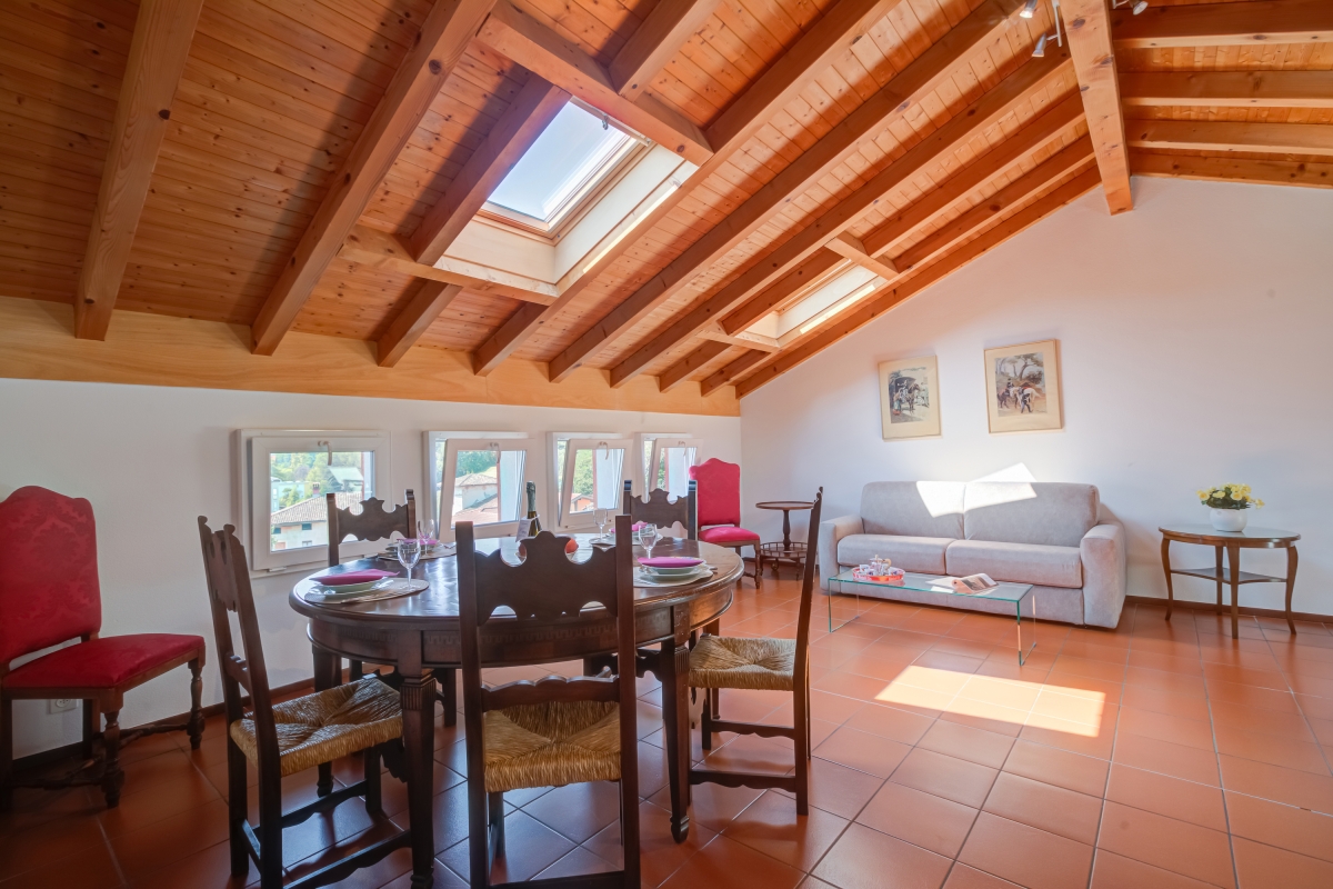 Relax and unwind in the relaxed Mediterranean atmosphere of Caslano, a 5-minute drive from the Italian border and discover its unique blend of Swiss culture and Italian flair. This holiday home is situated on the top floor of a small 4-story apartment building (with a lift) and provides a bright and spacious holiday escape for up to 4 guests. With high wood-beamed ceilings and a terracotta tiled floor, the property enjoys a characterful rustic style. With plenty of picture windows and skylights, each room is filled with natural light and enjoys views of both mountains and the lake. The main open-plan living space is furnished with a comfortable sofa bed, a flat-screen TV, a dining table and plenty of chairs. The separate kitchen is fitted with; a cooker hob, an oven, a microwave, a coffee machine, a dishwasher and a fridge freezer. Sleeping Bedroom 1: The bedroom is furnished with a double bed and a wardrobe. Extra: There is a double sofa bed in the living room Bathroom Bathroom 1: The modern bathroom is fitted with a shower in the bath, a bidet, a washbasin and a WC. Additional • Lake View • Mountain View • Portable Wi-Fi Device • Central Heating • Car not necessary • Private Parking • Suitable for Elderly • Smoking Prohibited Location The property is located on the outskirts of Caslano a picturesque village in the south of Switzerland near the Italian border. Caslano sits on a small peninsula on the western shore of Lake Lugano and is known for its relaxed Mediterranean atmosphere that blends of Swiss precision with Italian flair. The village's lakeside location makes it a great place for swimming, boating, paddleboarding and fishing. It is also home to the Golf Club Lugano (a 9-minute walk/2-minute drive), one of the oldest golf courses in Switzerland. The ferry terminal and is a 15-minute walk / 4-minute drive away and the closest beach - Lido di Caslano a 20-minute walk / 3-minute drive away. The heart of the lively and historic city of Lugano is a 20-minute drive away making this a convenient base for exploring a wider range of culture, history, shopping and dining options from the tranquillity of this pretty village. There are several restaurants between a 5/10-minute walk away and the closest supermarket is a 1-minute walk away. Casalano Train station is a 4-minute walk away and the closest international airport, Milan Malpensa Airport (MAL) in Italy, is approximately an hour's drive away.