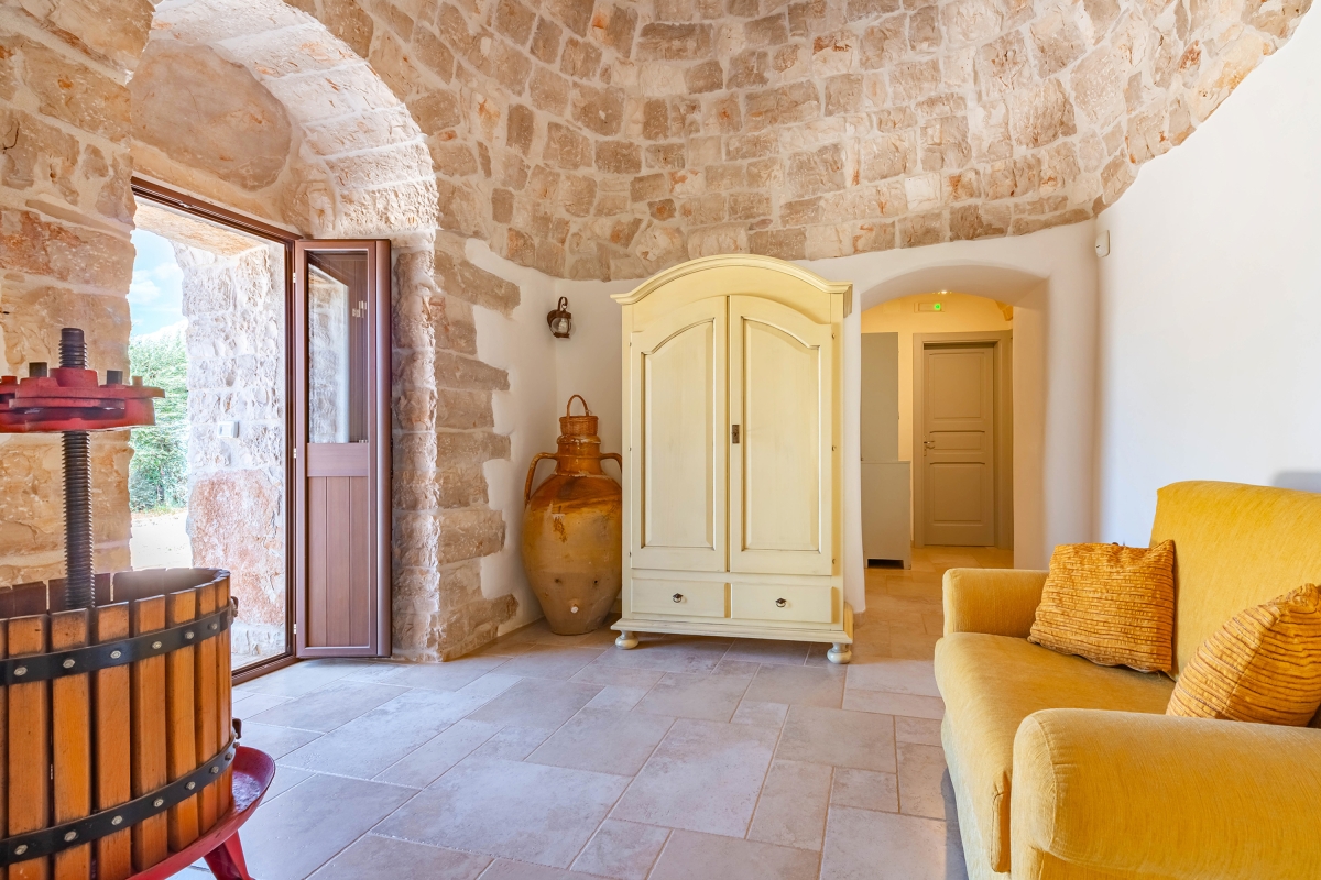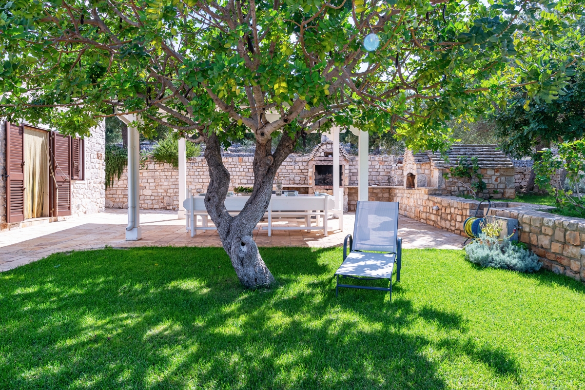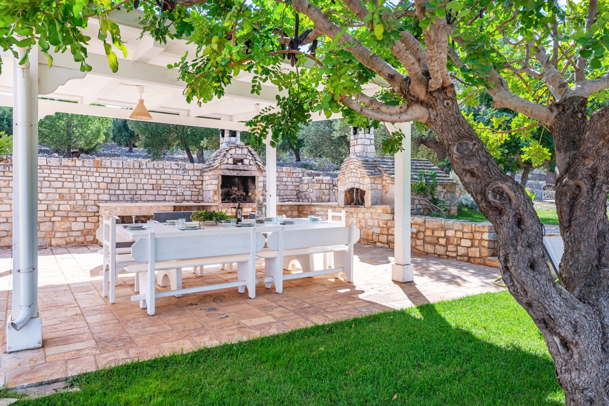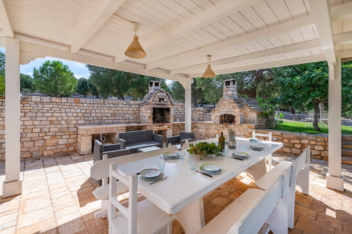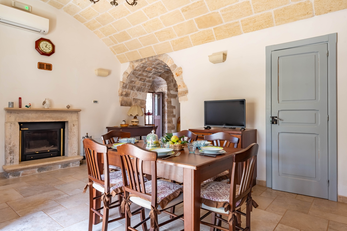 Experience a peaceful vacation in the peaceful town of Fasano in this 3-bedroom trullo. This charming property can accommodate up to 8 guests. The open living room has a sofa, TV and fireplace. Adjacent to the living area is a kitchen-diner equipped with a coffee machine, dishwasher, oven, and fridge, perfect for preparing meals. Free Wi-Fi connectivity ensures entertainment. Step outside in a private garden featuring an outdoor dining area, BBQ facilities, and a terrace, ideal for enjoying the beautiful Italian weather. Surrounded by lush greenery and modern comforts this trullo is perfect for a tranquil escape. Sleeping Arrangements Bedroom 1: Features a king-size double bed, a wardrobe, and access to a private terrace. Bedroom 2: Features a king-size double bed, a wardrobe, and a terrace. Bedroom 3: Features a double bed, a wardrobe, and access to a terrace. Living Room: The living room has a double sofa bed. Bathroom Details Bathroom 1: This bathroom has a bidet, shower, and WC. Bathroom 2: This bathroom has a bidet, shower, and WC. Additional Amenities • Wifi - BBQ • Child Friendly • Fireplace • Private Garden • Among Greenery • On Hillside • Private Parking Space • TV • Terrace • Washing Machine • Hair Dryer • Outside Dining Area • Outside Table-Chairs • Family Friendly • Smart TV • Fire extinguisher• Car Recommended - Electric radiators Location Fasano is home to stunning beaches and beautiful lakes, offering a perfect blend of relaxation and adventure. The Zoosafari Fasanolandia, a drive-through animal park safari is just a 2-minute drive or a 10-minute walk from this apartment. For lazy beach days, guests can visit Spiaggia di Torre Canne or Spiagge di Savelletri within a 20-minute drive. The UNESCO world heritage site, famous for its trulli, Alberobello is a 30-minute drive from this property. The neighbourhood has various restaurants, cafes and bars easily reached within a 10-minute drive. Public transport options are available, making it easy to explore the surrounding areas. The nearest airport, Bari International Airport-Karol Wojtyla is approximately a 50-minute drive away, providing convenient access for travelers.