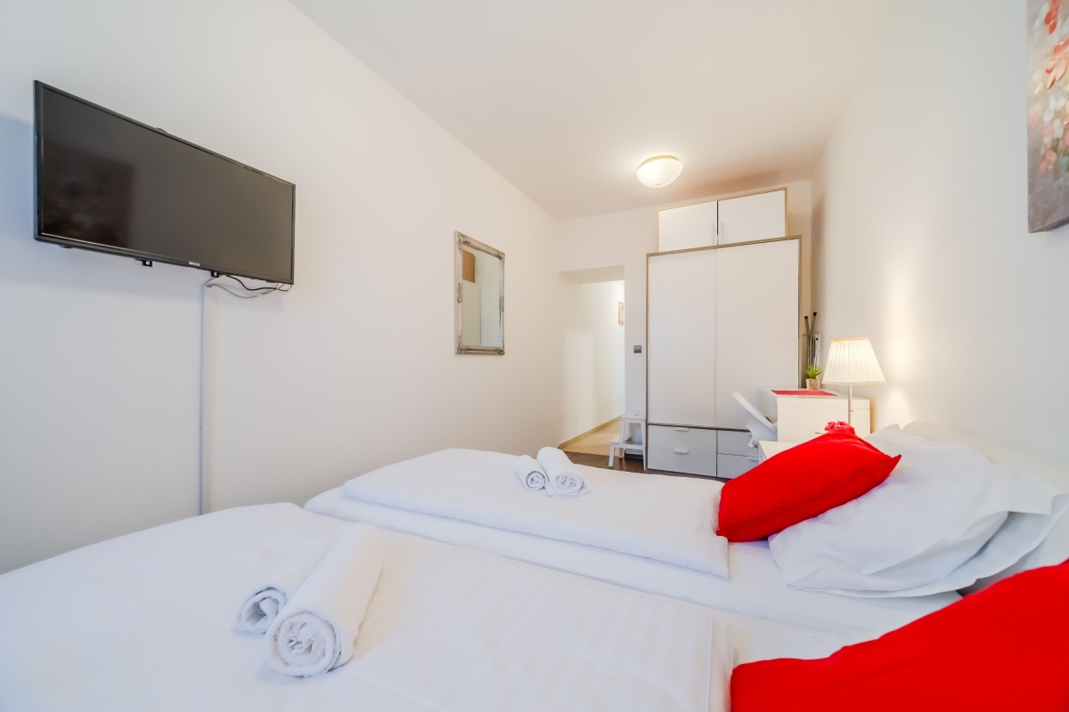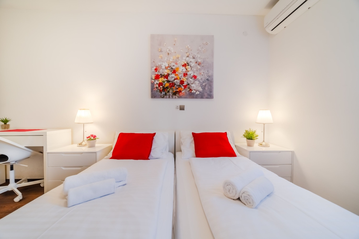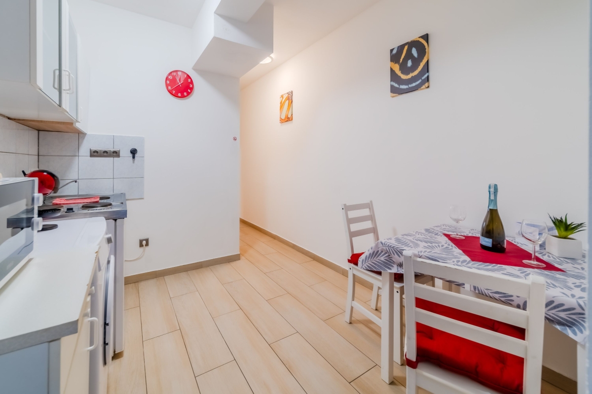 Enjoy the best of Zagreb’s beauty at this cosy studio located in the centre of the city! The studio has an open-plan kitchenette equipped with a cooker hob, electric kettle, microwave and fridge. There is also a dining table for two as well as two chairs. For added comfort, a separate sleeping area with a TV and wardrobe features two single beds. This air-conditioned apartment is located in the vibrant city centre, offering easy access to Zagreb’s famous attractions, with numerous restaurants, cafes, and transportation options within walking distance. It also has toasty underfloor heating, making it the perfect year-round choice. The apartment is ideally equipped to accommodate digital nomads and guests working remotely, featuring a laptop-friendly workspace and free Wi-Fi facilities. Sleeping The sleeping area, separated from the main living space, is furnished with two single beds. Bathroom A modern bathroom with a shower and WC. Additional • Free Wi-Fi • Air Conditioning • Underfloor Heating • TV • Workspace • Kitchenette • Suitable Elderly • Child-friendly Self-check-in: from 16:00 onwards Self-checkout: by 10:00 a.m. Location This property is within walking distance from the 19th-century Lower Town (Donji Grad) and the medieval Upper Town (Gornji Grad). Guests can easily explore famous attractions like St. Mark's Church with its colourful tiled roof, Lotrščak Tower, Zagreb Cathedral and the unique Museum of Broken Relationships within 5-10 minutes. Nature enthusiasts can enjoy Maksimir Park, the oldest public park in Zagreb, just a 10-minute drive away. The park offers serene lakes, walking paths, and a zoo. Bundek Lake, a 15-minute drive, offers a perfect place for relaxation and outdoor activities, with well-maintained parks, playgrounds, and walking trails. The medieval Medvedgrad Fortress, located on the southern slopes of Medvednica Mountain, is a 20-minute drive away and offers panoramic city views and hiking trails. Explore the charming town of Samobor, known for its medieval architecture, cobblestone streets, and the picturesque Gradna River within a 30-minute drive from the property. The nearest airport is Franjo Tuđman Airport (ZAG), a 20-minute drive from the accommodation.