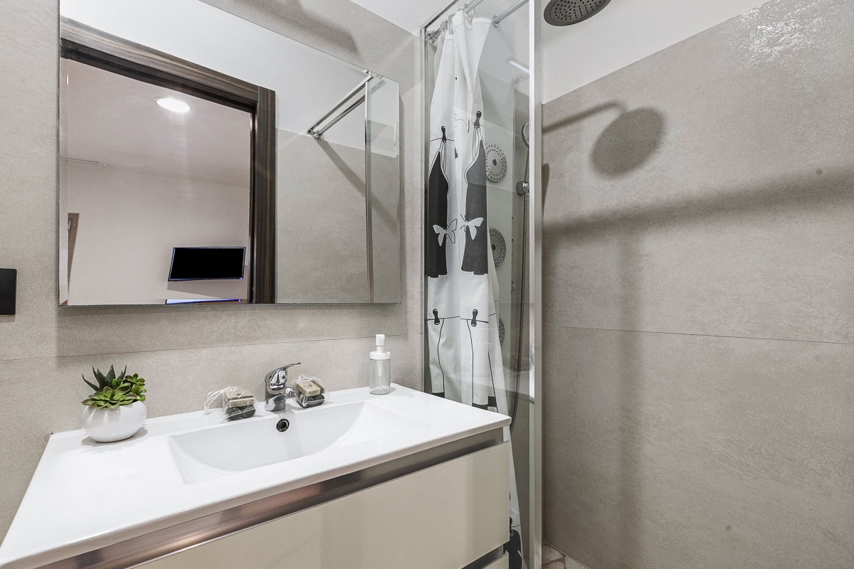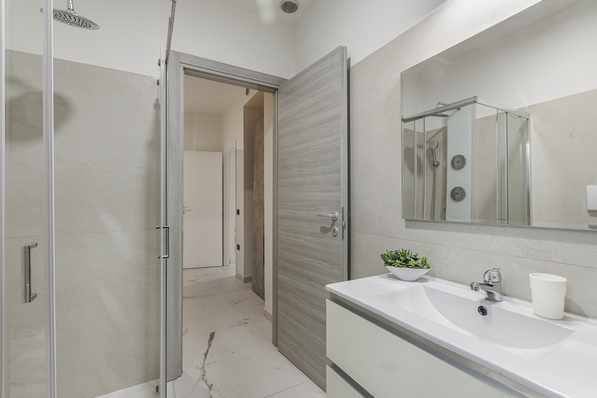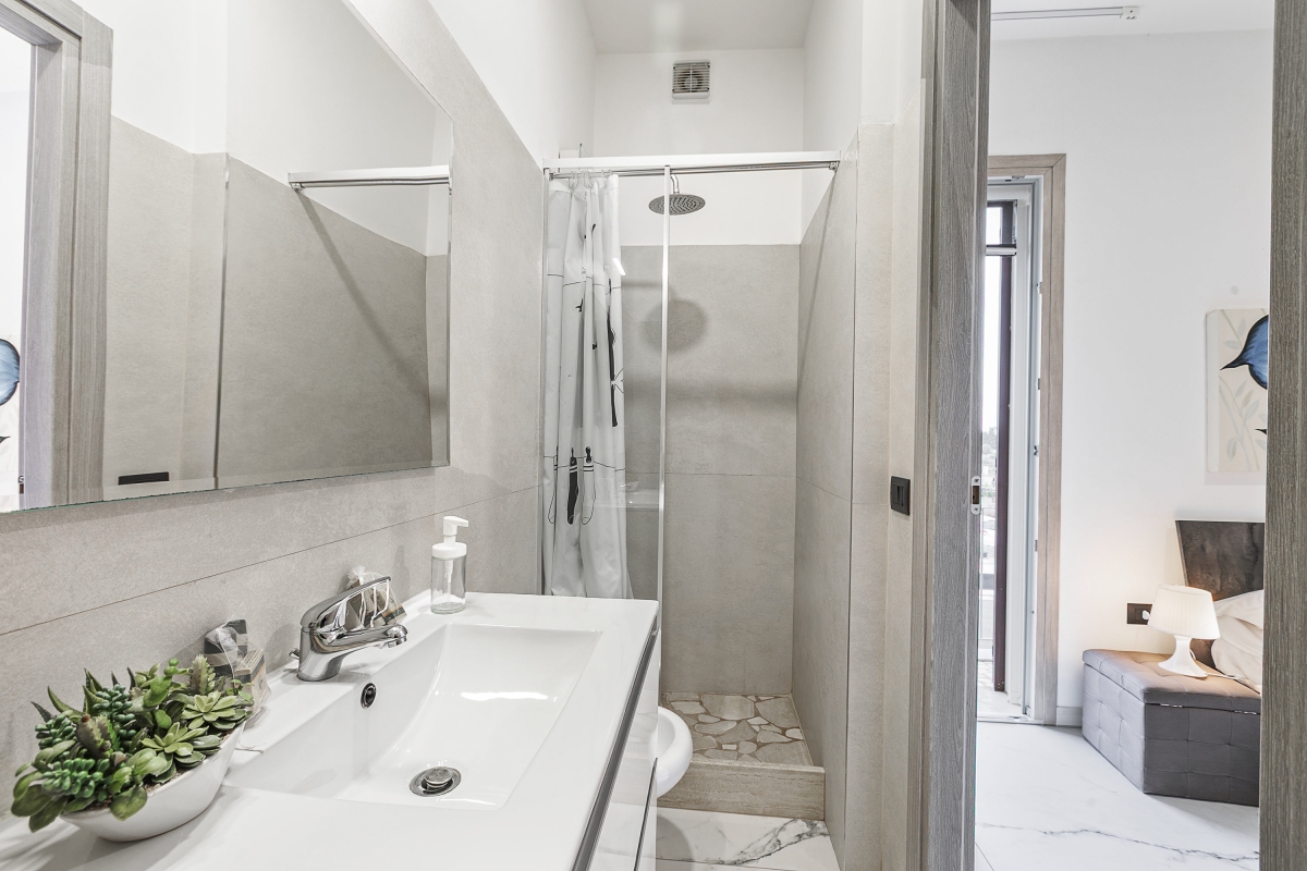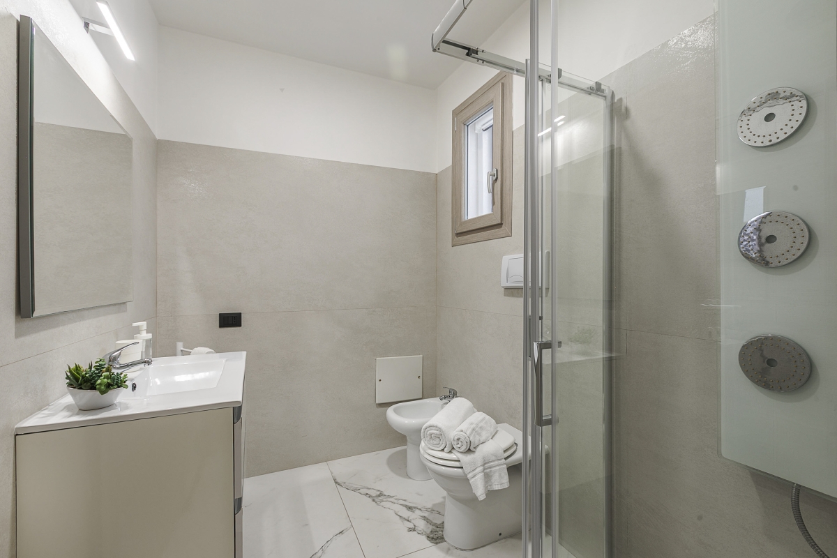 The apartment has 3 modern, en suite bathrooms. Each is appointed with a shower, basin, bidet and WC