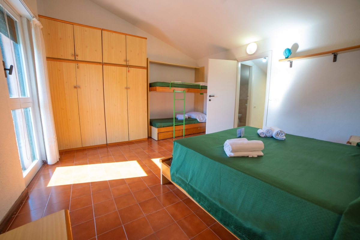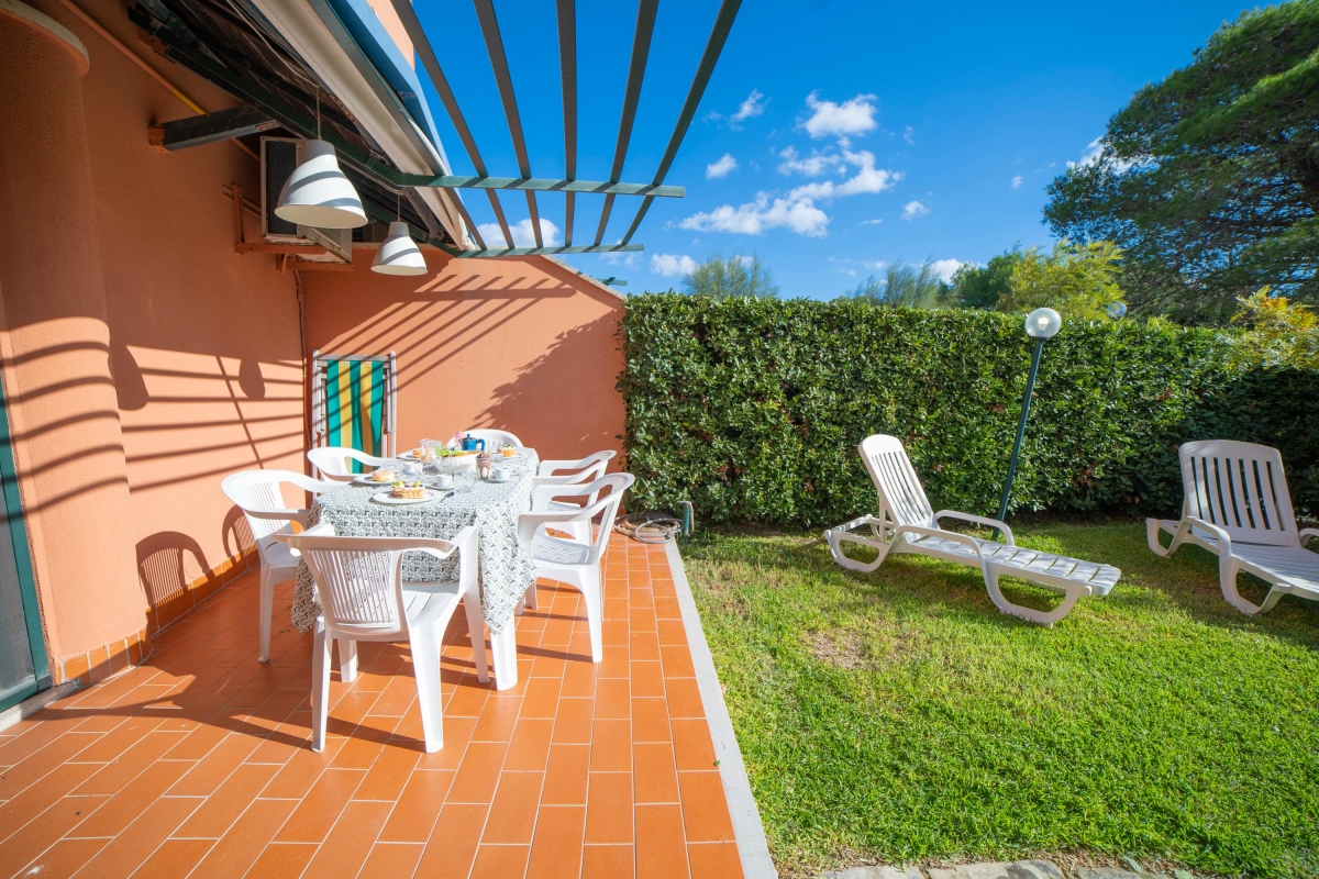 Escape the hustle and bustle of everyday life at this practical villa for 7 with access to a shared, outdoor pool and private beach. Villa 1 Sunset is located in an exclusive beach resort in Alimini, a short walk from Otranto Bay. This is the ideal choice for groups of family or friends looking for a relaxing beach holiday. The villa is arranged over two floors, with doors on the ground floor opening onto a tiled terrace. The shaded veranda is set up for alfresco dining. Inside, guests will find an open plan living space furnished with a dining table, flat screen TV and a kitchen fitted with a Moka coffee maker, a cooker hob, dishwasher and a fridge freezer. A staircase in the corner leads up to two of the bedrooms. The resort includes a wide range of facilities and direct access to a private beach with sunbeds and parasols. There is a shared pool with a lifeguard, and entertainment for all ages. There is also a children’s play area, a supermarket, a newsagent, a restaurant and bar, an ATM, and a full-time reception to help with any queries. The property has a concrete courtyard, which is located closer to the “piazzetta” area of the residence. Sleeping Bedroom 1: The first bedroom is positioned on the ground floor and furnished with a double bed and a wardrobe. A glass door opens directly onto a concrete courtyard. Bedroom 2: The second bedroom is on the first floor and furnished with two single beds, a bunk bed and a large wardrobe. Bedroom 3: The third bedroom is in an alcove on the first-floor landing. There is a single bed and a chest of drawers. Bathrooms There are two bathrooms, one on each floor, both are equipped with a shower, a washbasin, a bidet and a WC. Additional • Beach Front • Beach Access • Shared Outdoor Swimming Pool (open 1st June to 30th September) • Terrace • Concrete courtyard • Outside Dining • Outside Table & Chairs • Free Wi-Fi • Air conditioning • Washing Machine • Pets on request: €100 • Child-friendly • Free public parking • Car Recommended • Smoking Prohibited Extra Costs Children’s cot €20 & highchair €15 on request according to availability Location The apartment is located in a small resort on the Adriatic coast between Torre dell’Orso and Otranto close to some of Salento’s most beautiful beaches. Baia dei Turchi and the Faraglioni di Sant’Andrea bathing rocks are both approximately a 10-minute drive away. Guests also have direct access to the resorts own sandy beach and crystal-clear waters. Away from the coast, the famous Alimini lakes, a haven for bird watchers, are just a 4-minute drive from the resort. Here visitors can hire canoes or enjoy hiking, picnicking and swimming. Another popular excursion is a trip to the peaceful Port of Otranto (a 15-minute drive). Here visitors can enjoy the castle, dine in excellent restaurants and explore the weekly market, (Wednesday mornings) a wonderful source of local ingredients to cook at home. The closest airport is at Brindisi, an hour and 10-minutes drive away.