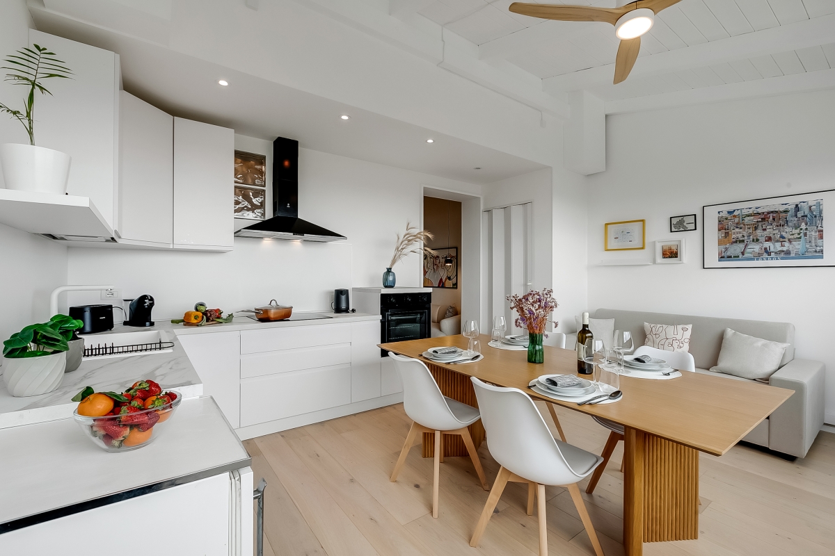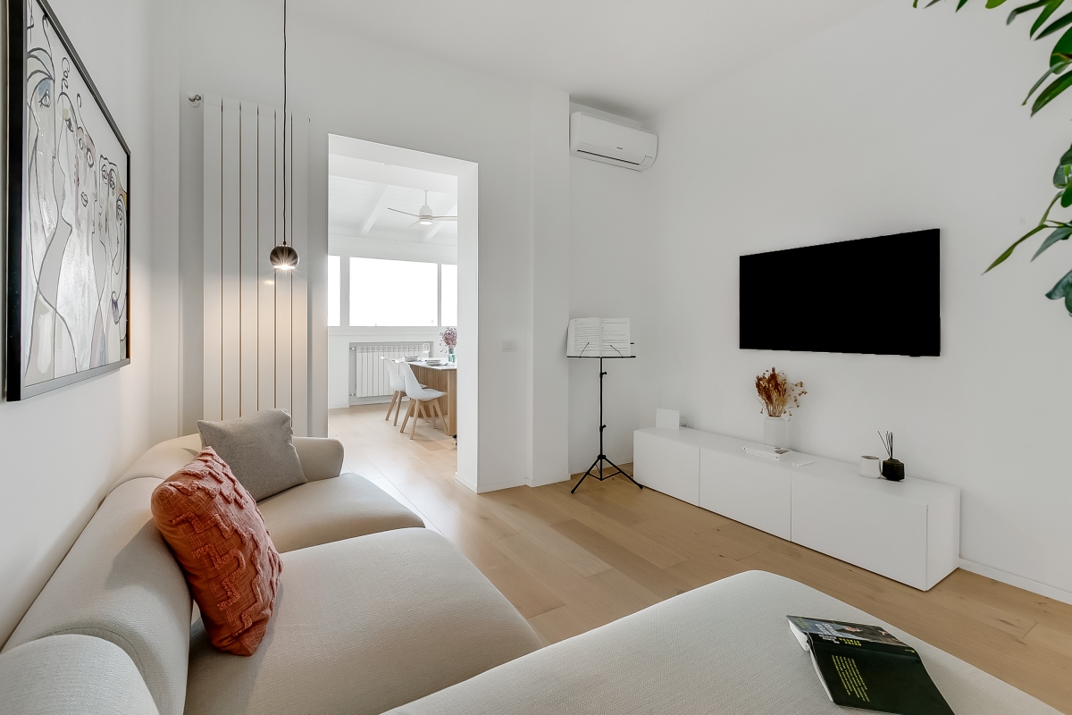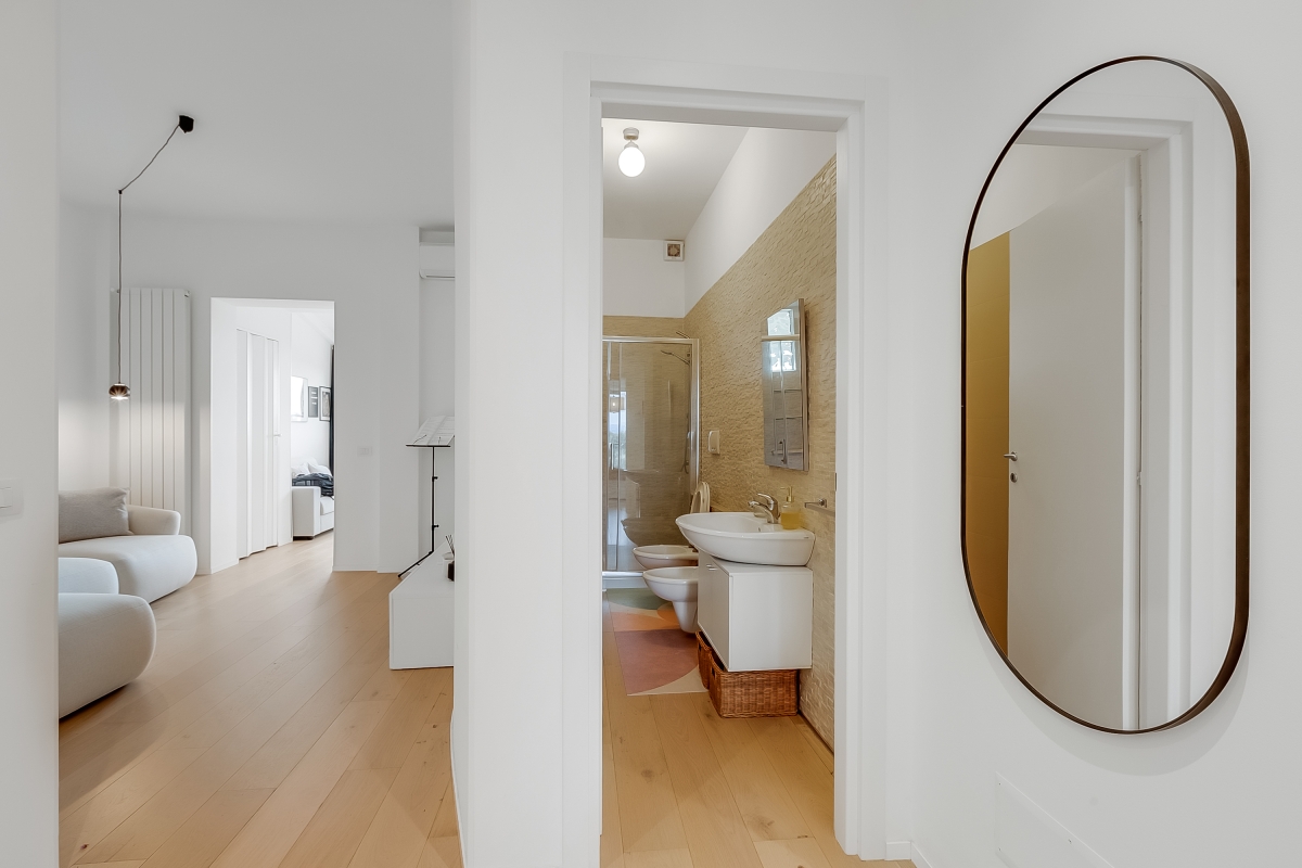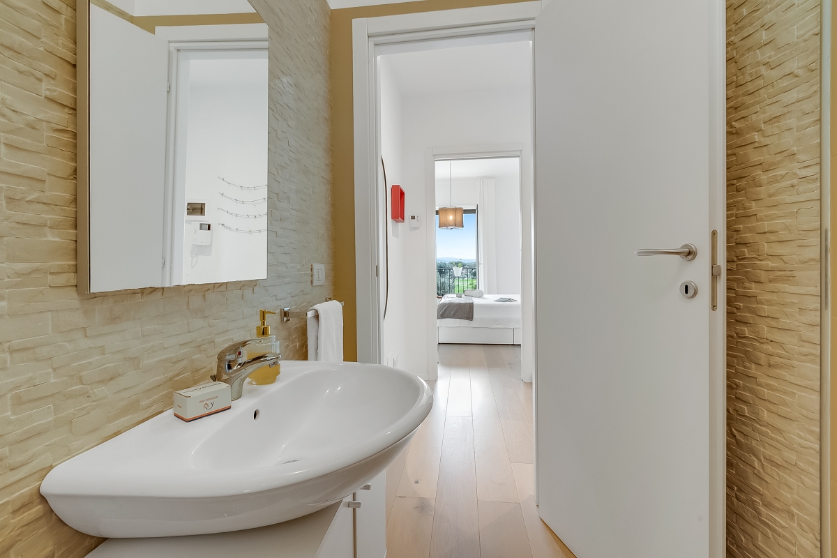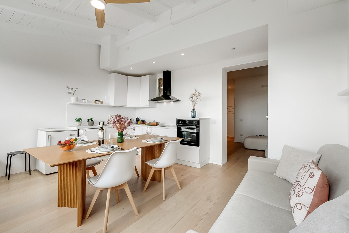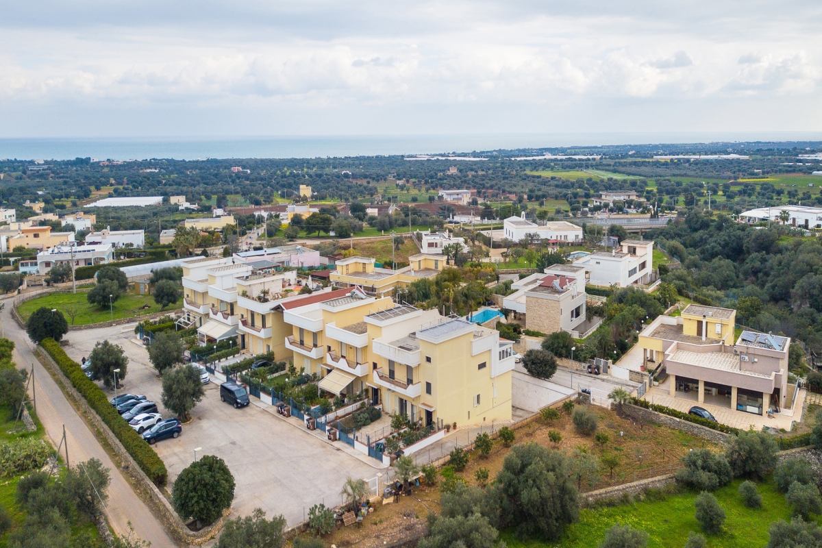 Just 4 minutes from the coast, Sky View Apartment is close to the pretty resort of Capitolo, famous for its long stretches of sand and lidos that, by night, turn into exclusive clubs directly on the beach. This first-floor apartment for 4 is in an elegant, contemporary residence. It is the ideal base for friends or family looking for an exciting beach holiday, combined with excellent food and fascinating history. The owners have taken great care with the stylish decor and comfortable furnishings. The apartment has wooden floors throughout and attractive neutral textiles create a relaxing environment. The rooms open off a central hallway. In the living room, there is a large designer sofa and a Smart TV. Down the hallway is the spacious, airy kitchen. This room is furnished with a sofa, an elegant oak dining table and a newly fitted kitchen. The kitchen is well-equipped with an induction hob, oven, dishwasher, Nespresso coffee machine and fridge. Going up to the second floor guests have access to the large terrace with a panoramic sea view. The roof terrace has sun loungers and comfortable seating where, on summer evenings, guests can watch a film with a video projection. There is also an outdoor dining area on the terrace for memorable meals al fresco. Sleeping Bedroom: This light-filled bedroom has a double bed, wardrobe, a laptop-friendly workspace and a private balcony, which is ideal for morning coffee. Extra: The sofa in the dining area converts into a comfortable double bed. Bathroom The bathroom is opposite the bedroom and the living room. It is appointed with a large shower, basin, bidet and a WC. Additional • Free Wifi • Roof terrace • Balcony • Outside seating and dining • Air conditioning • Ceiling fans • Electric radiators • Very child-friendly • Smoke detector & fire extinguisher • Smart TV • Hair dryer • Book library • Washing machine • Private parking, car recommended • Check-in from 4.00pm, check out before 10.00am • Security deposit of €400/week to be paid for groups under 21. Location The apartment is 10 minutes from the centre of Monopoli, one of Italy’s hidden gems. Known for its lively bars and nightlife, the town’s cathedral and the Castello di Carlo are also worth visiting. For self-catering Monopoli’s vibrant, weekly market (Tuesday and Saturday mornings from 7.30am) is the best place to pick up delicious local produce to cook at home. Alberobello, (25 minutes) is a UNESCO World Heritage Site, as well as one of the centres of Italy’s Slow Food Movement. The town is a must-see. It is famous for its traditional Trulli houses and excellent restaurants. All along this stretch of coast, visitors will find some of Italy’s most beautiful beaches. North of Monopoli is Polignano a Mare (15 minutes) which offers excellent snorkelling in its clear waters. For history lovers, the archaeological museum at Egnazi (9 minutes) offers a fascinating glimpse into Puglia’s complicated past. The closest airport is at Bari, a 50-minute drive from the apartment.