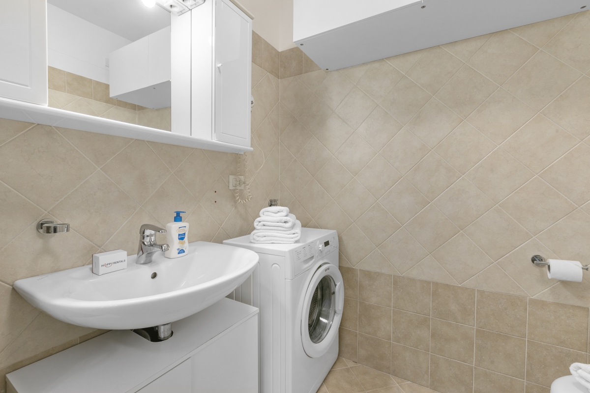 Komfortowy apartament nad Jeziorem Garda Apartament położony jest w dogodnej lokalizacji, zaledwie kilka kroków od malowniczego jeziora Garda. Obiekt oferuje dostęp do basenu, co czyni go idealnym miejscem zarówno na relaks, jak i aktywny wypoczynek. Mieszkanie zostało w pełni przygotowane do zamieszkania i wyposażone we wszystkie niezbędne rzeczy – na gości czeka świeża pościel, ręczniki oraz w pełni wyposażona kuchnia, umożliwiająca samodzielne przygotowywanie posiłków. W apartamencie znajdują się dwie wygodne sypialnie, przestronny salon, a także pralka, co zwiększa komfort pobytu, zwłaszcza przy dłuższych wakacjach. W pobliżu mieści się sklep, co ułatwia codzienne zakupy. Odbiór kluczy odbywa się w pobliskiej agencji znajdującej się nad sklepem COOP, co jest bardzo wygodnym rozwiązaniem dla gości przyjeżdżających na miejsce. Wszystkie pomieszczenia są zadbane, czyste i urządzone z dbałością o detale, co zapewnia przyjemną atmosferę i poczucie komfortu.