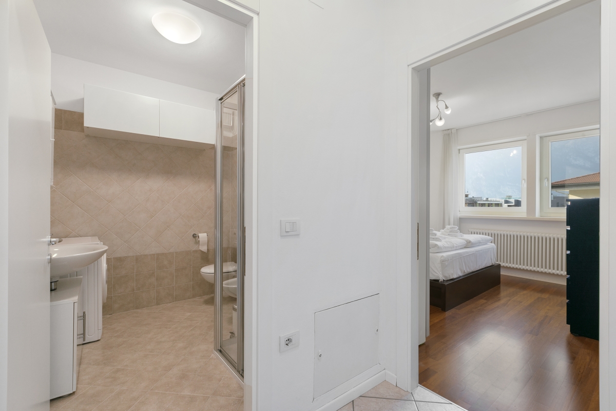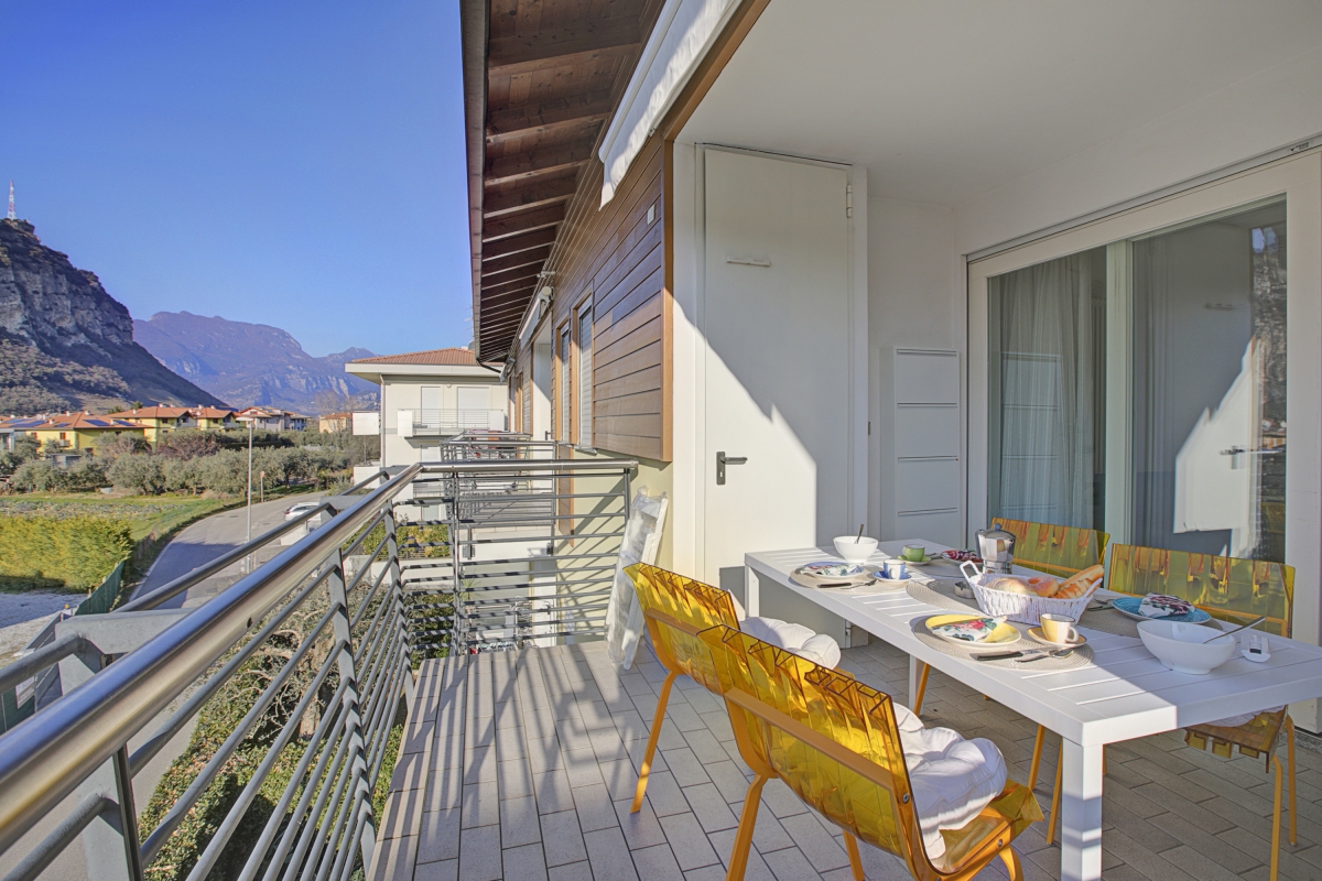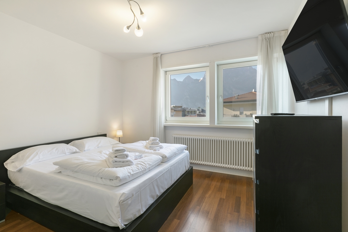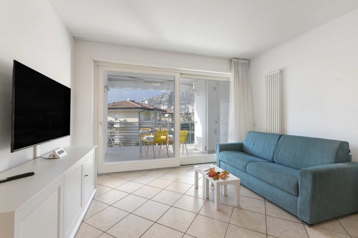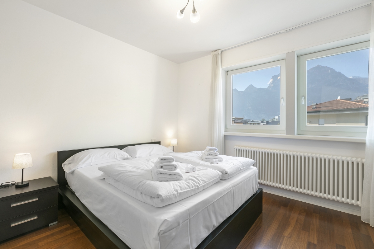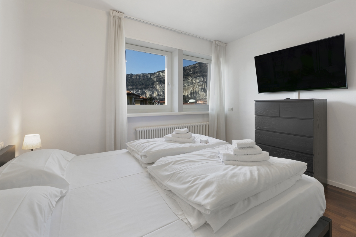 Soak in Lake Garda's beauty from this 2-bedroom apartment with a shared pool and mountain views in Torbole sul Garda. Situated on the second floor of a modern three-story building, the apartment features a bright open living area with a sofa, TV and direct access to a lovely terrace with mountain views. The fully equipped kitchen includes a coffee machine, dishwasher, electric kettle, microwave, oven, toaster, fridge, and an induction hob. Modern amenities include free Wi-Fi and a games library for your entertainment. Step onto the sunny balcony with an outside dining area, perfect for enjoying al fresco meals with beautiful views. Guests can also enjoy access to a shared garden and an outdoor pool, providing a tranquil setting for leisure activities. Sleeping Bedroom 1: This bedroom features a double bed and wardrobe. Bedroom 2: The second bedroom features a bunk bed and wardrobe. Extra: The living room has a double sofa bed. Bathroom The bathroom is equipped with a bidet, shower, and WC, ensuring convenience for all guests. Additional • Mountain View • Balcony • Shared Pool • Outside Dining Area • Shared Garden • Wifi Free • Garage • Central Heating • Child Friendly • Suitable for Elderly • In Town • Lift-Elevator • Modern • Satellite TV • Washing Machine • Hair Dryer • Books Library • Pets Allowed on request. Location Nestled in the picturesque town of Nago-Torbole, this apartment offers a prime location for exploring the best of Lake Garda. A short 10-minute walk leads to the serene shores of the lake, perfect for swimming and sunbathing. Outdoor enthusiasts can embark on the Sentiero panoramico Busatte Tempesta trail, renowned for its breathtaking vistas, just a 10-minute drive away. History buffs will appreciate the nearby Castel Penede, a medieval castle offering panoramic views, reachable within 10 minutes. For dining, the acclaimed Villa Emma restaurant is a mere 2-minute stroll away, serving delectable local cuisine. Public transport is conveniently accessible, with bus stops located within a 5-minute walk, connecting you to neighbouring towns and attractions. The nearest airport, Valerio Catullo Airport, is an hour's drive from this apartment.